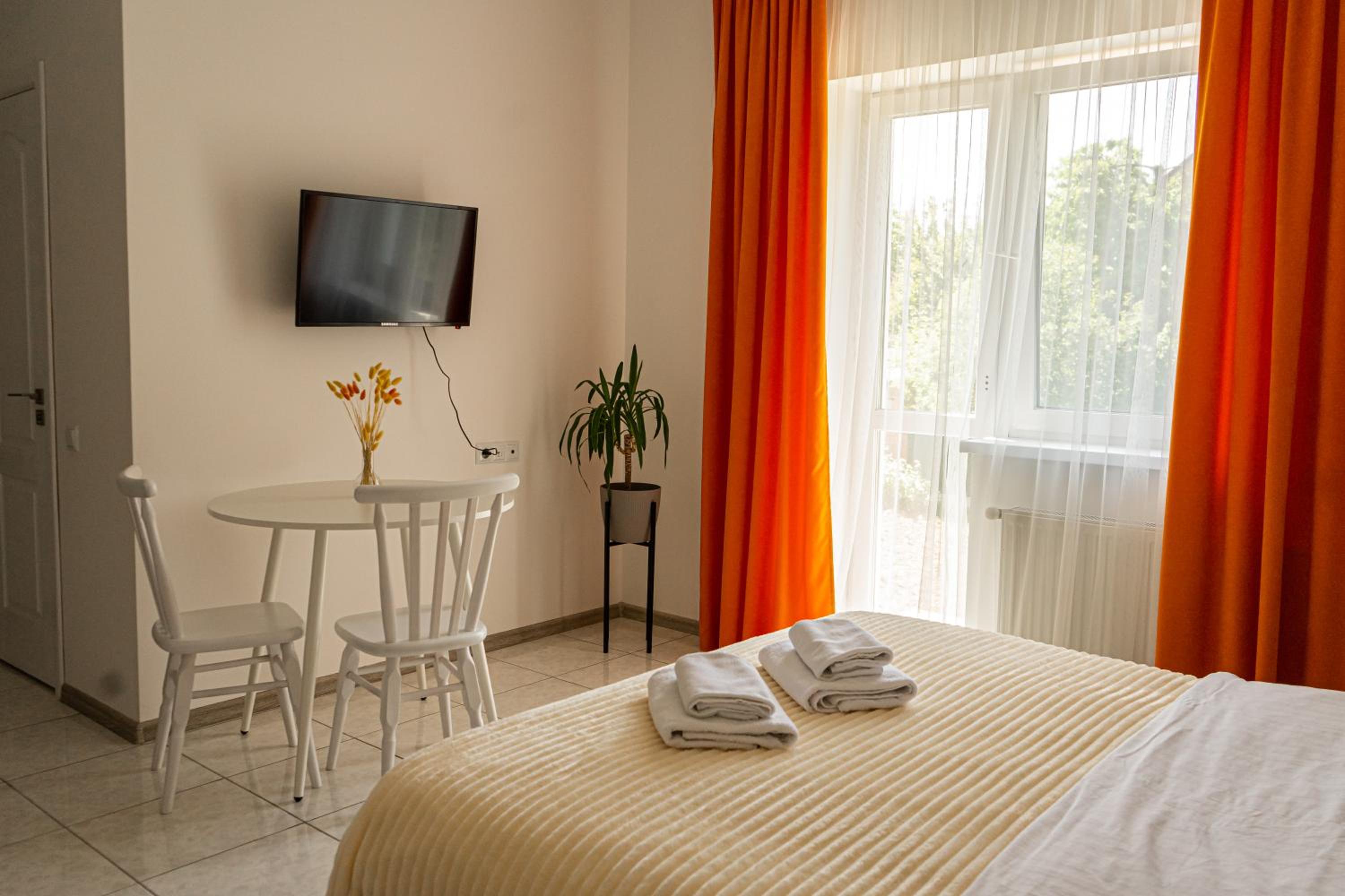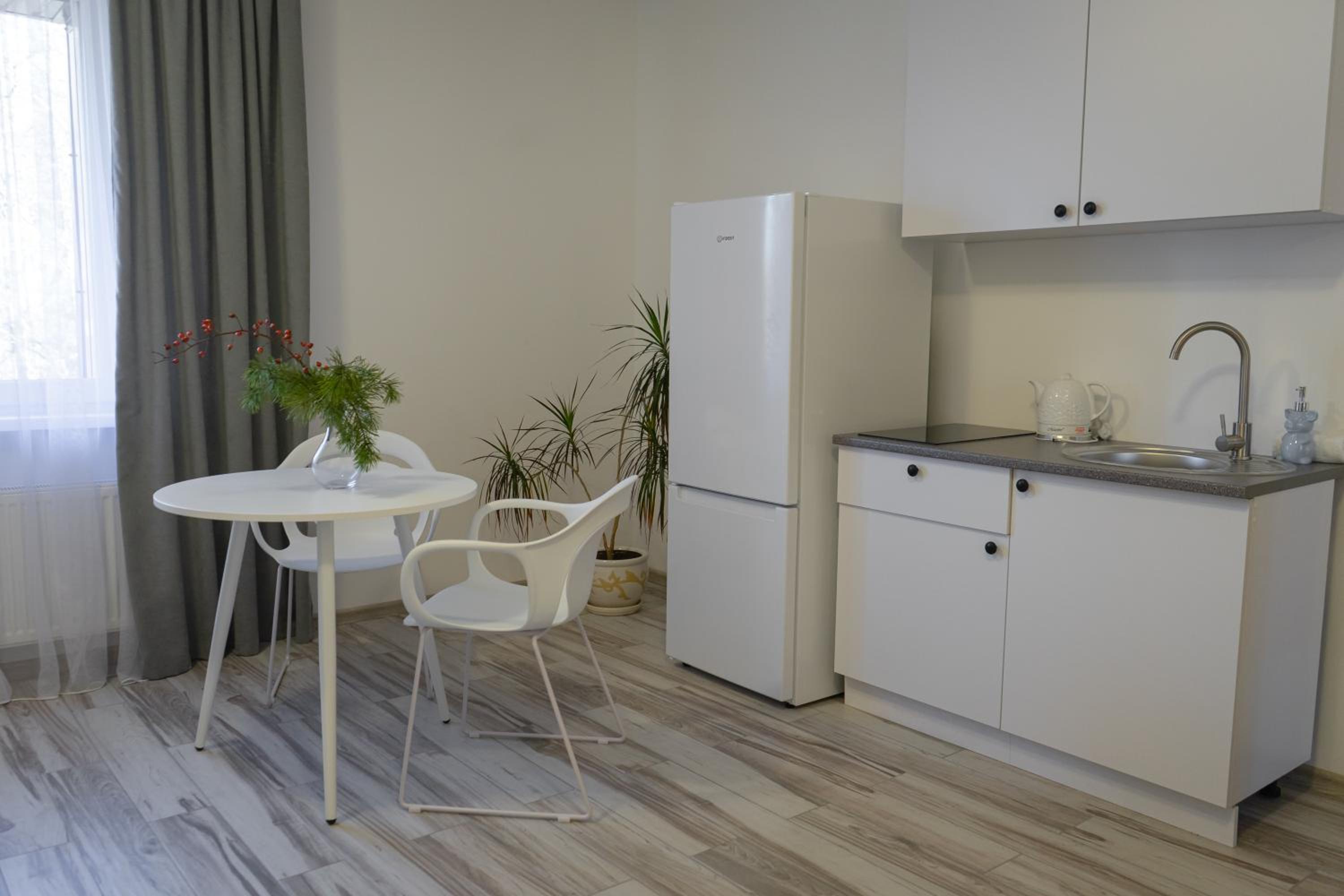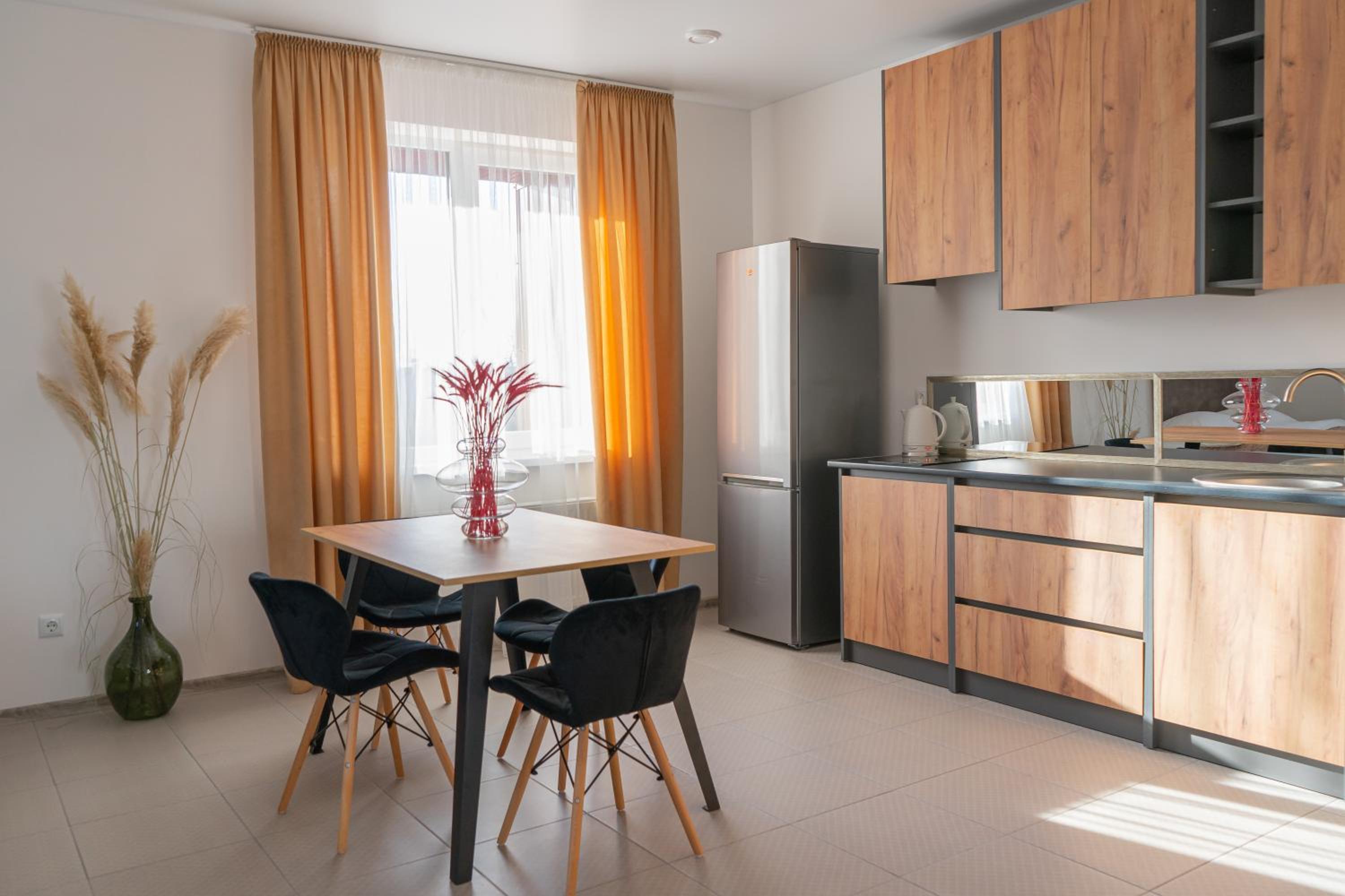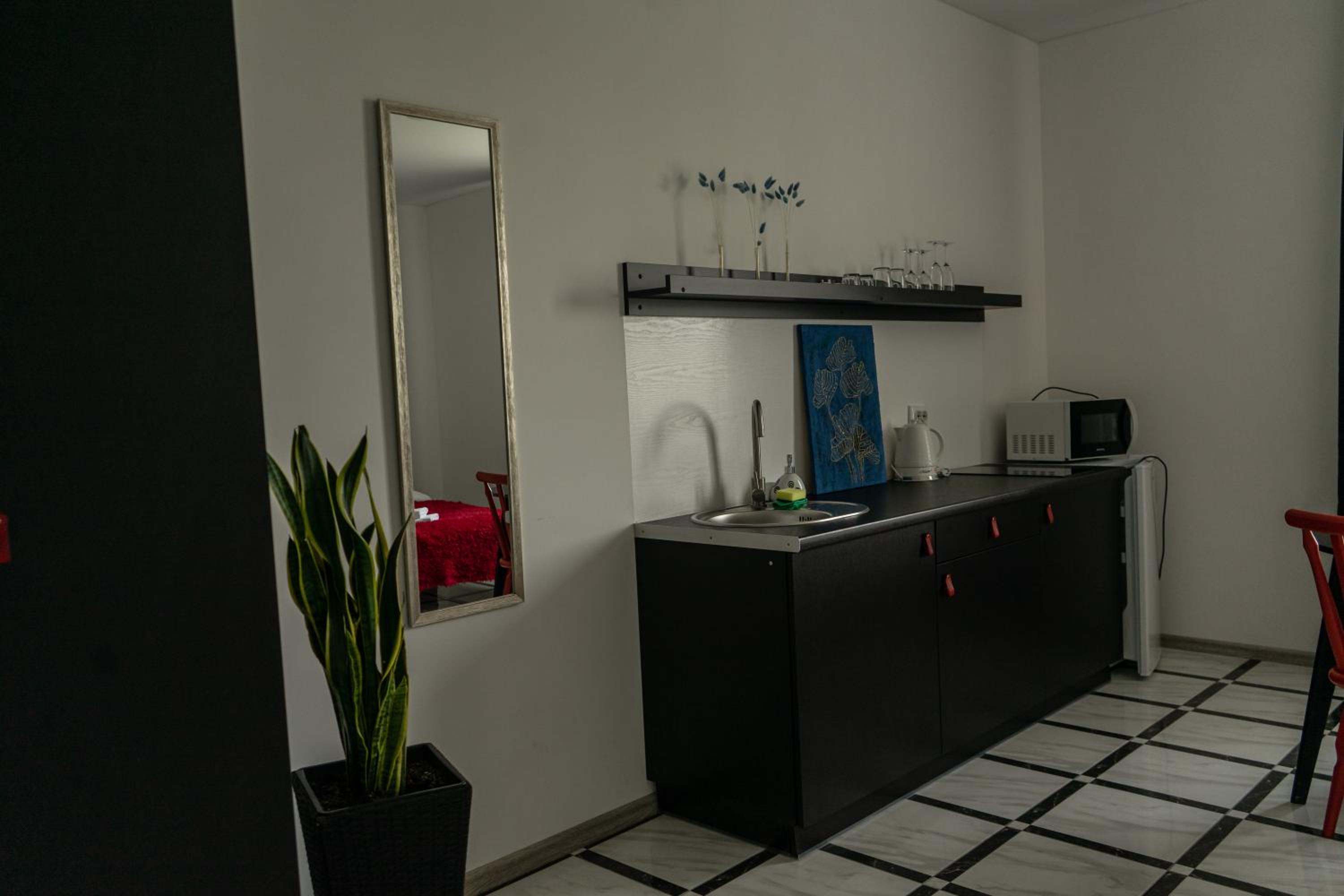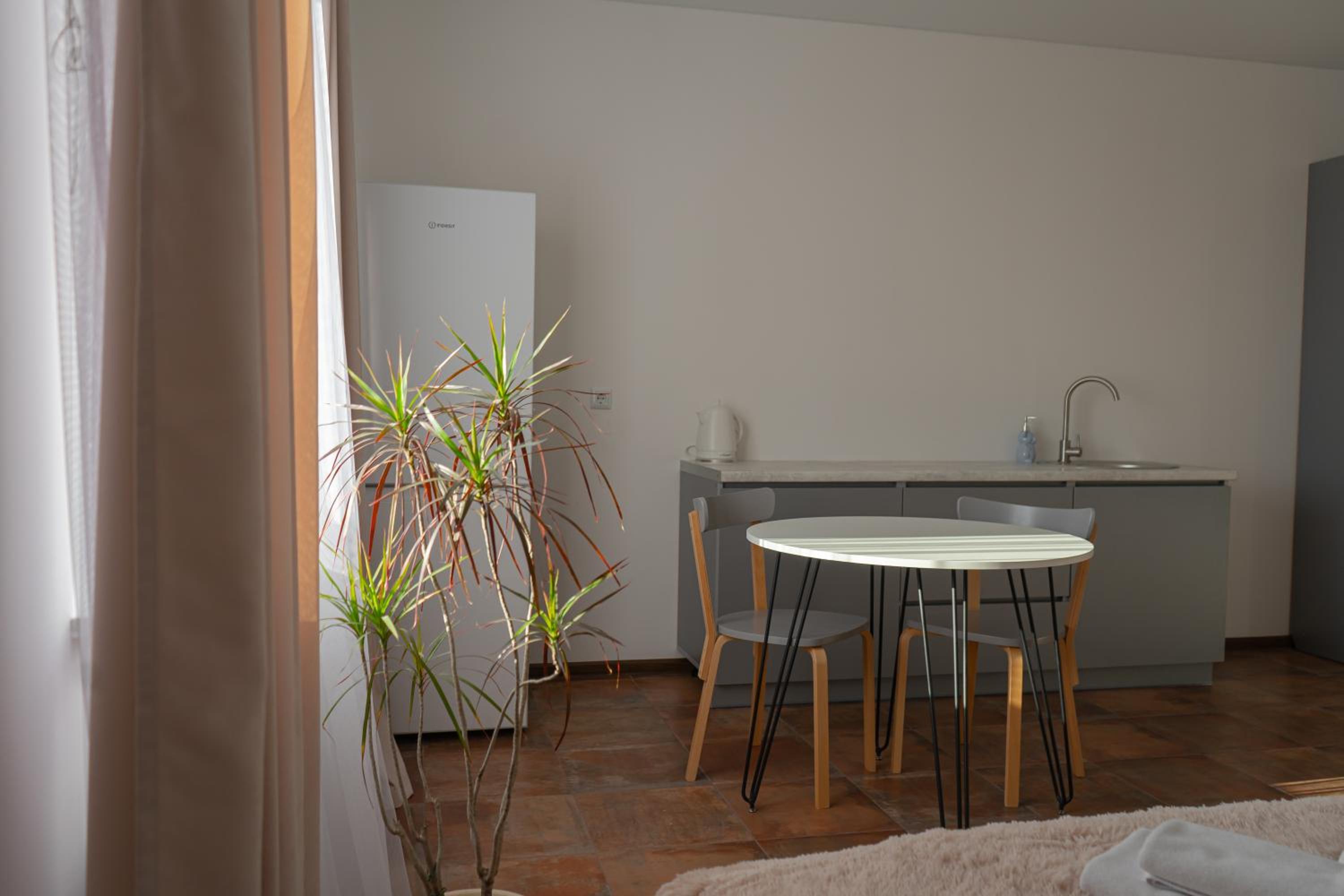 Їхали з запізненням відносно запланованого часу. Важливо було переночувати в номері, який розрахований на 4 осіб не за всі гроші світу, оскільки по дорозі більшість отелів пропонували 2 окремих номери. Саме ці апартаменти знаходилися по дорозі, що дуже зручно, запропонували необхідне нам розміщення, чистий номер, сучасний ремонт, в номері є все необхідне для самостійного приготування їжі (посуд, мікрохвильовка, індукційна піч, чайник). Привітні адміністартори. Є можливість купити готову їжу.