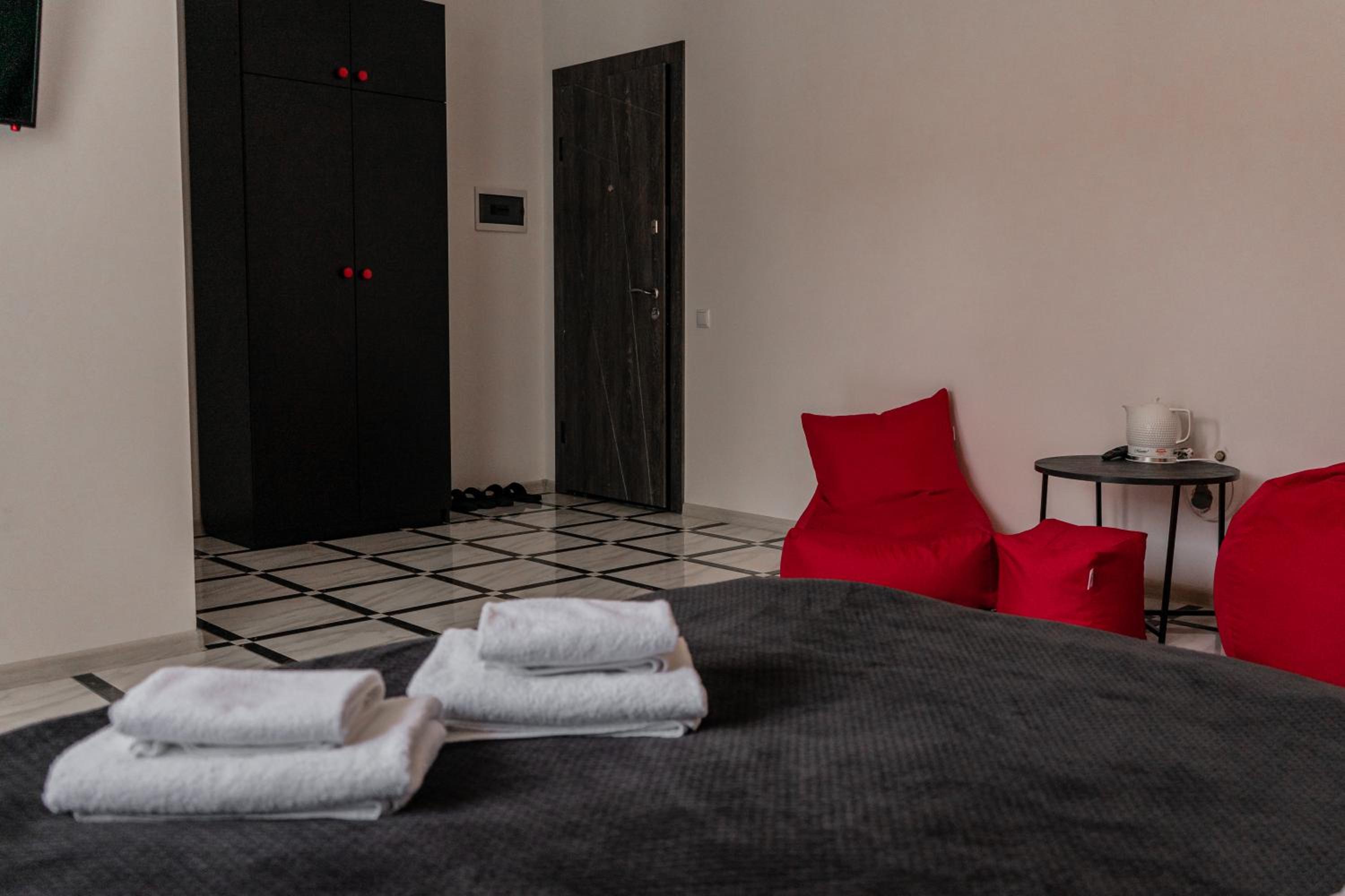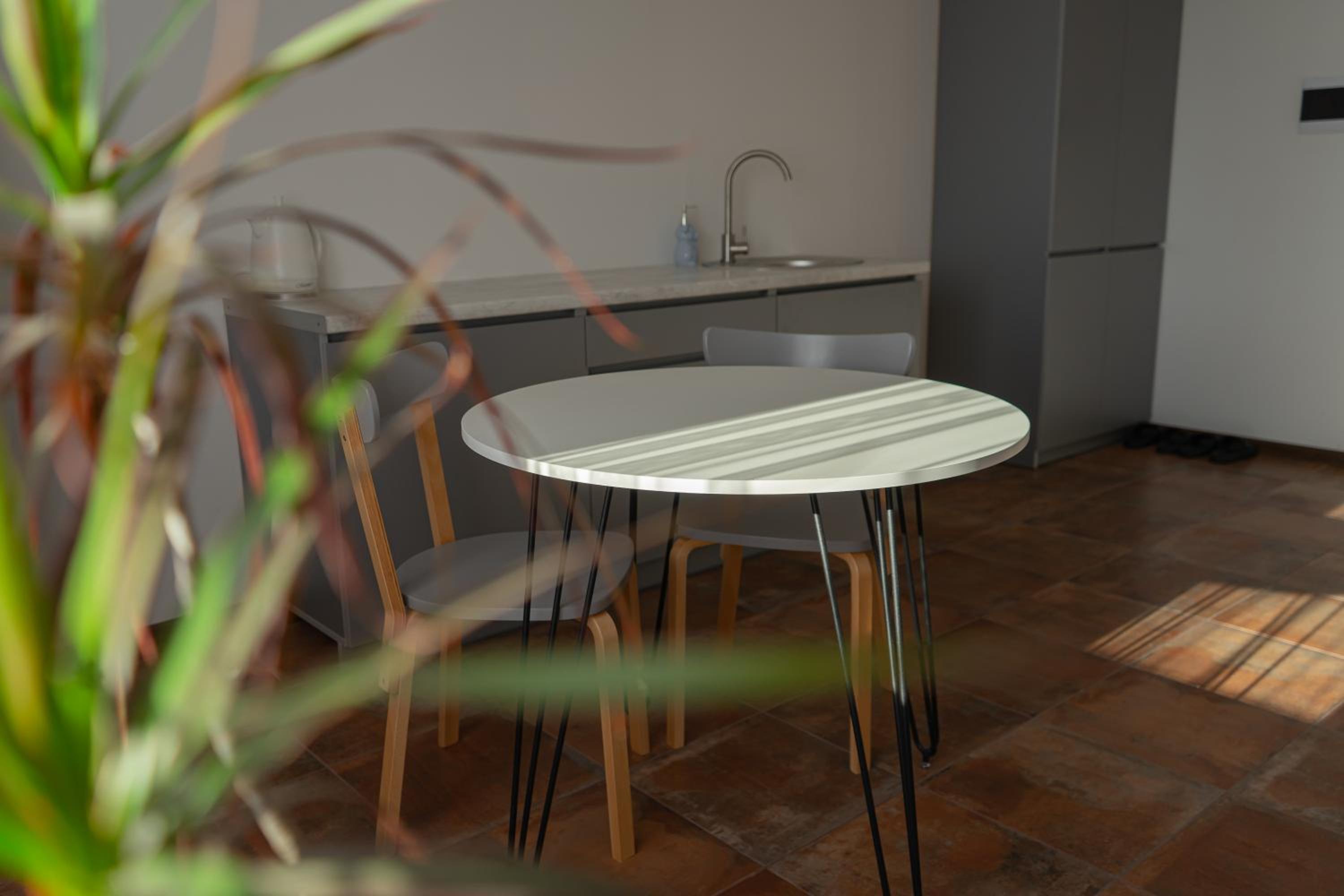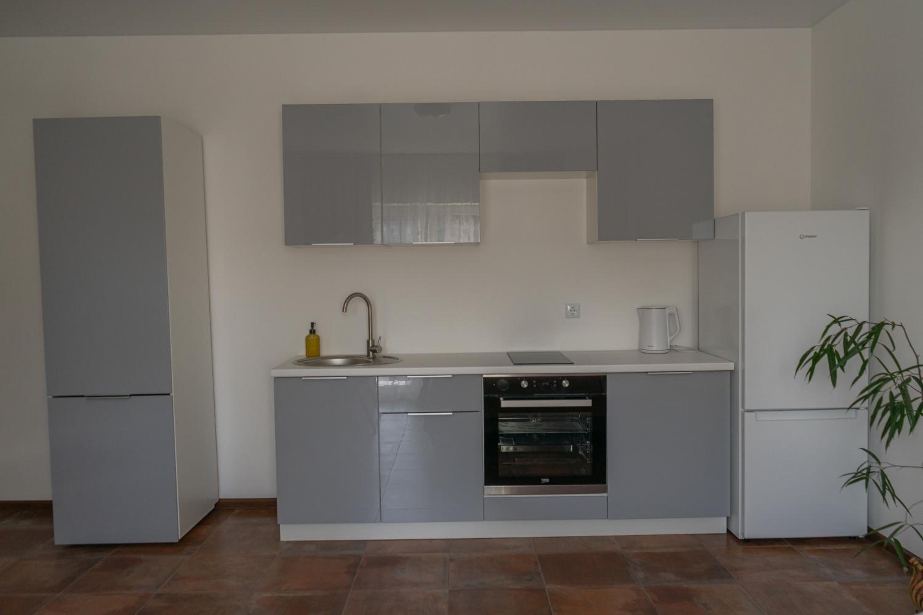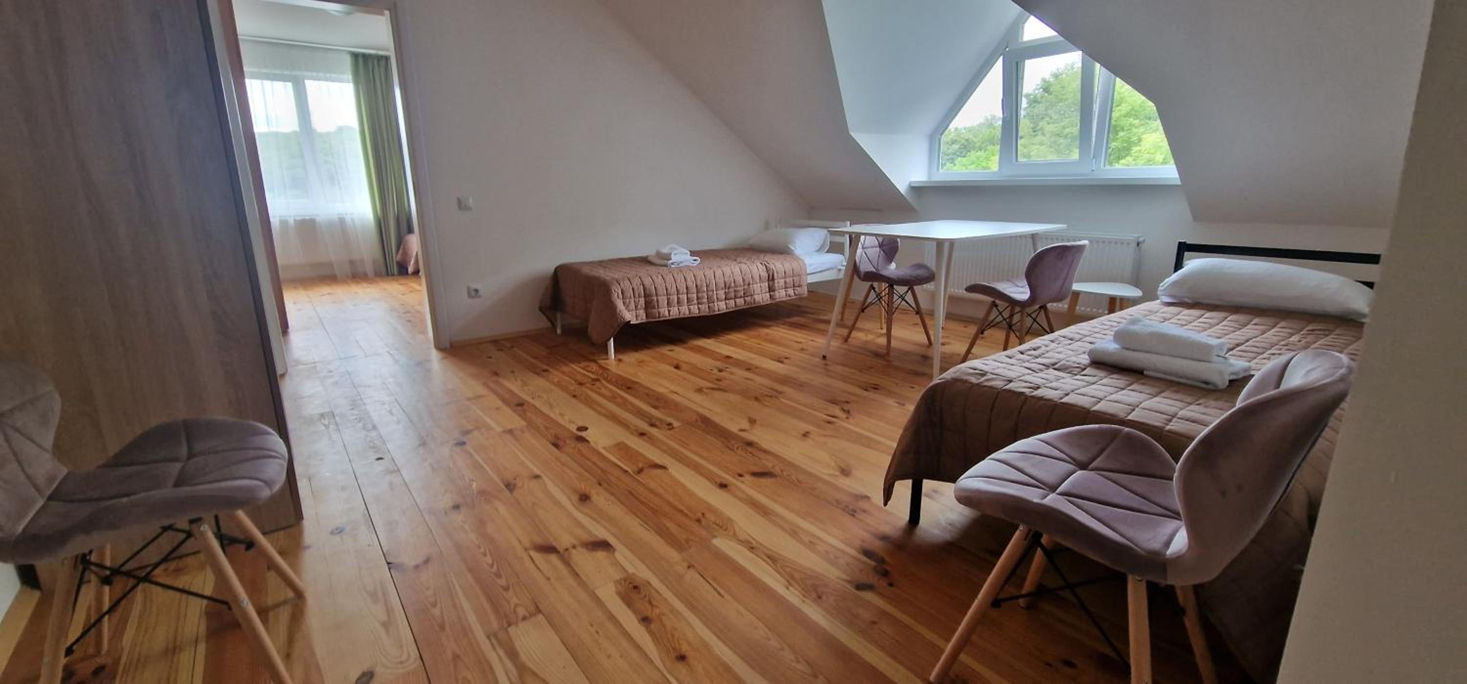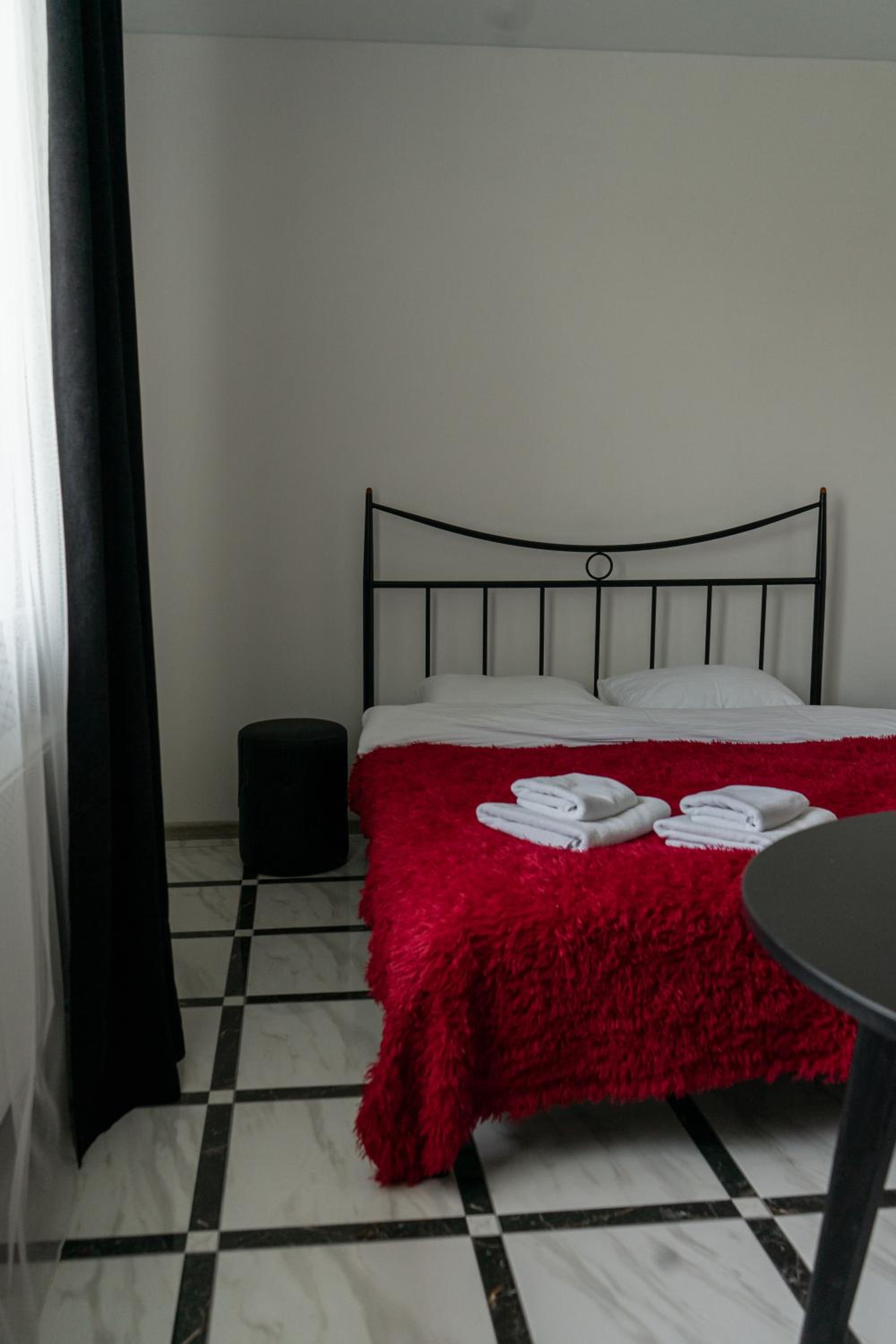 Їхали з запізненням відносно запланованого часу. Важливо було переночувати в номері, який розрахований на 4 осіб не за всі гроші світу, оскільки по дорозі більшість отелів пропонували 2 окремих номери. Саме ці апартаменти знаходилися по дорозі, що дуже зручно, запропонували необхідне нам розміщення, чистий номер, сучасний ремонт, в номері є все необхідне для самостійного приготування їжі (посуд, мікрохвильовка, індукційна піч, чайник). Привітні адміністартори. Є можливість купити готову їжу.