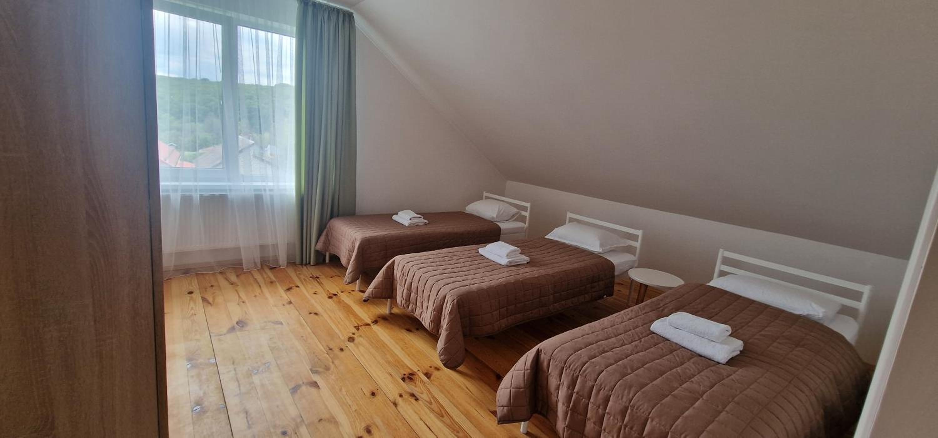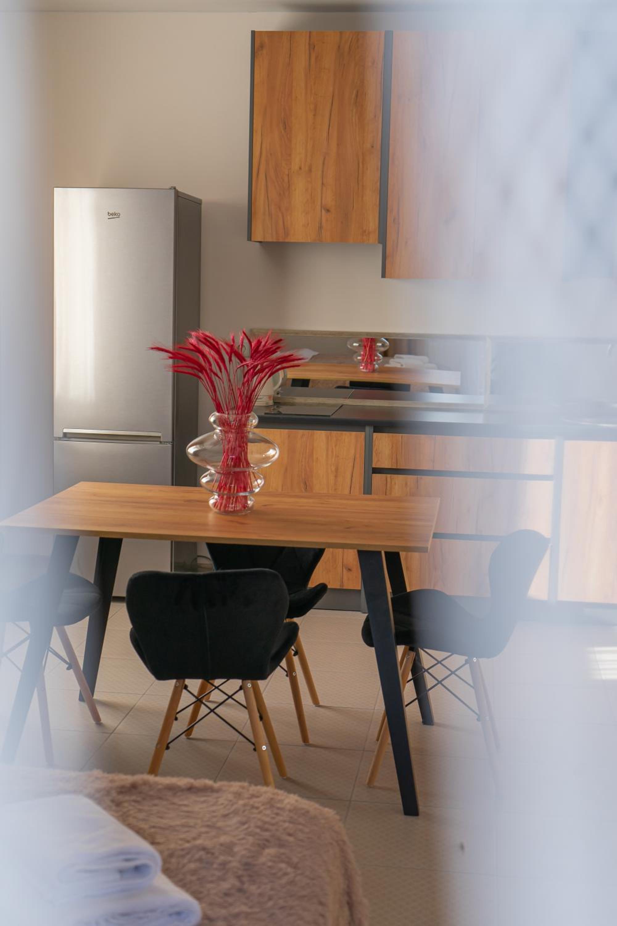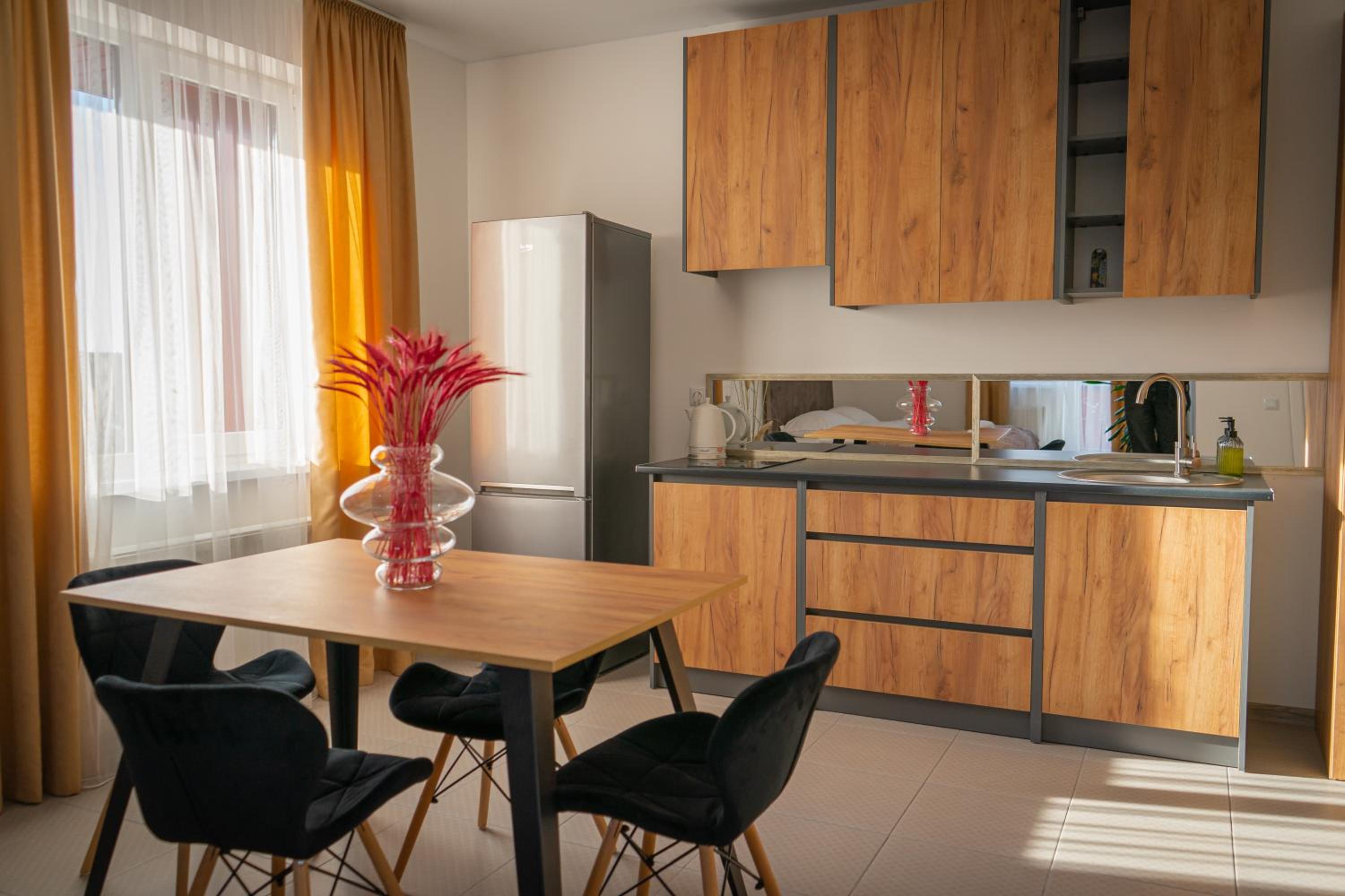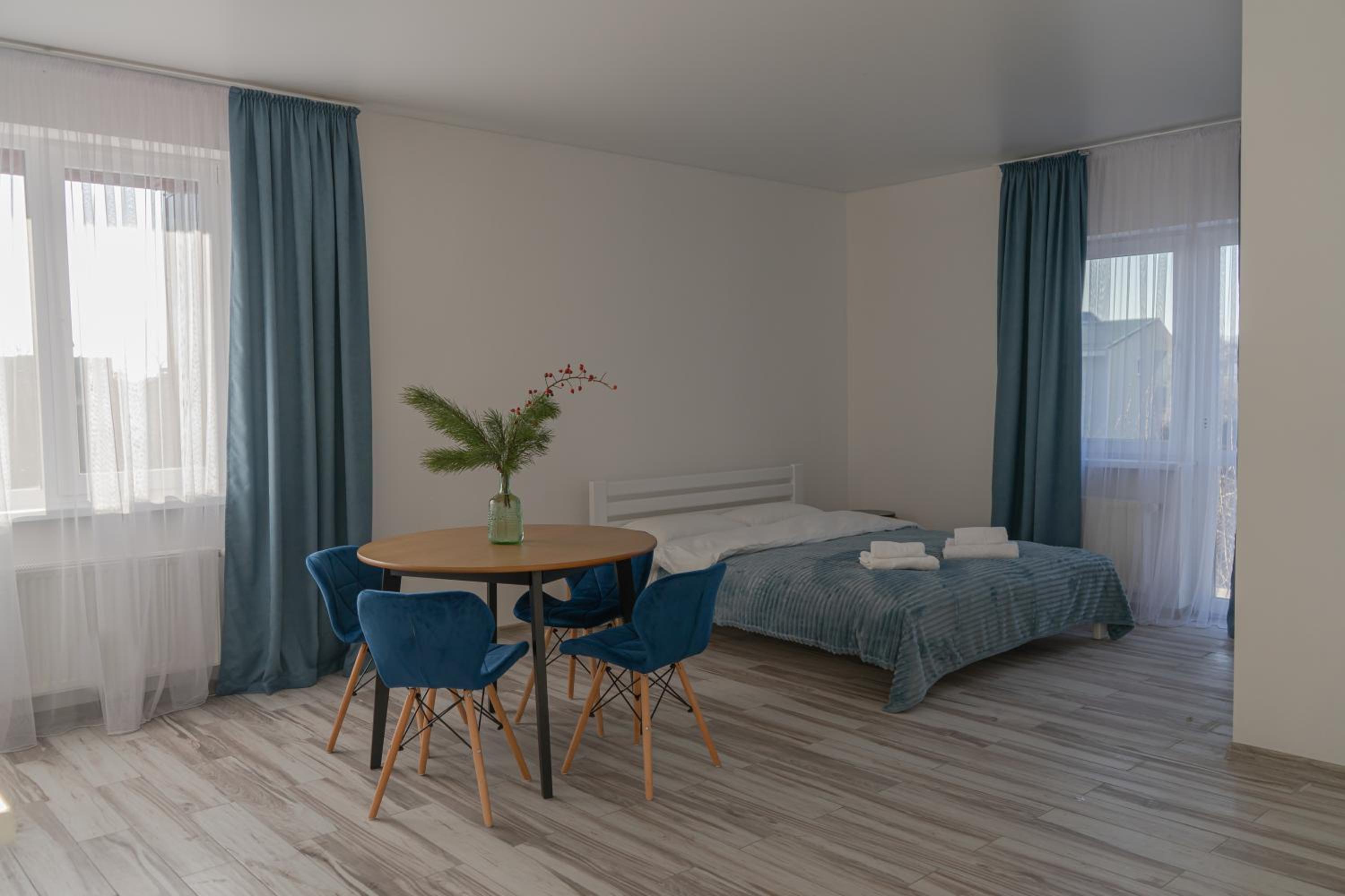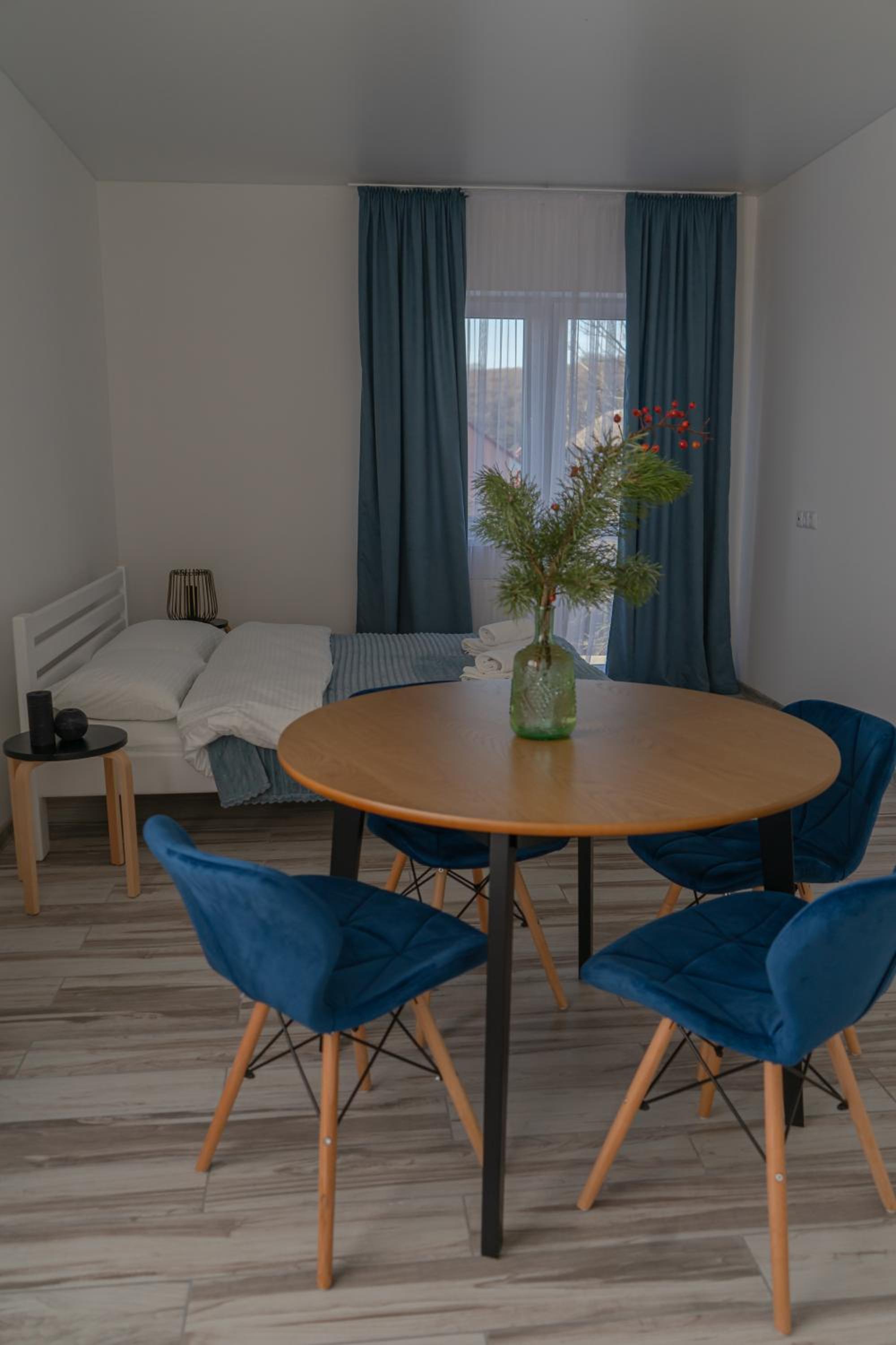 Їхали з запізненням відносно запланованого часу. Важливо було переночувати в номері, який розрахований на 4 осіб не за всі гроші світу, оскільки по дорозі більшість отелів пропонували 2 окремих номери. Саме ці апартаменти знаходилися по дорозі, що дуже зручно, запропонували необхідне нам розміщення, чистий номер, сучасний ремонт, в номері є все необхідне для самостійного приготування їжі (посуд, мікрохвильовка, індукційна піч, чайник). Привітні адміністартори. Є можливість купити готову їжу.