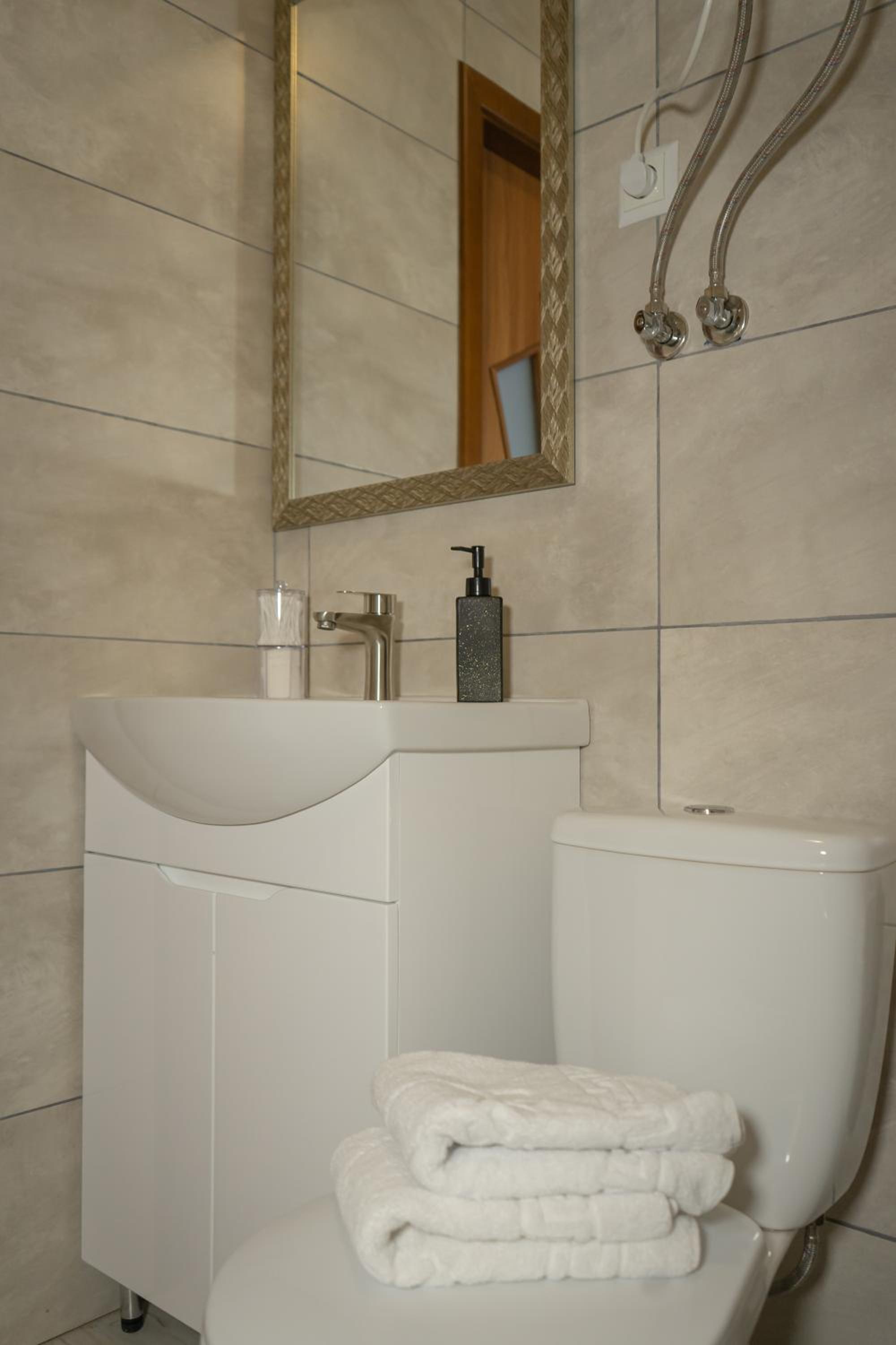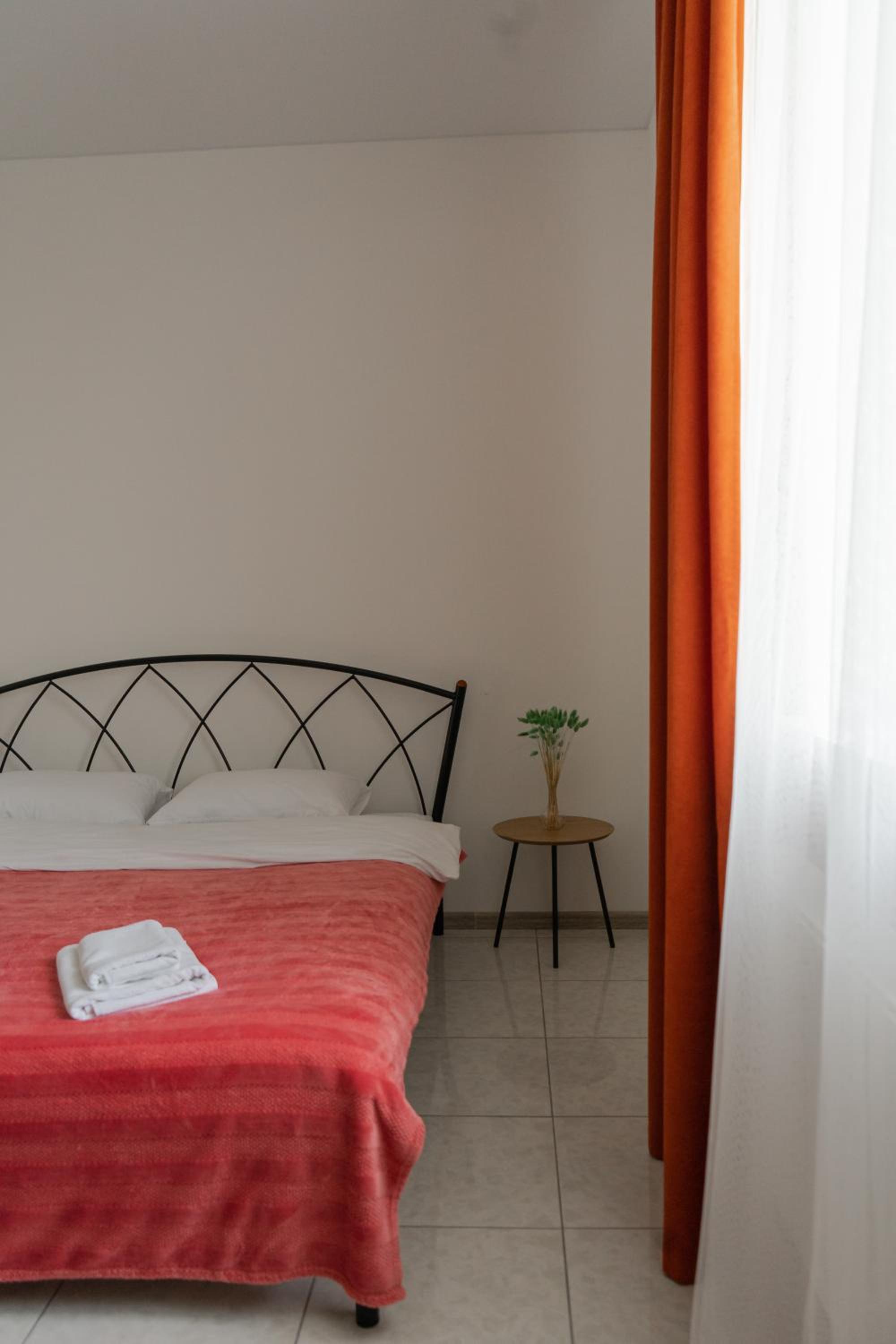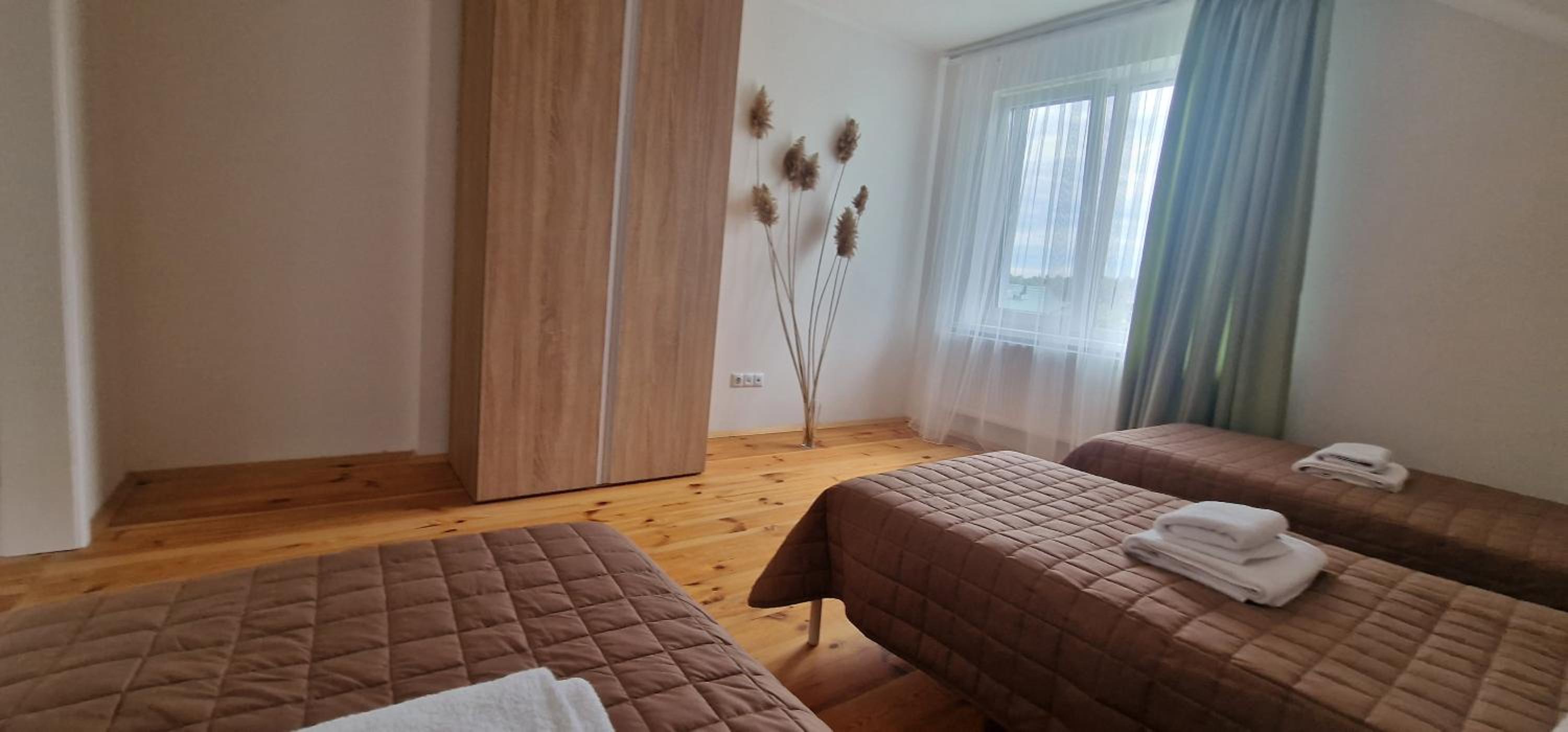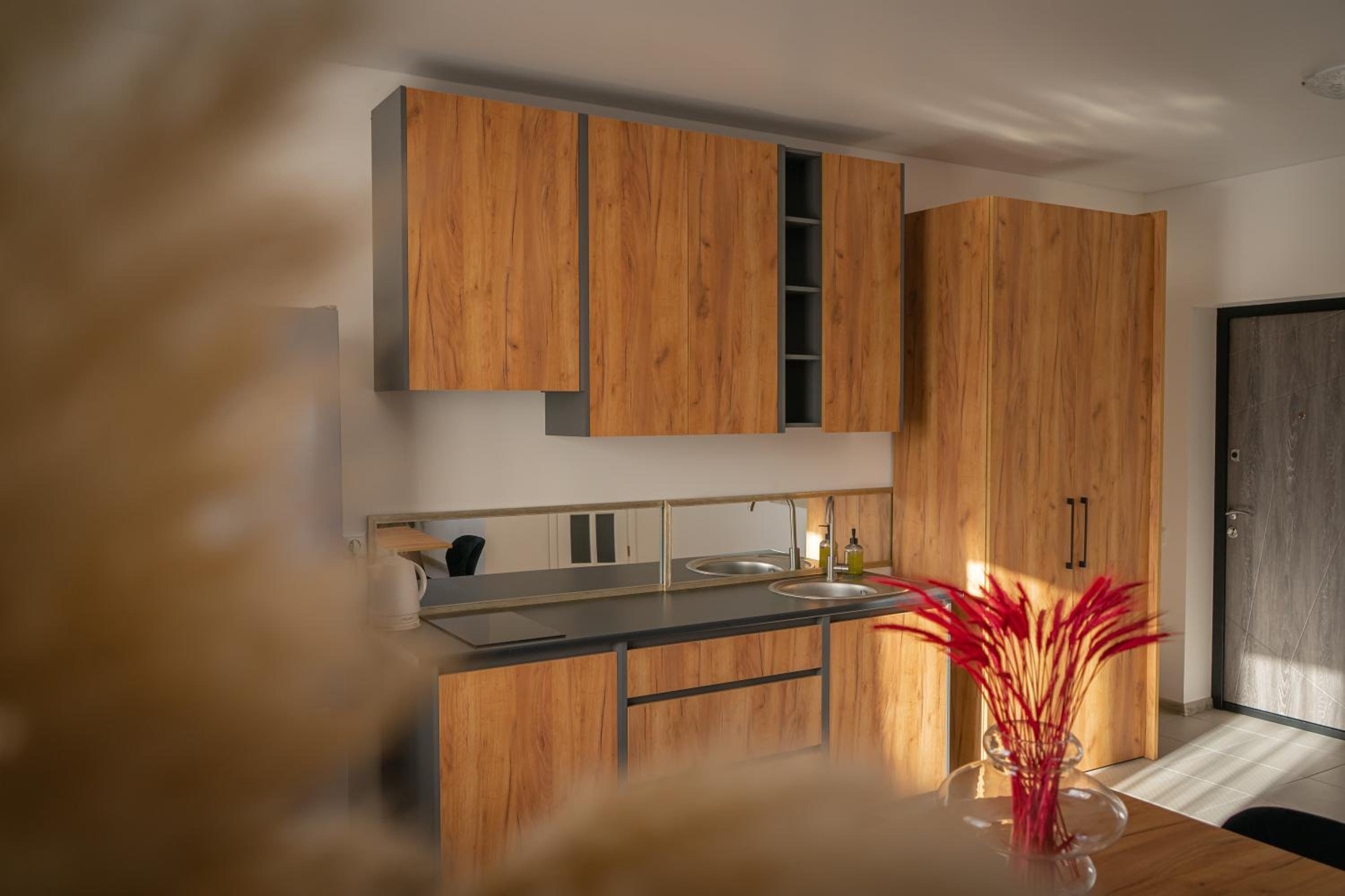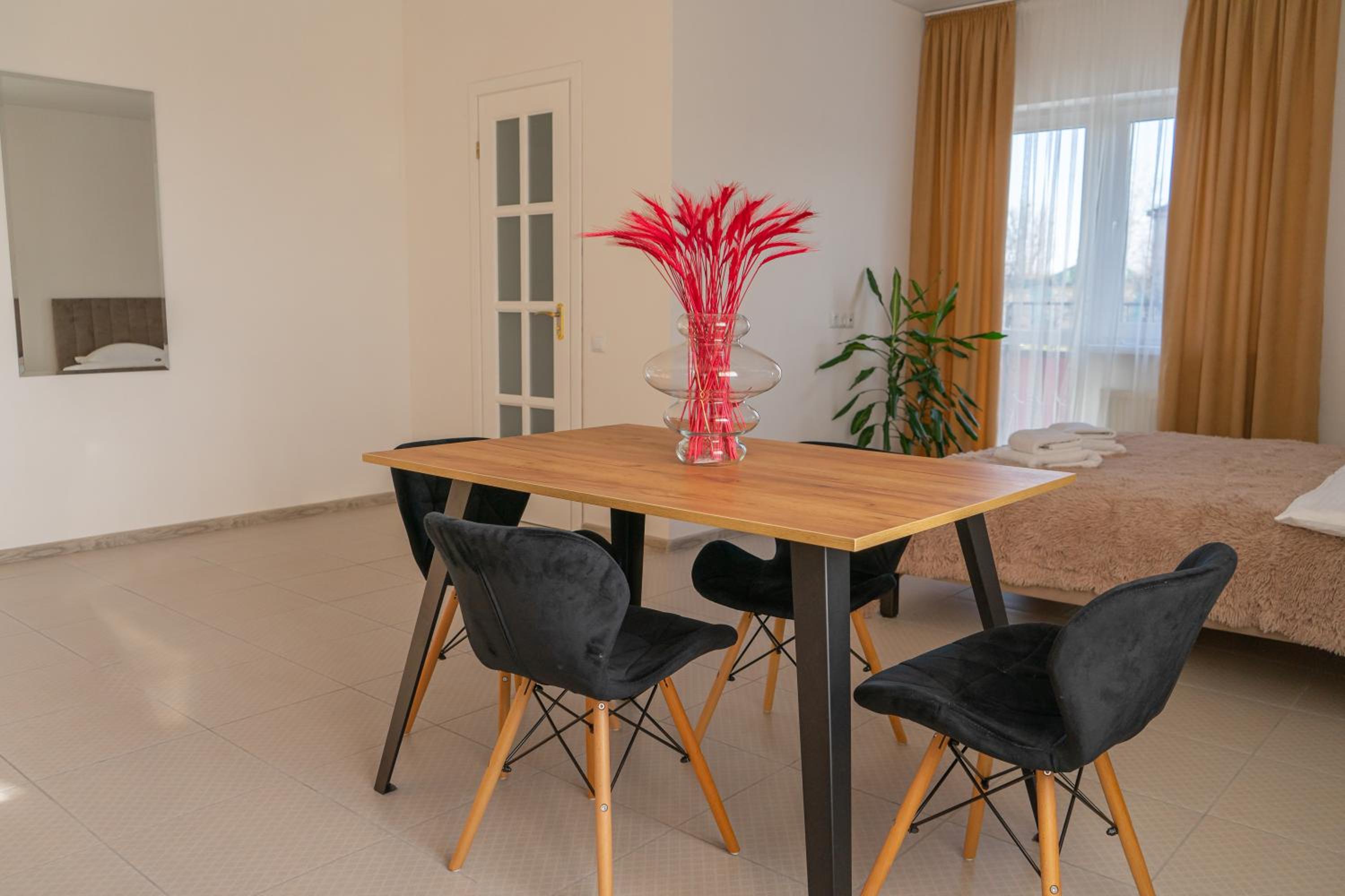 Їхали з запізненням відносно запланованого часу. Важливо було переночувати в номері, який розрахований на 4 осіб не за всі гроші світу, оскільки по дорозі більшість отелів пропонували 2 окремих номери. Саме ці апартаменти знаходилися по дорозі, що дуже зручно, запропонували необхідне нам розміщення, чистий номер, сучасний ремонт, в номері є все необхідне для самостійного приготування їжі (посуд, мікрохвильовка, індукційна піч, чайник). Привітні адміністартори. Є можливість купити готову їжу.