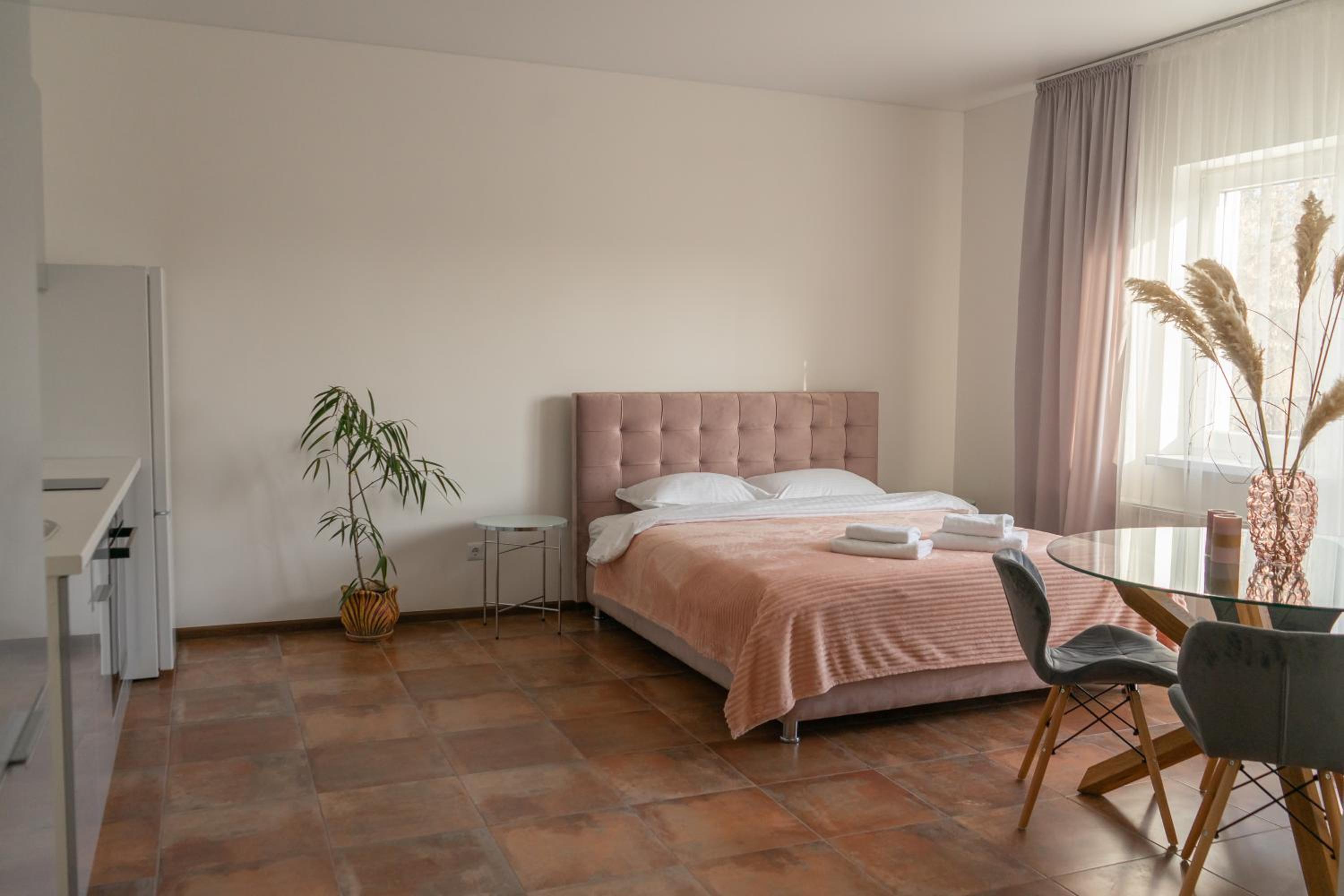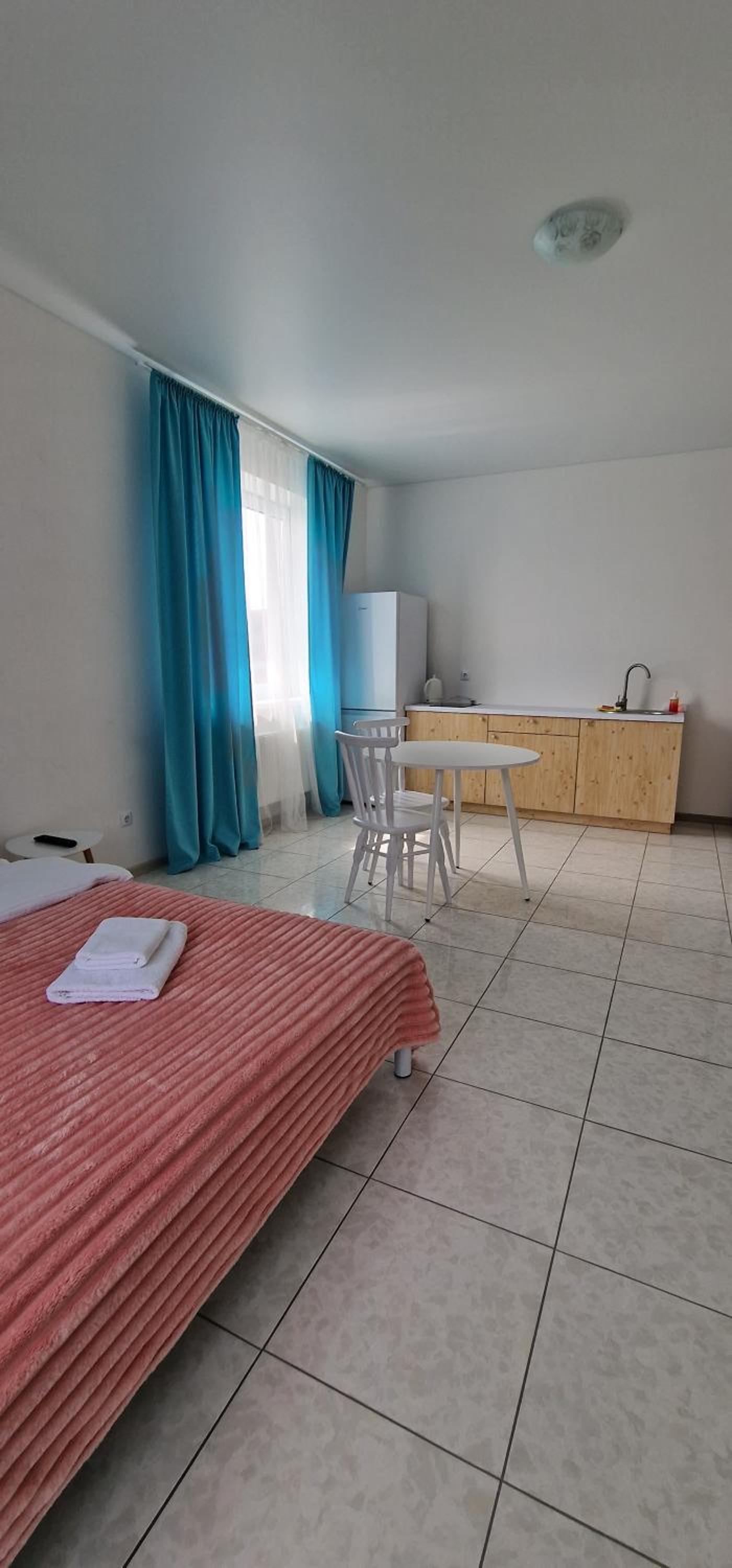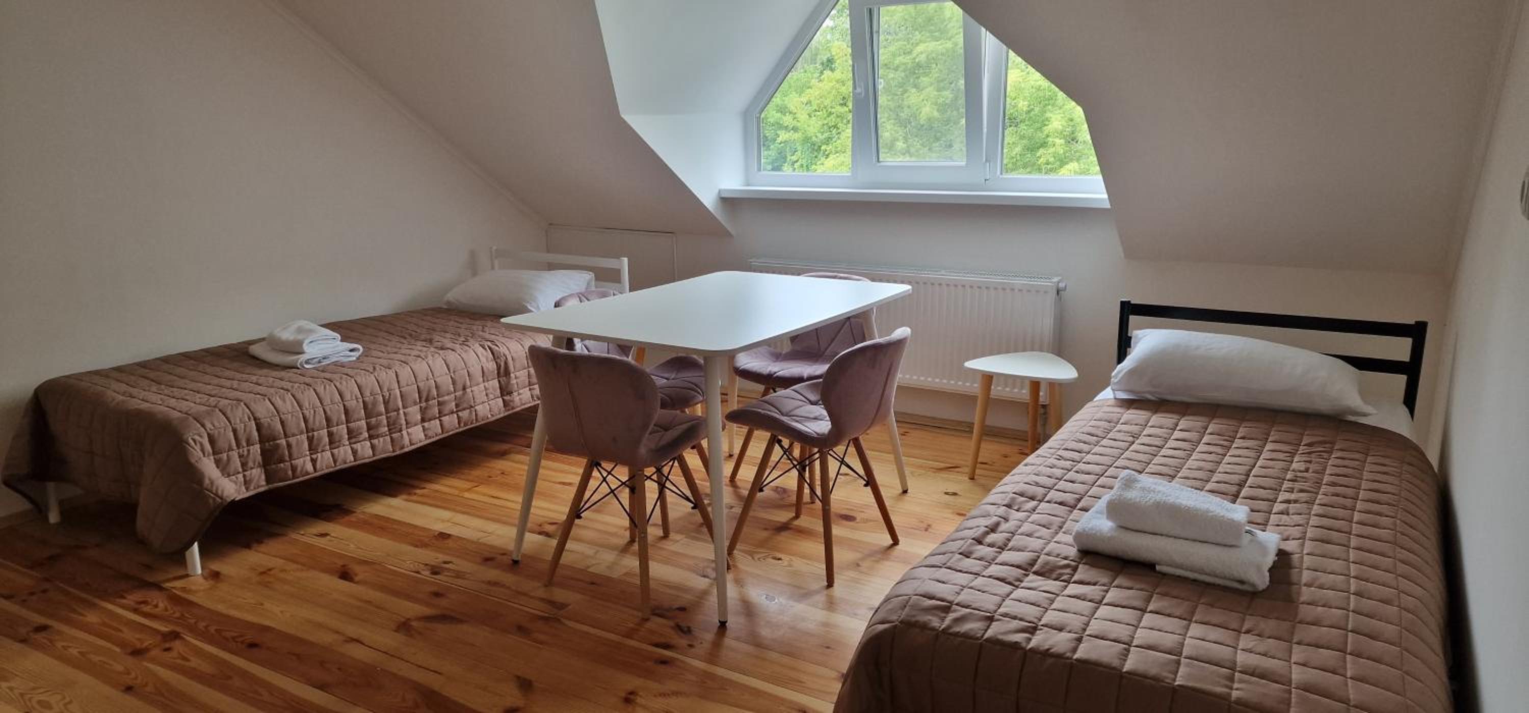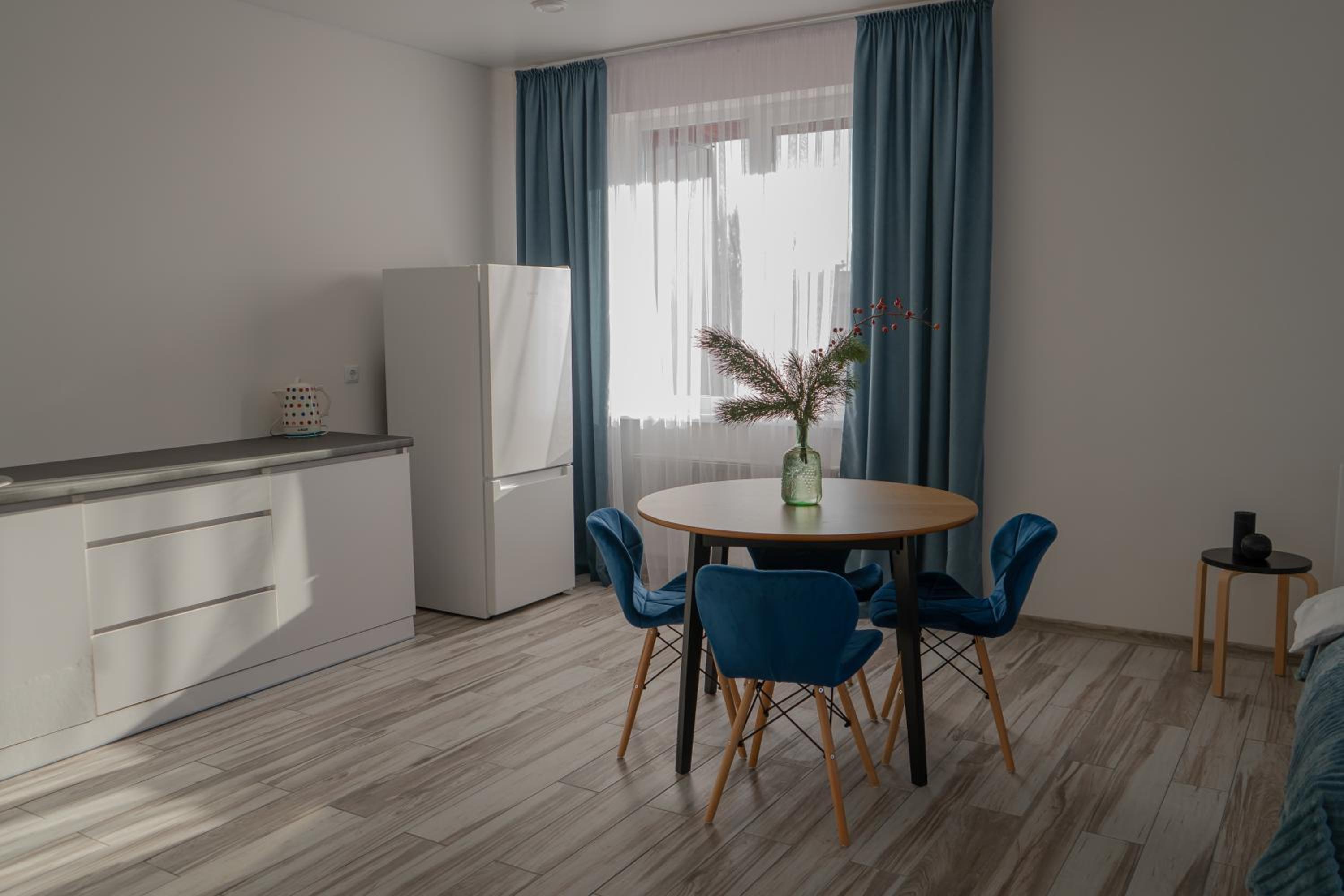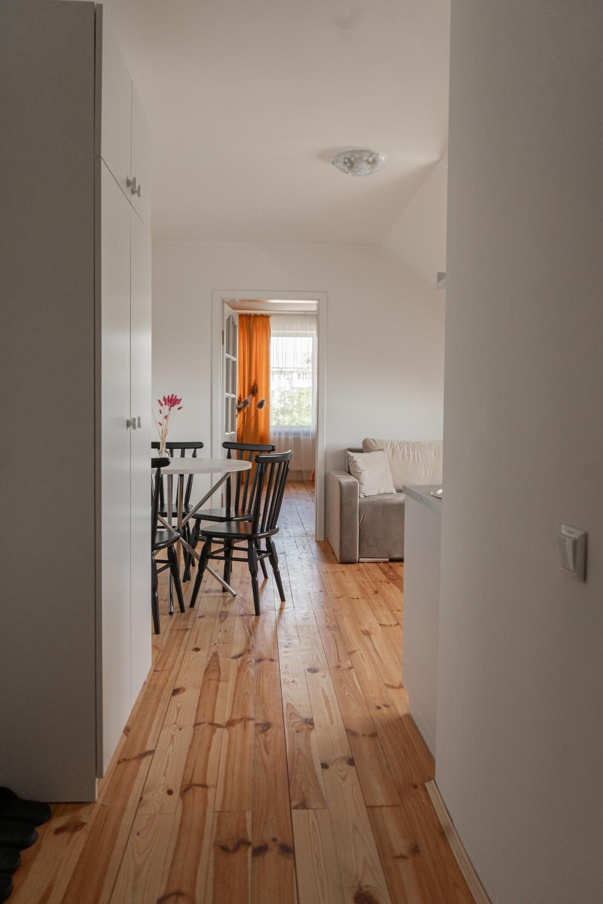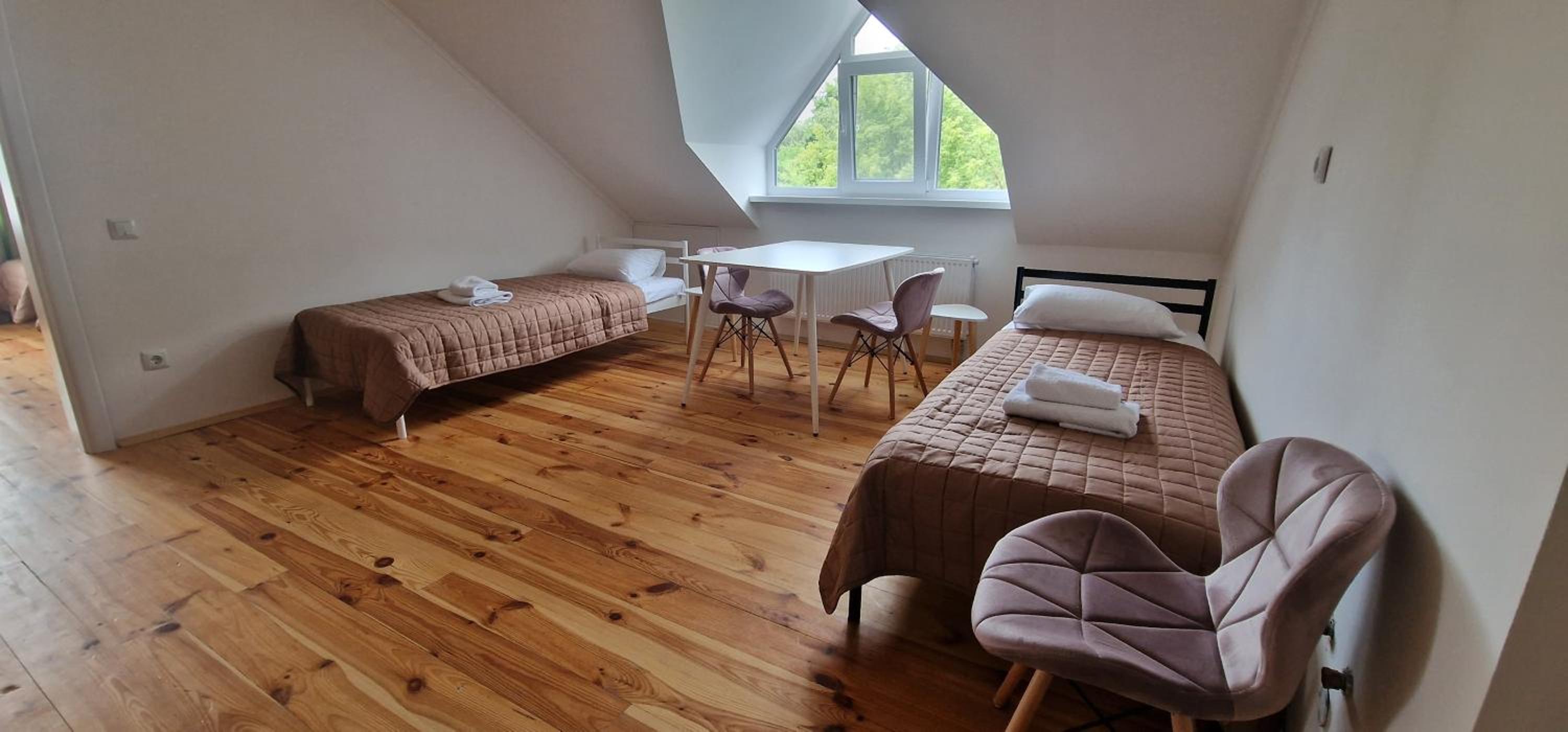 Їхали з запізненням відносно запланованого часу. Важливо було переночувати в номері, який розрахований на 4 осіб не за всі гроші світу, оскільки по дорозі більшість отелів пропонували 2 окремих номери. Саме ці апартаменти знаходилися по дорозі, що дуже зручно, запропонували необхідне нам розміщення, чистий номер, сучасний ремонт, в номері є все необхідне для самостійного приготування їжі (посуд, мікрохвильовка, індукційна піч, чайник). Привітні адміністартори. Є можливість купити готову їжу.