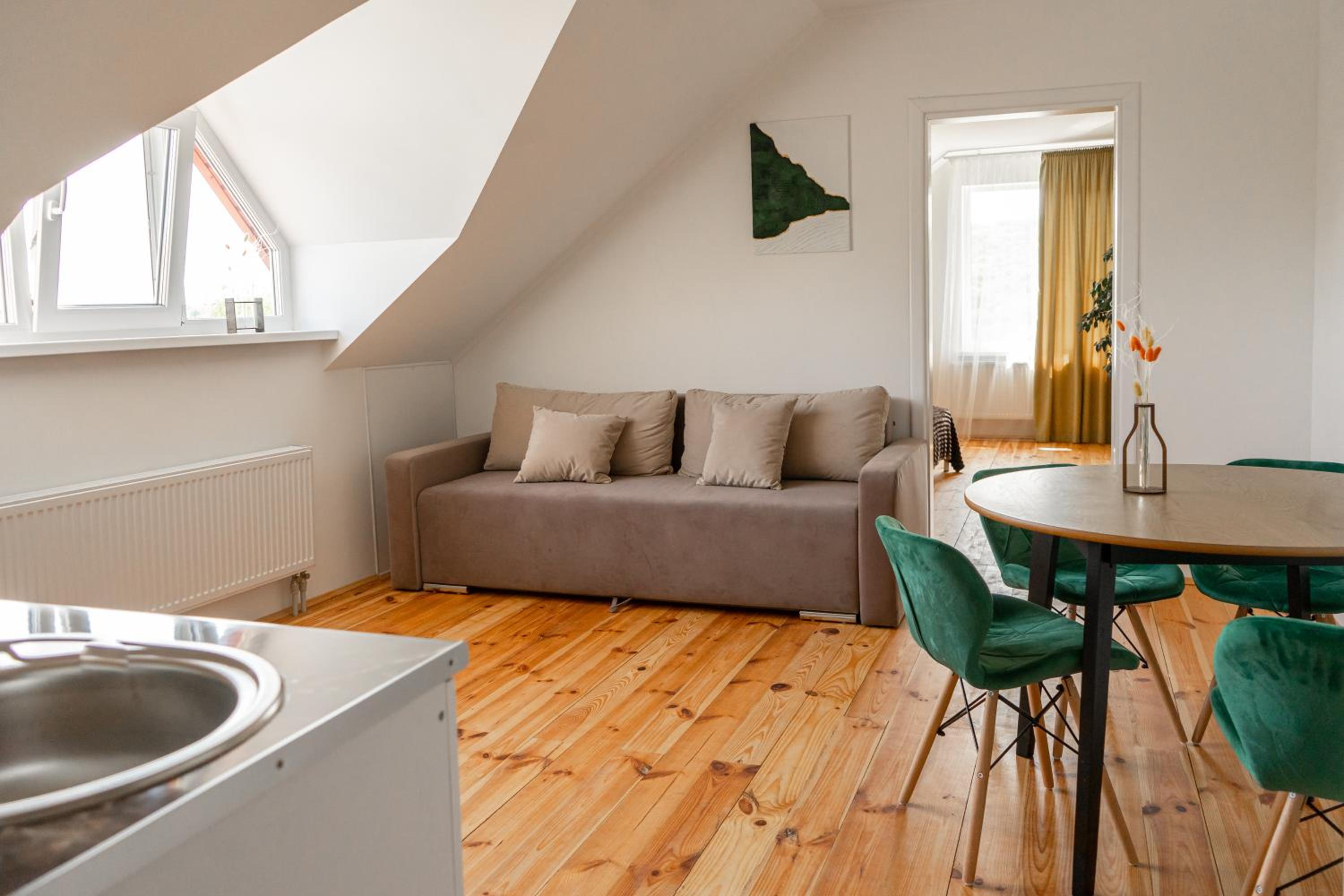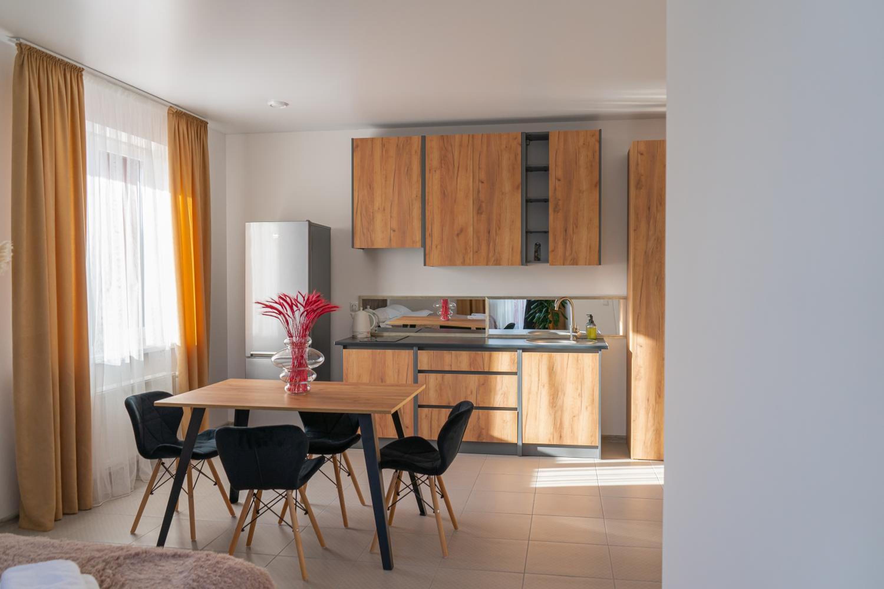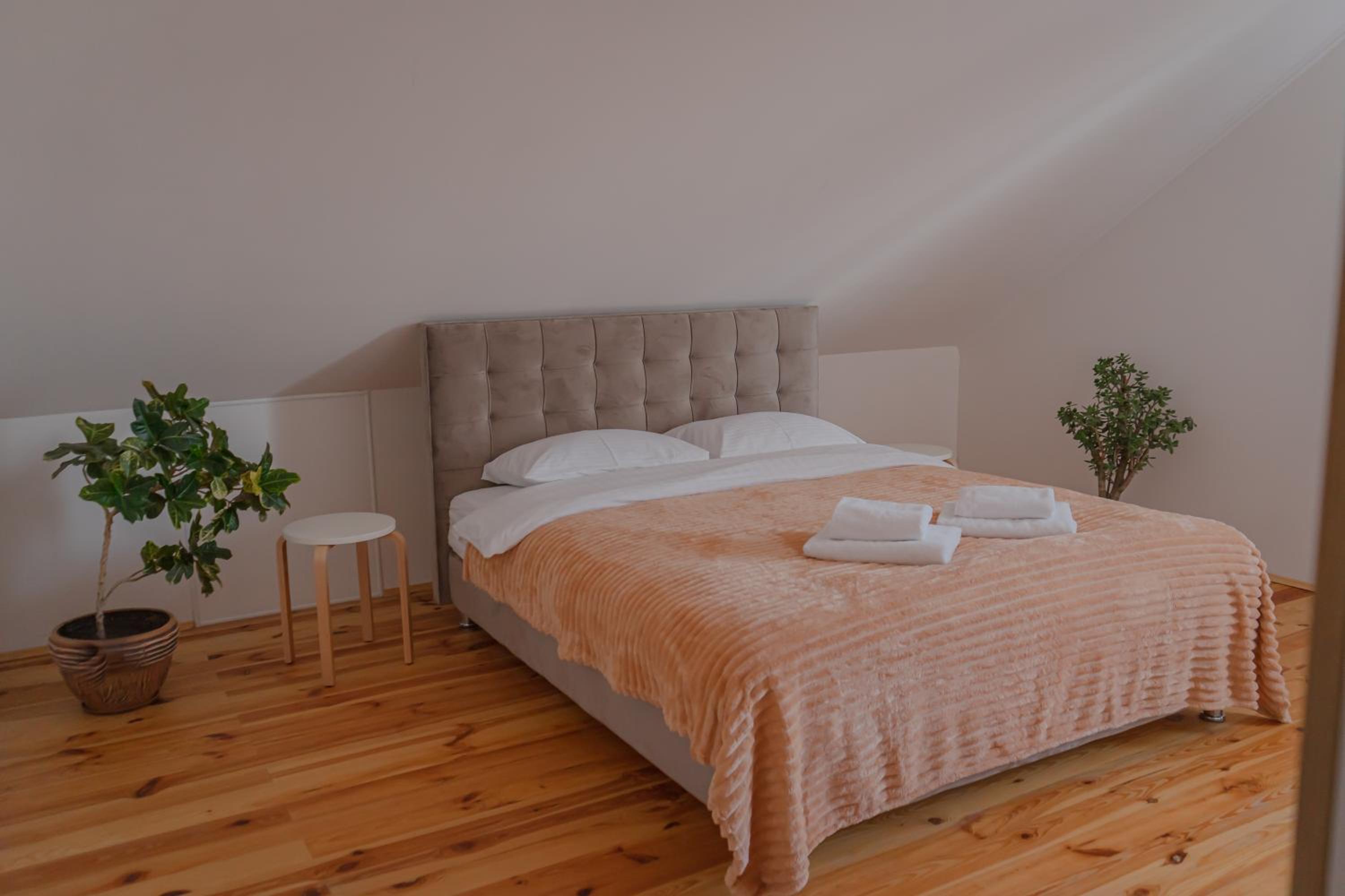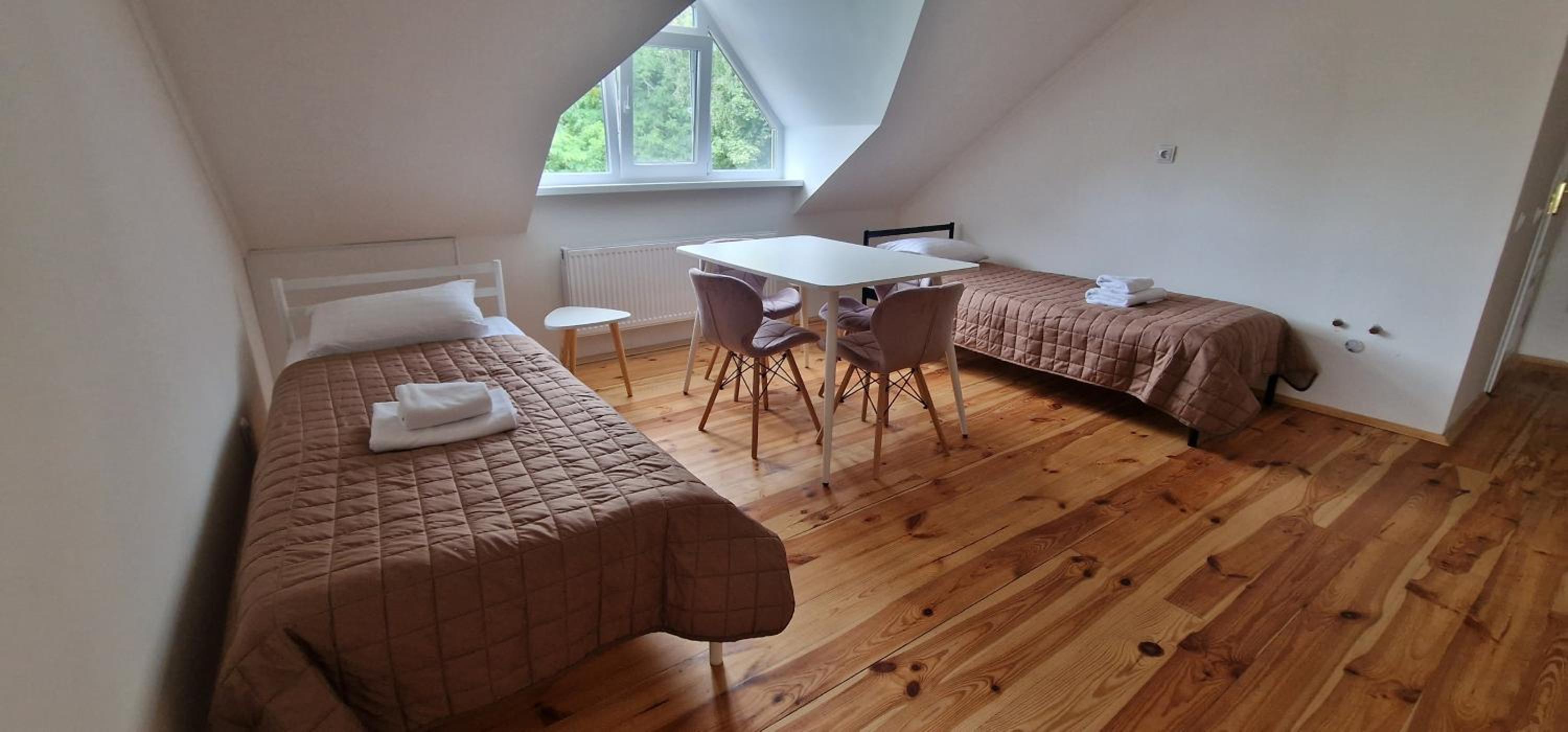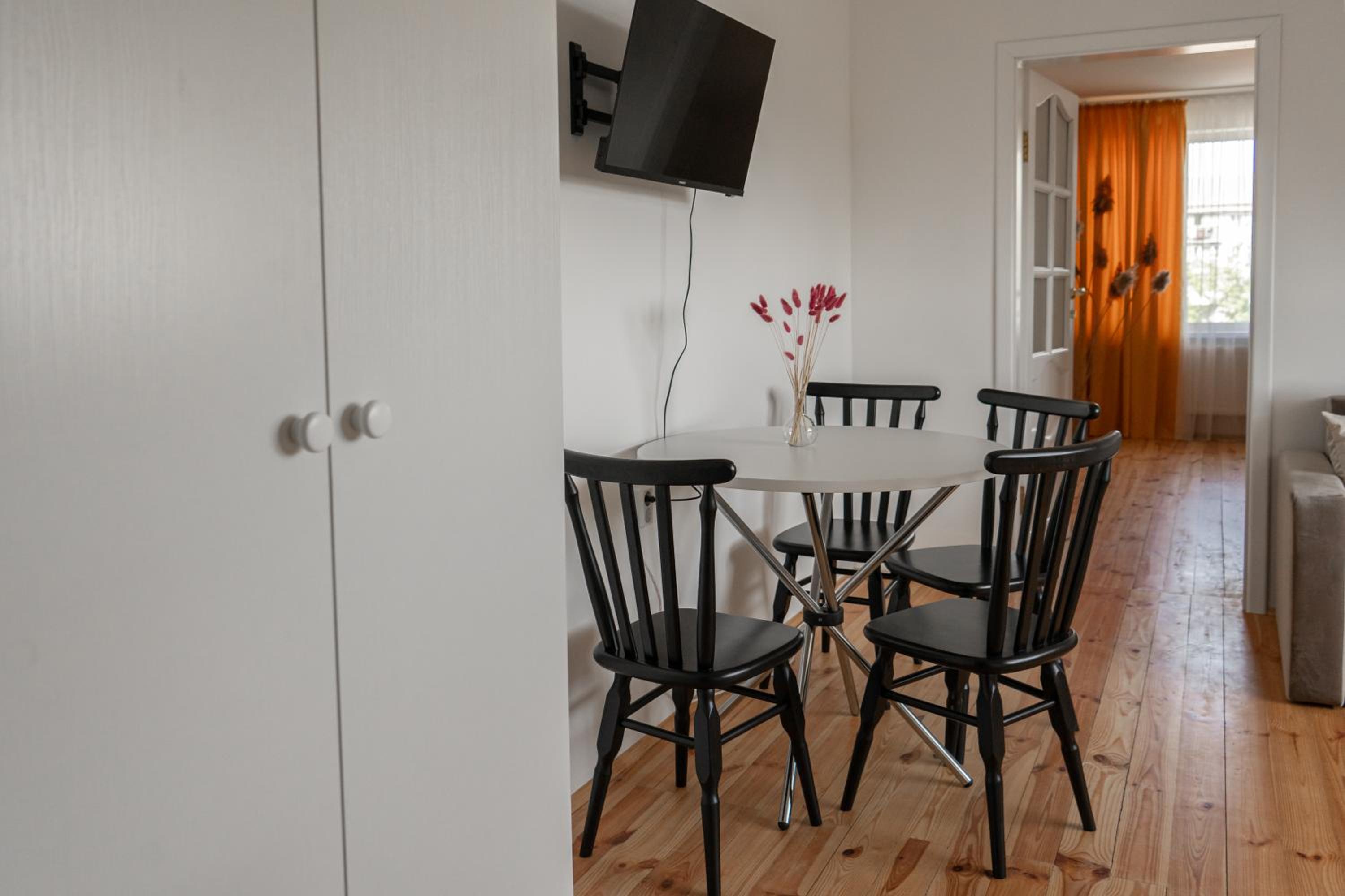 Їхали з запізненням відносно запланованого часу. Важливо було переночувати в номері, який розрахований на 4 осіб не за всі гроші світу, оскільки по дорозі більшість отелів пропонували 2 окремих номери. Саме ці апартаменти знаходилися по дорозі, що дуже зручно, запропонували необхідне нам розміщення, чистий номер, сучасний ремонт, в номері є все необхідне для самостійного приготування їжі (посуд, мікрохвильовка, індукційна піч, чайник). Привітні адміністартори. Є можливість купити готову їжу.