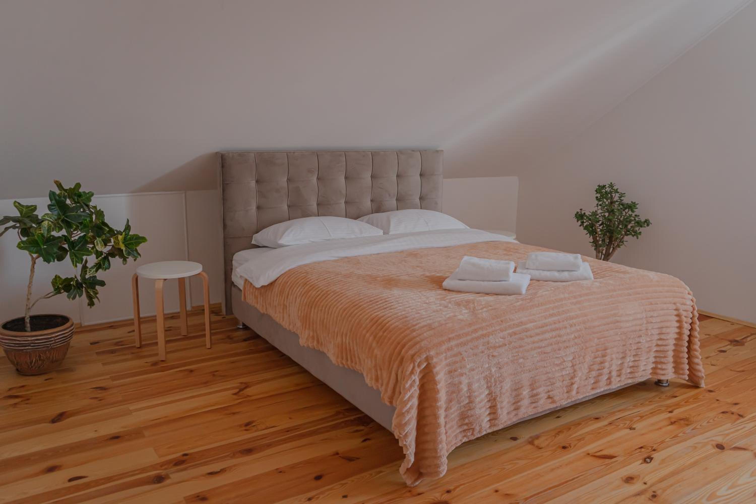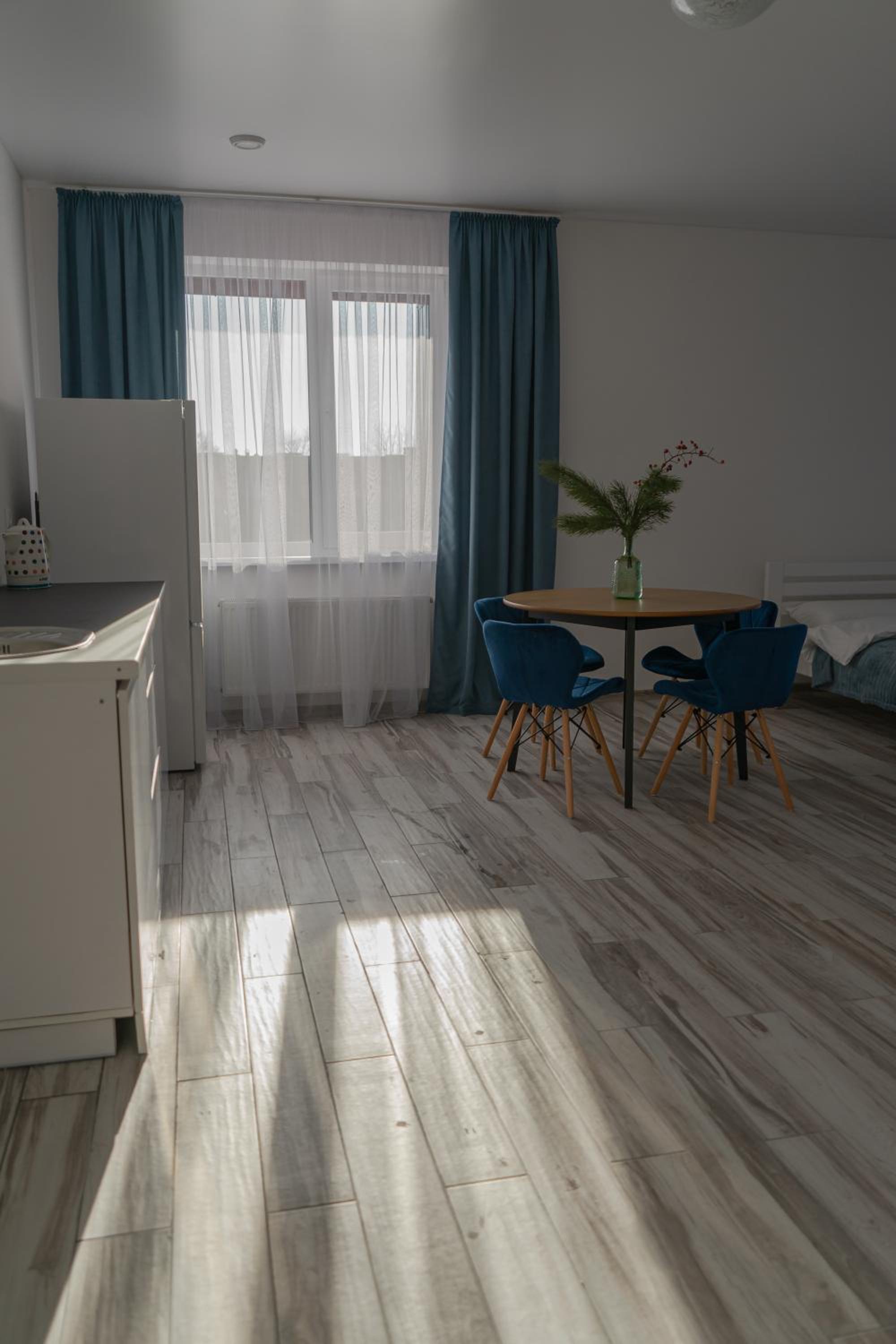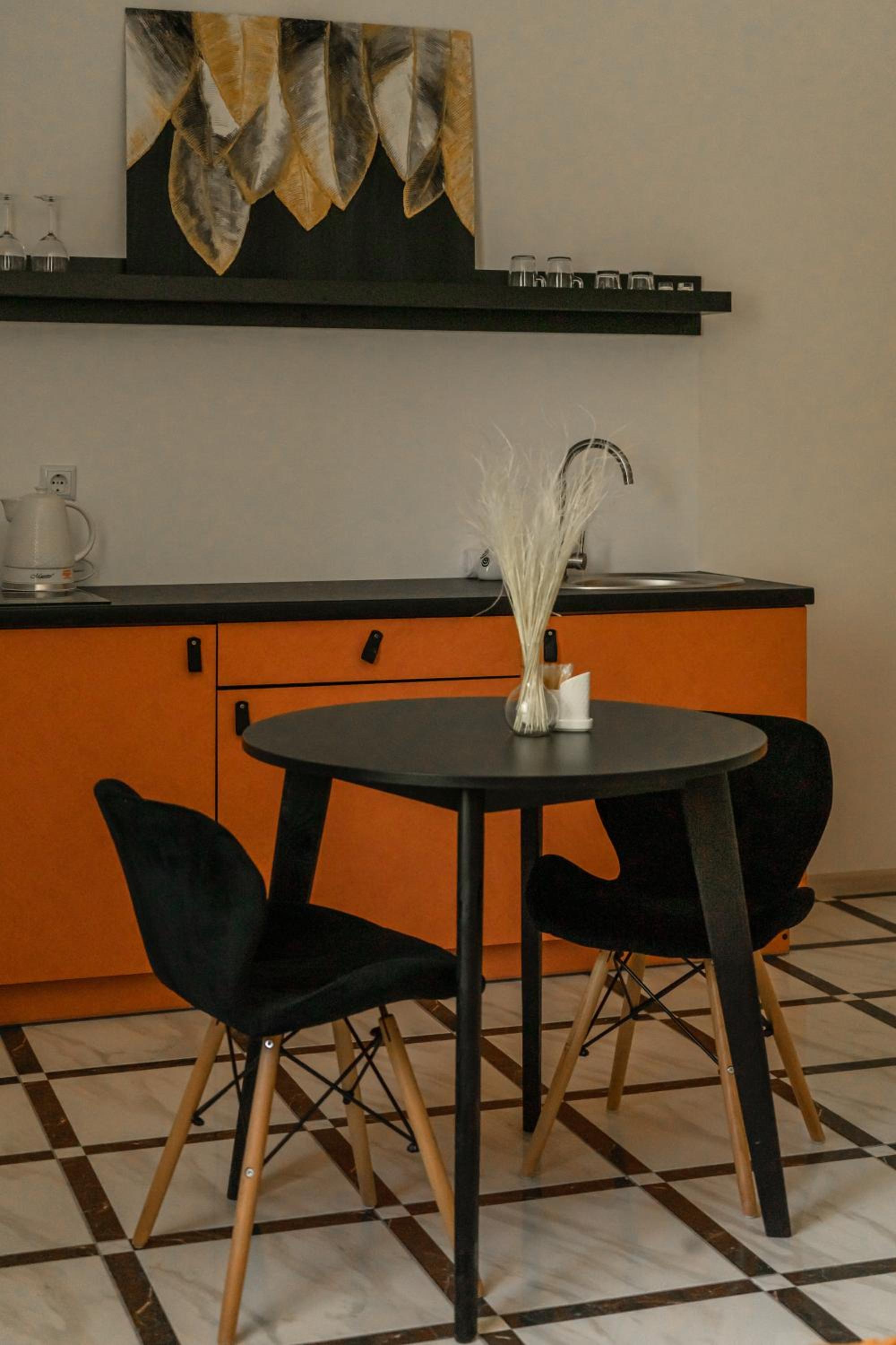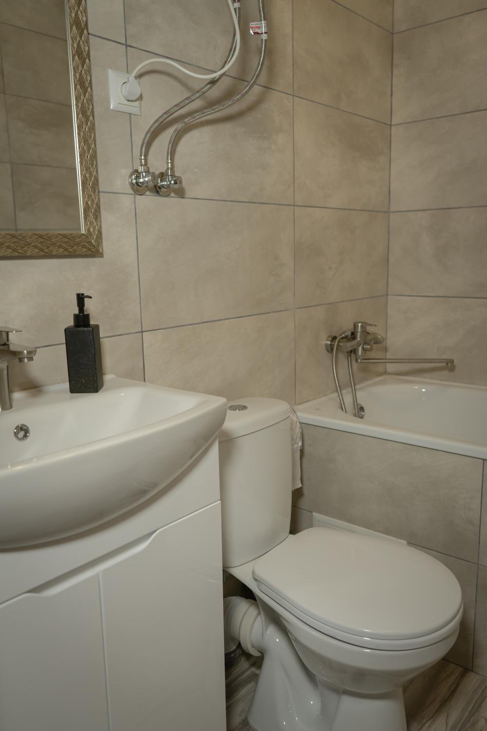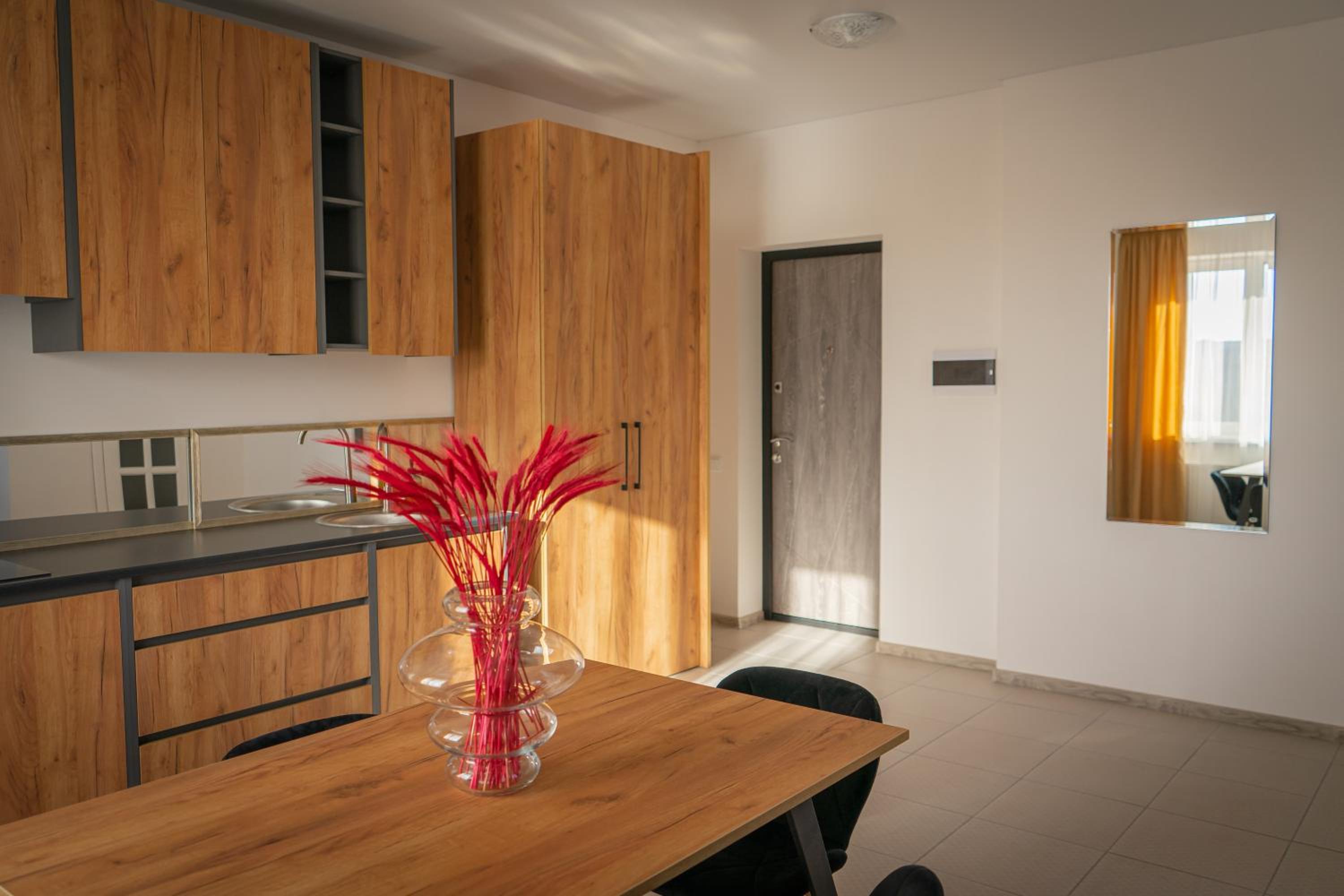 Їхали з запізненням відносно запланованого часу. Важливо було переночувати в номері, який розрахований на 4 осіб не за всі гроші світу, оскільки по дорозі більшість отелів пропонували 2 окремих номери. Саме ці апартаменти знаходилися по дорозі, що дуже зручно, запропонували необхідне нам розміщення, чистий номер, сучасний ремонт, в номері є все необхідне для самостійного приготування їжі (посуд, мікрохвильовка, індукційна піч, чайник). Привітні адміністартори. Є можливість купити готову їжу.