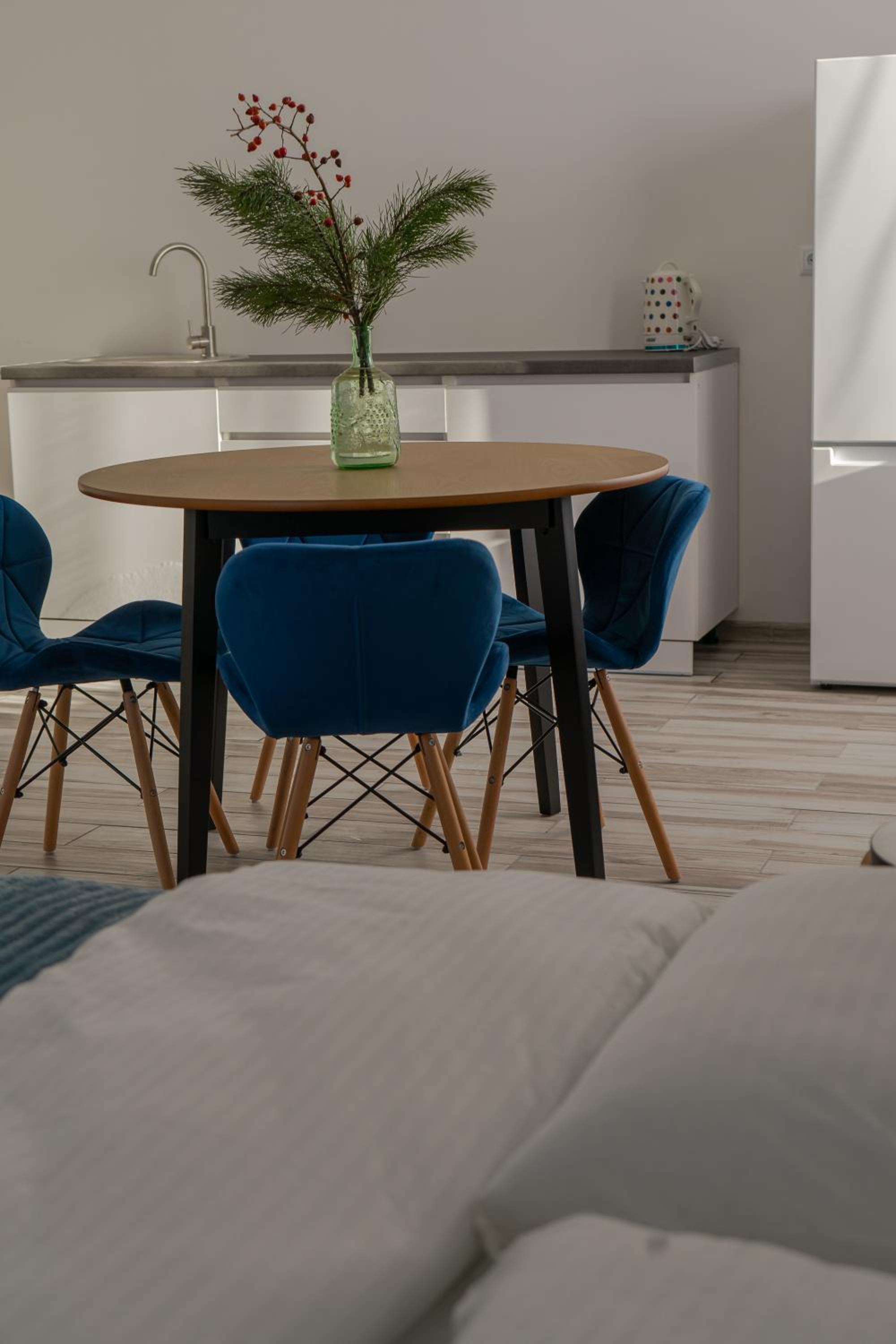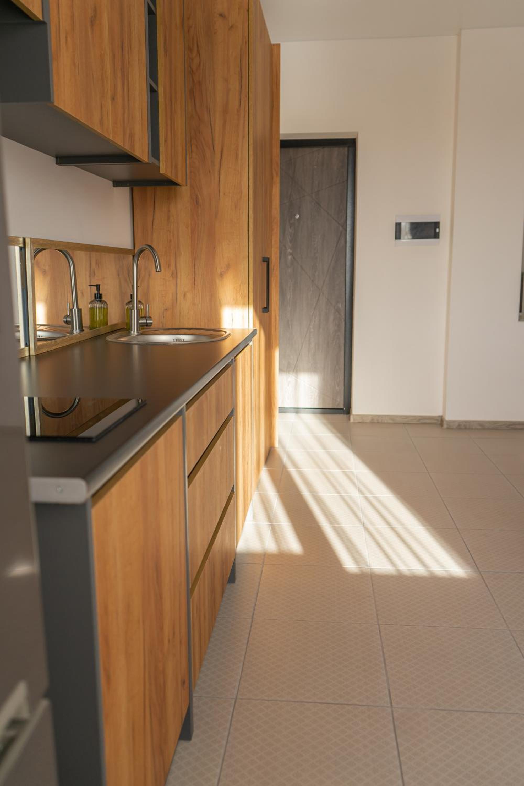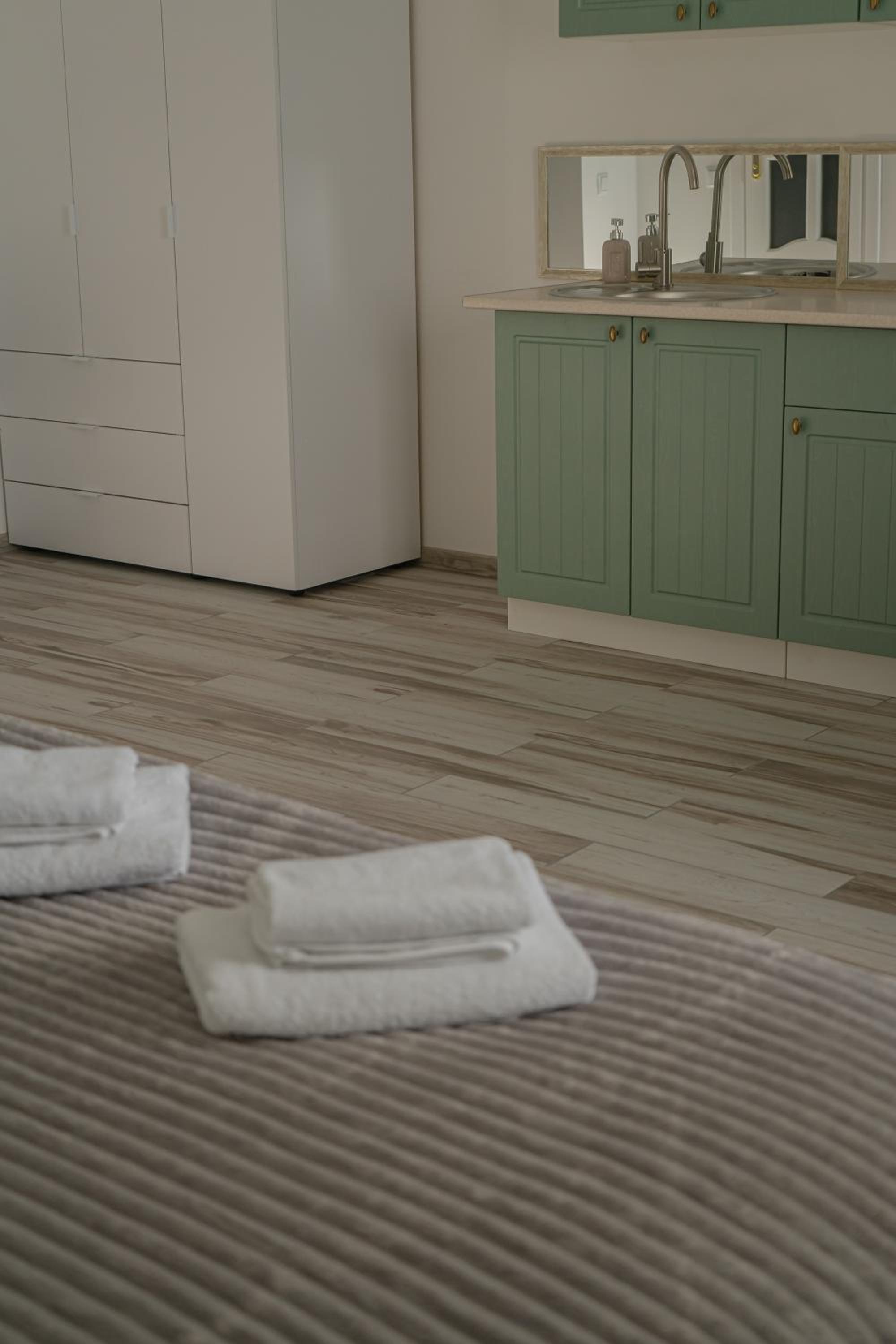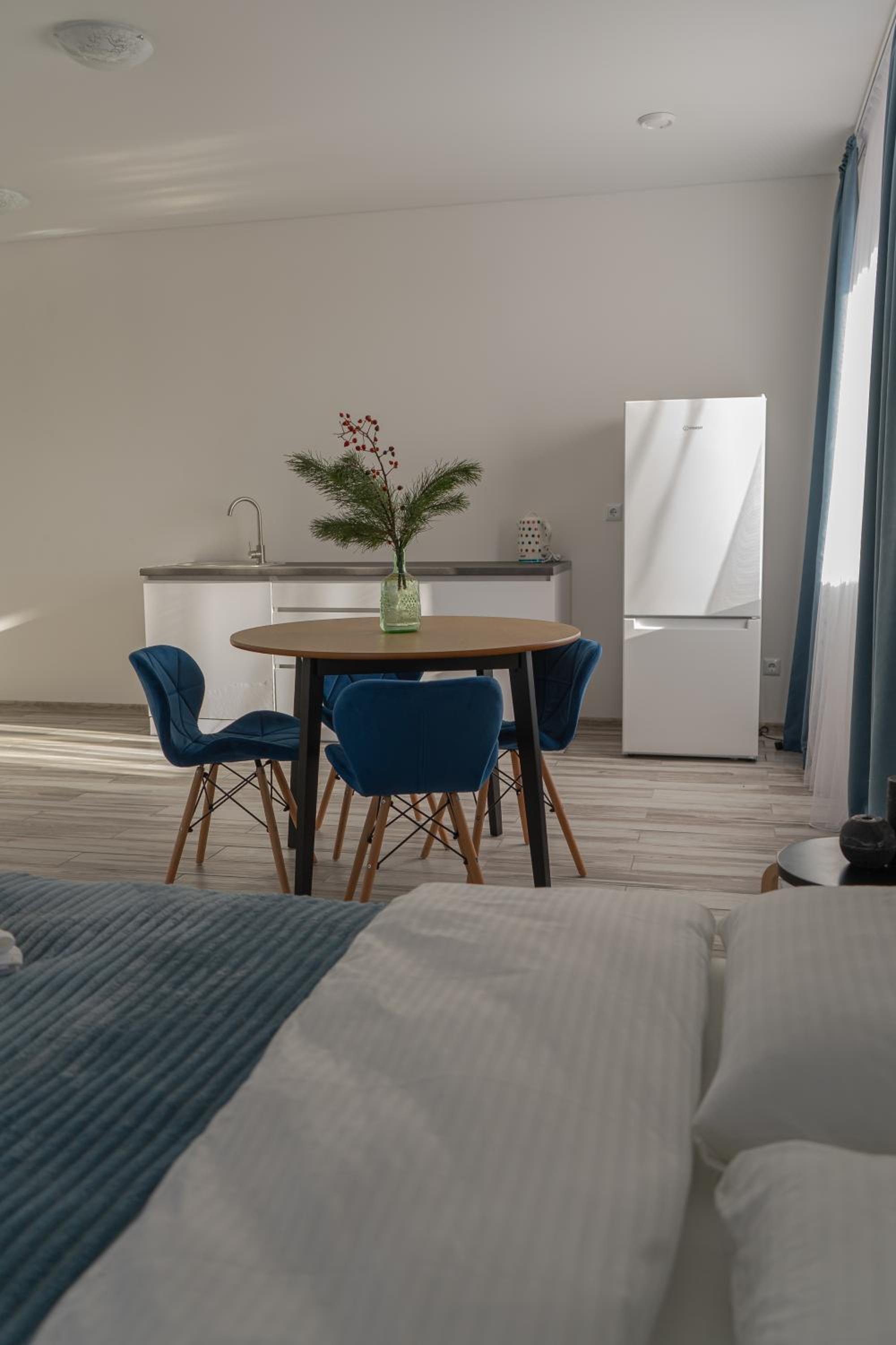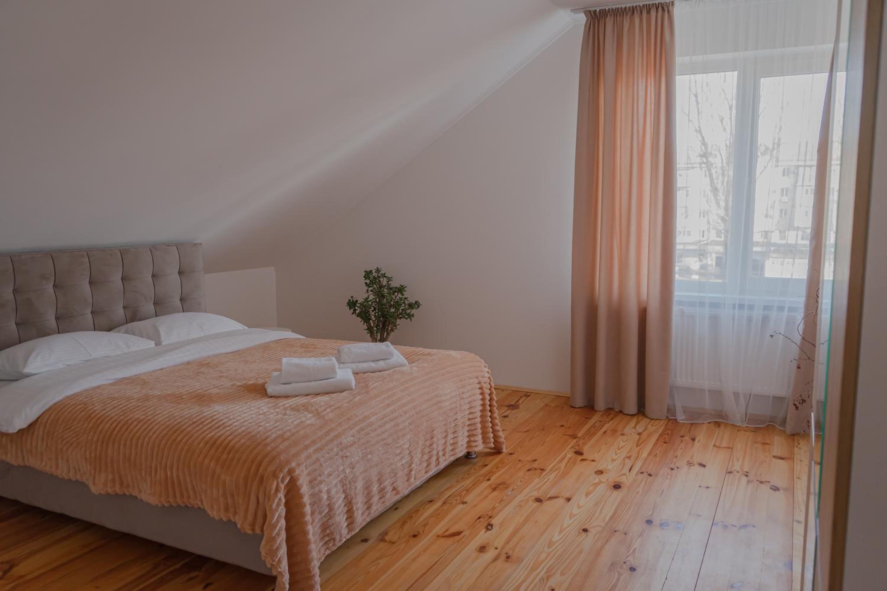 Їхали з запізненням відносно запланованого часу. Важливо було переночувати в номері, який розрахований на 4 осіб не за всі гроші світу, оскільки по дорозі більшість отелів пропонували 2 окремих номери. Саме ці апартаменти знаходилися по дорозі, що дуже зручно, запропонували необхідне нам розміщення, чистий номер, сучасний ремонт, в номері є все необхідне для самостійного приготування їжі (посуд, мікрохвильовка, індукційна піч, чайник). Привітні адміністартори. Є можливість купити готову їжу.
