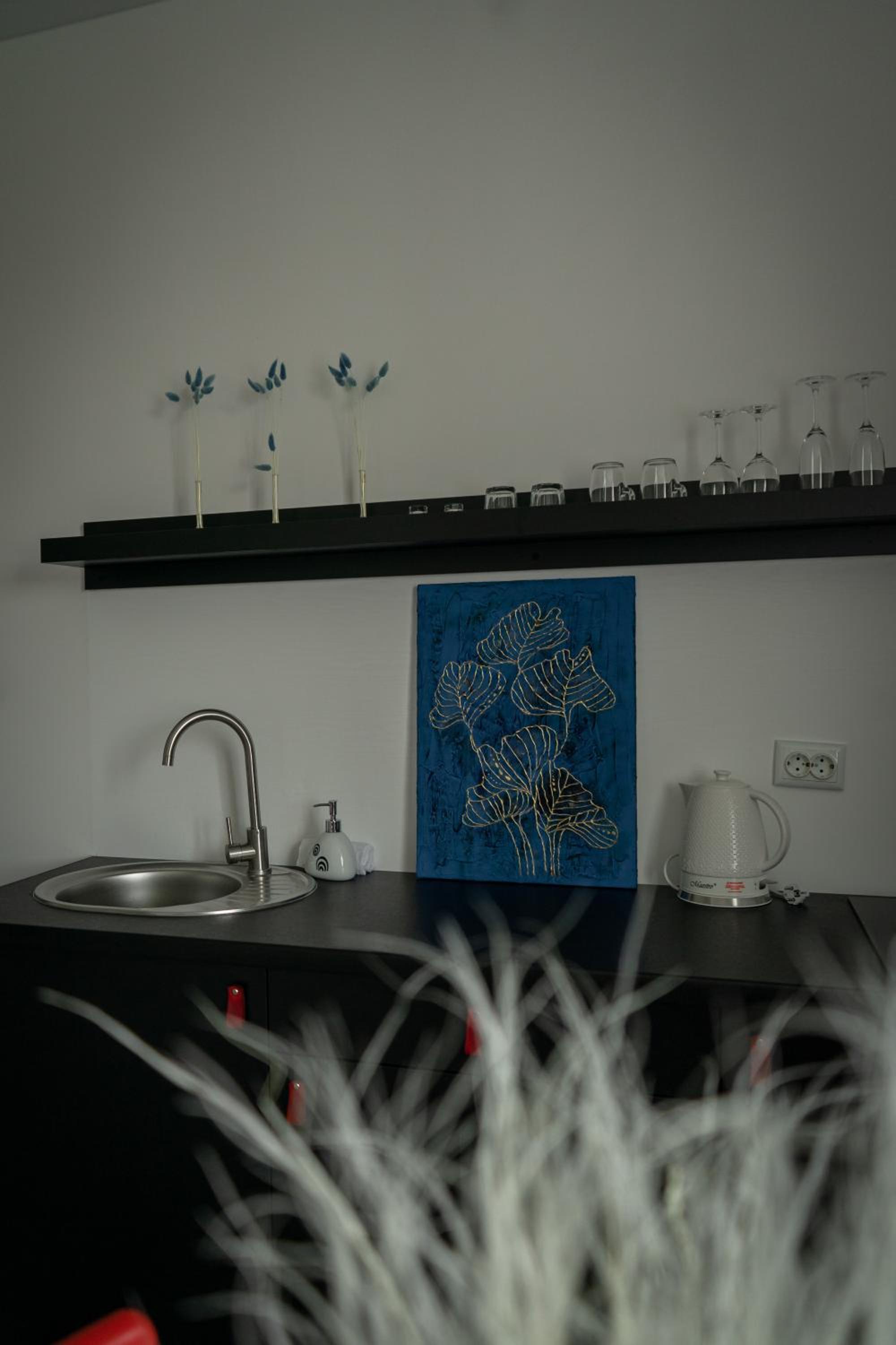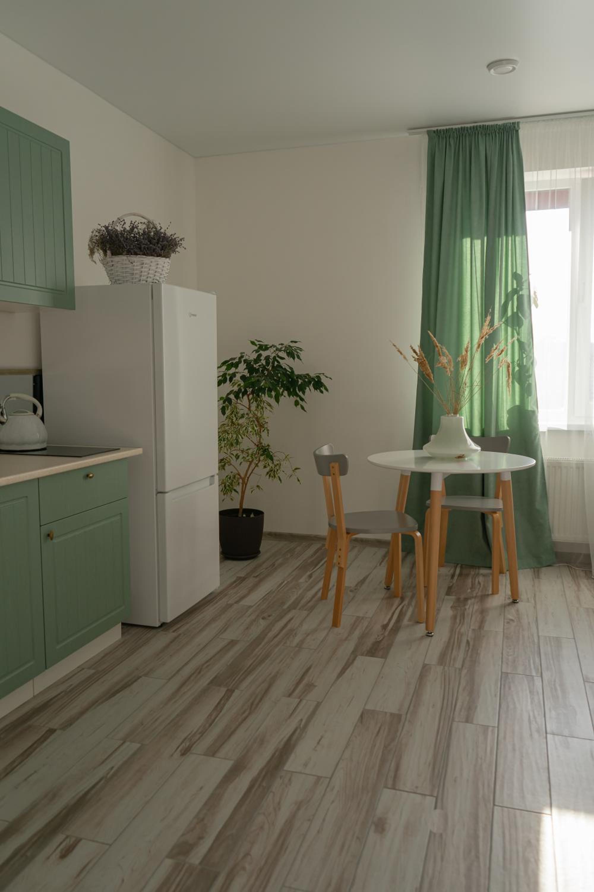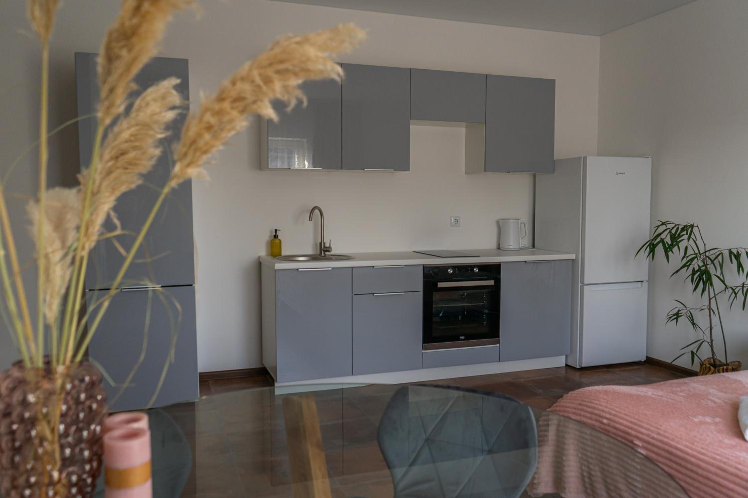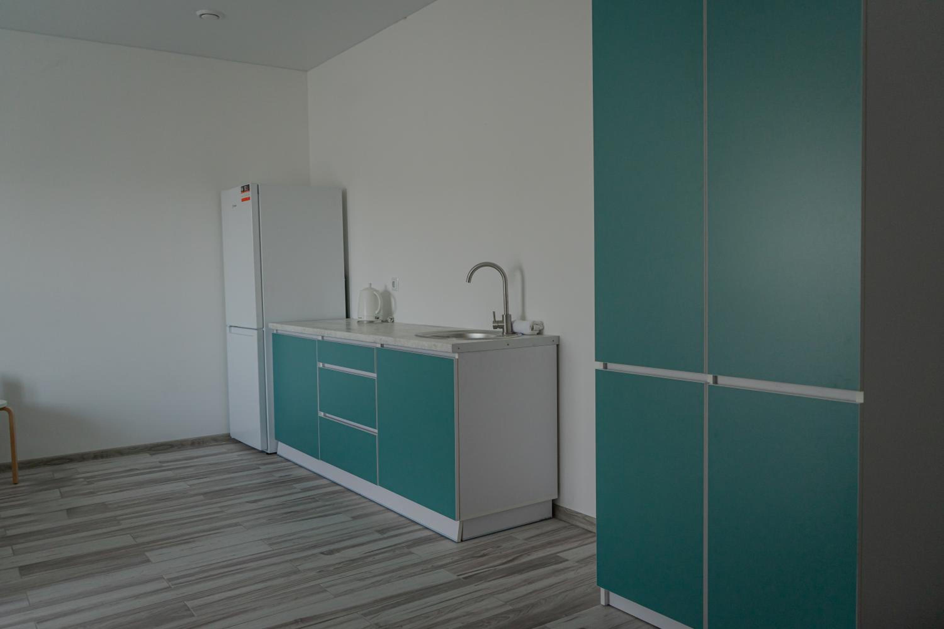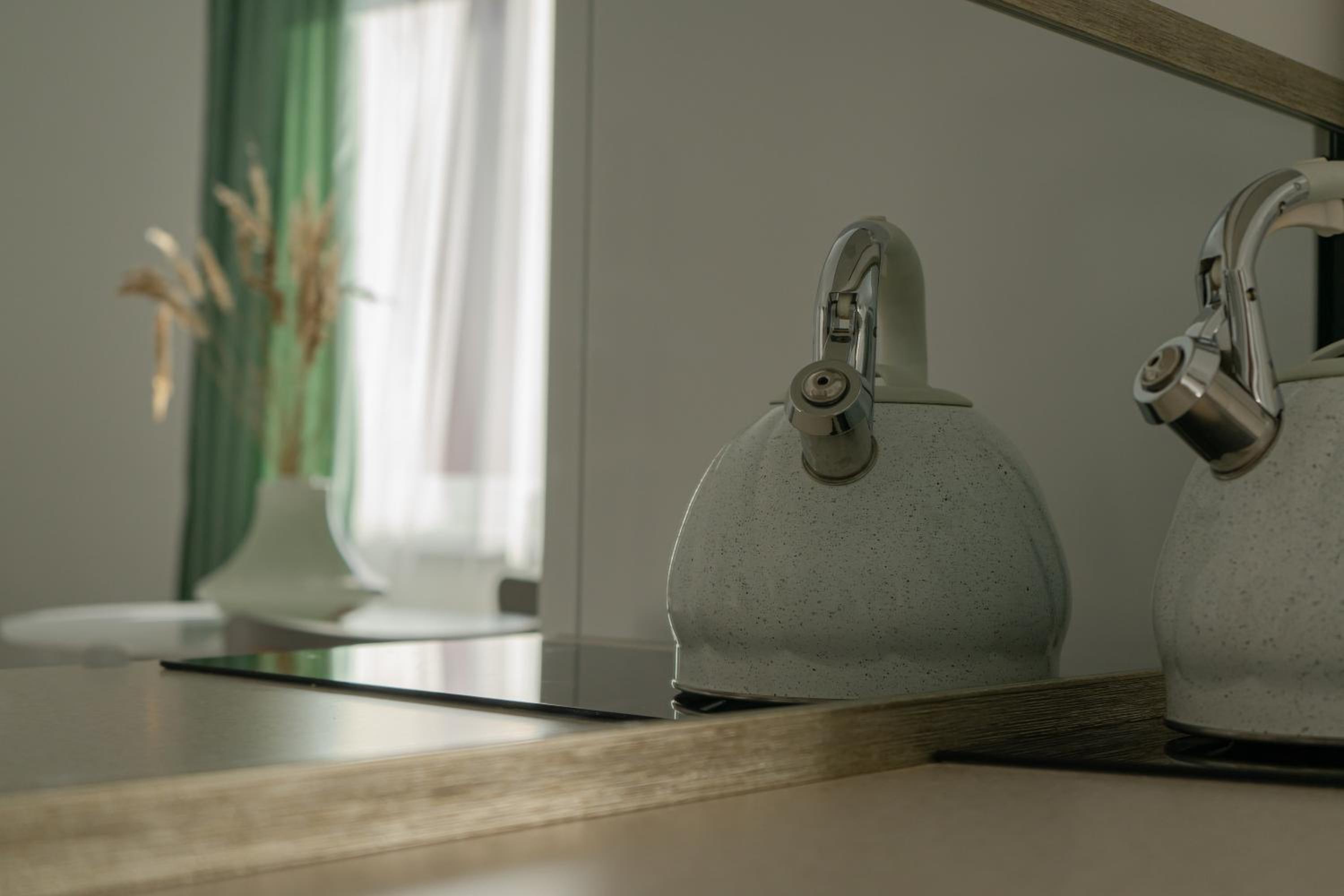 У номері всі меблі, посуд і все інше новеньке. Посуд, мікрохвильовка, холодильник , плита все є.