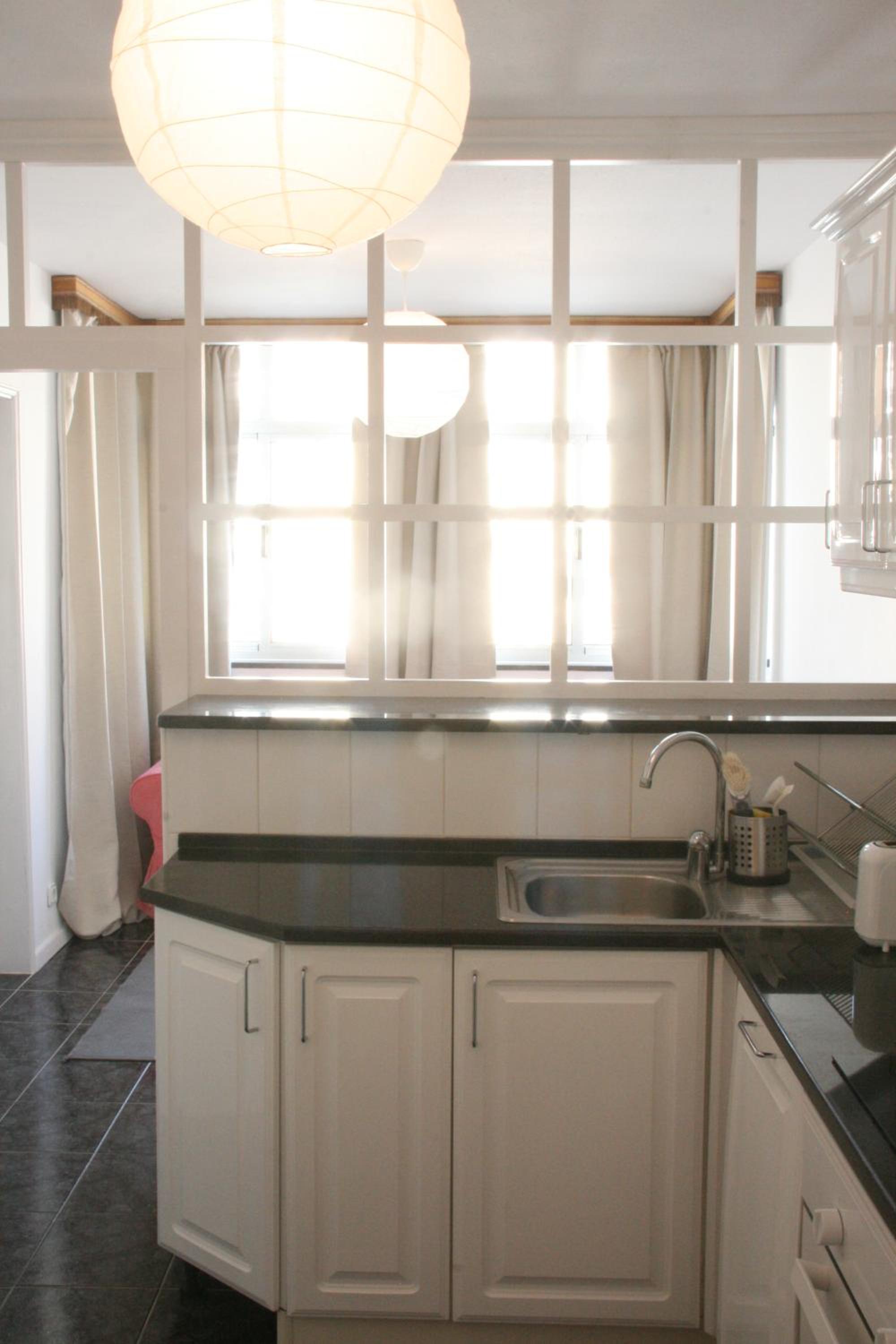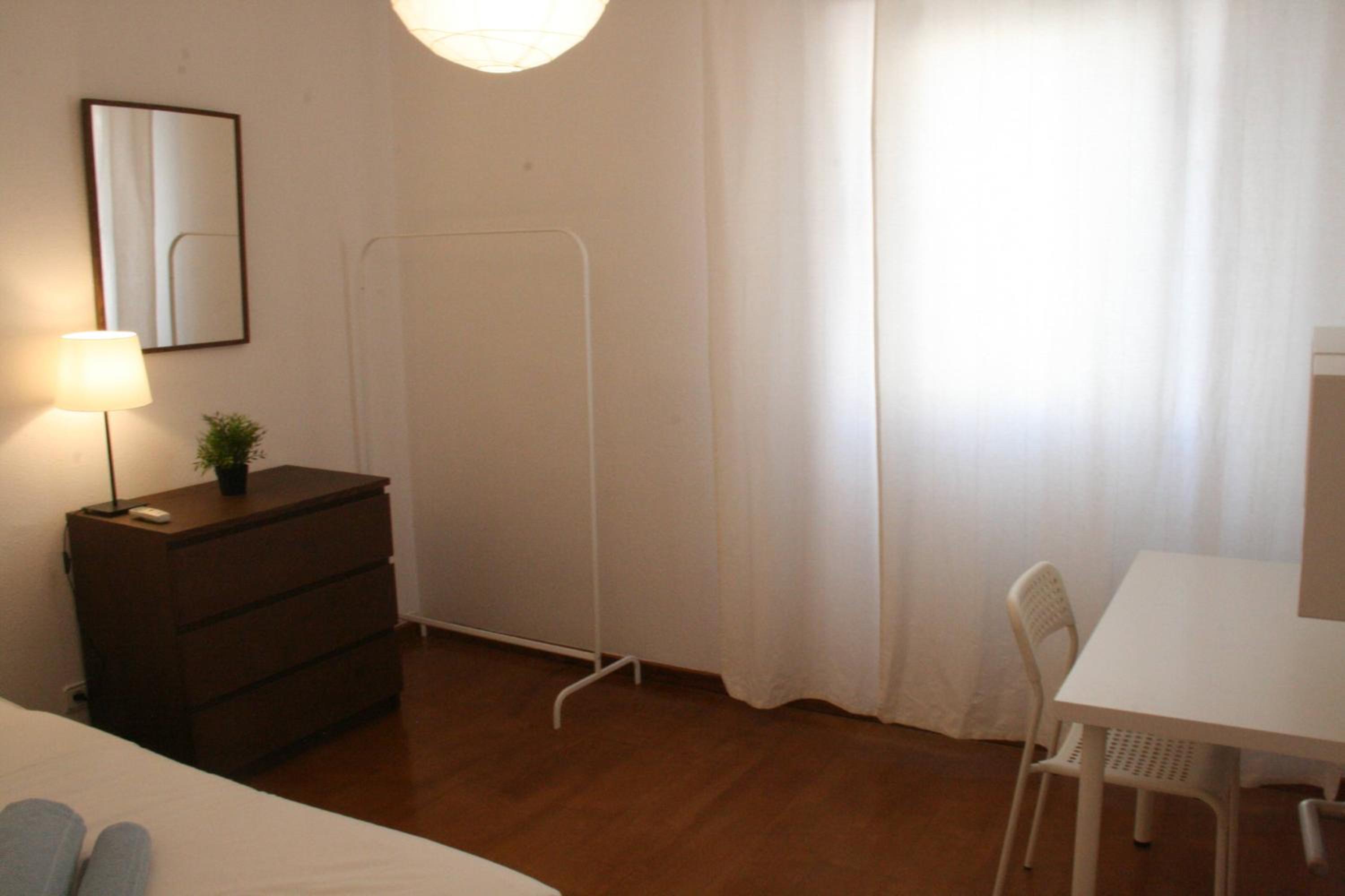 Abajo en el edificio hay una excelente panadería que tiene de todo y a buenos precios. También tiene en la puerta una parada de autobuses en las dos direcciones y a muy corta distancia el metro y la Universidad