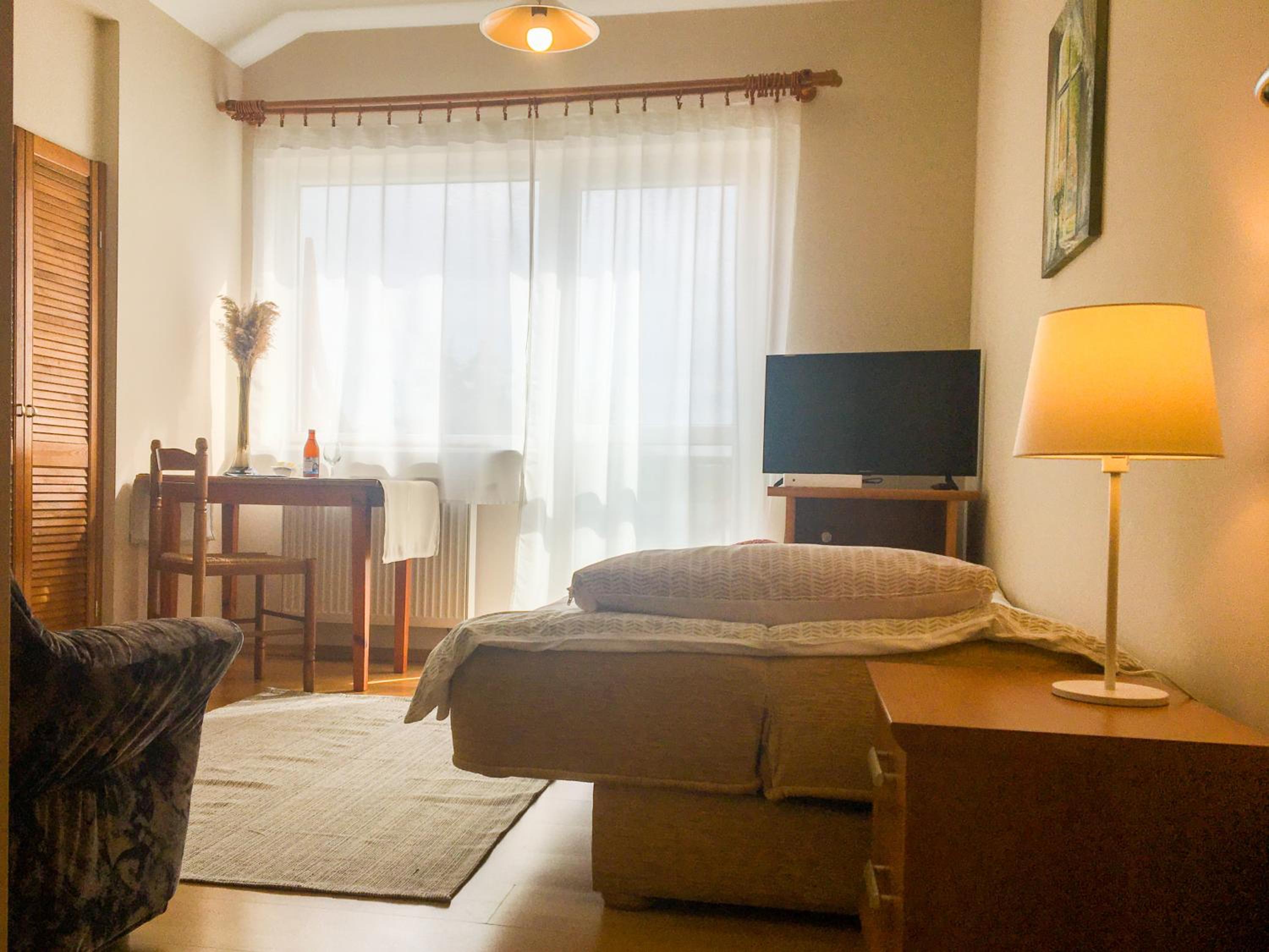 The air-conditioned units feature modern amenities like flat-screen TVs, free WiFi, and private bathrooms. Some rooms even boast balconies with serene street views.