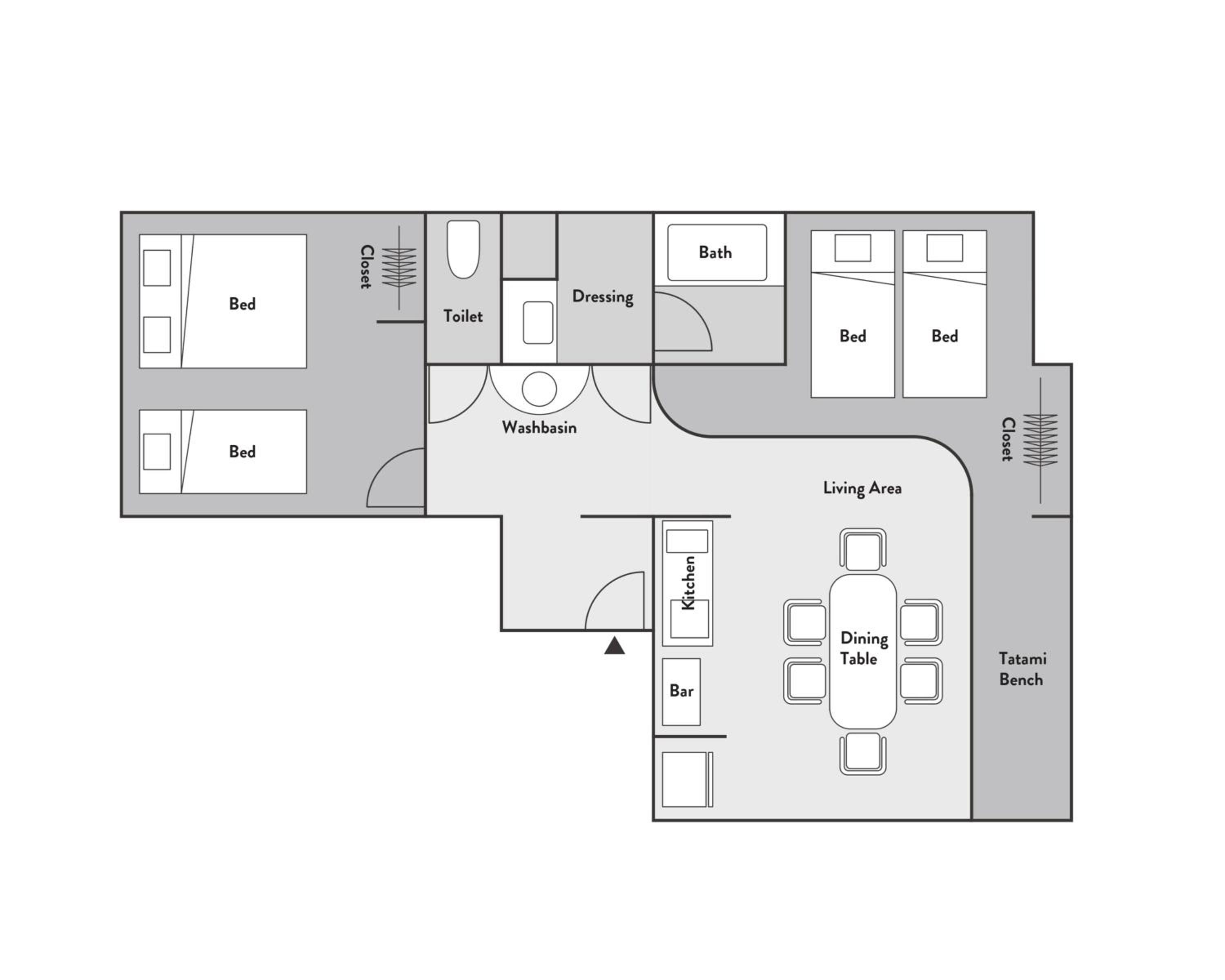The entrance area was quite dirty. Although guests are asked to remove their shoes, doing so meant standing on a cold, wet, and dirty floor, which was very unpleasant and uncomfortable.