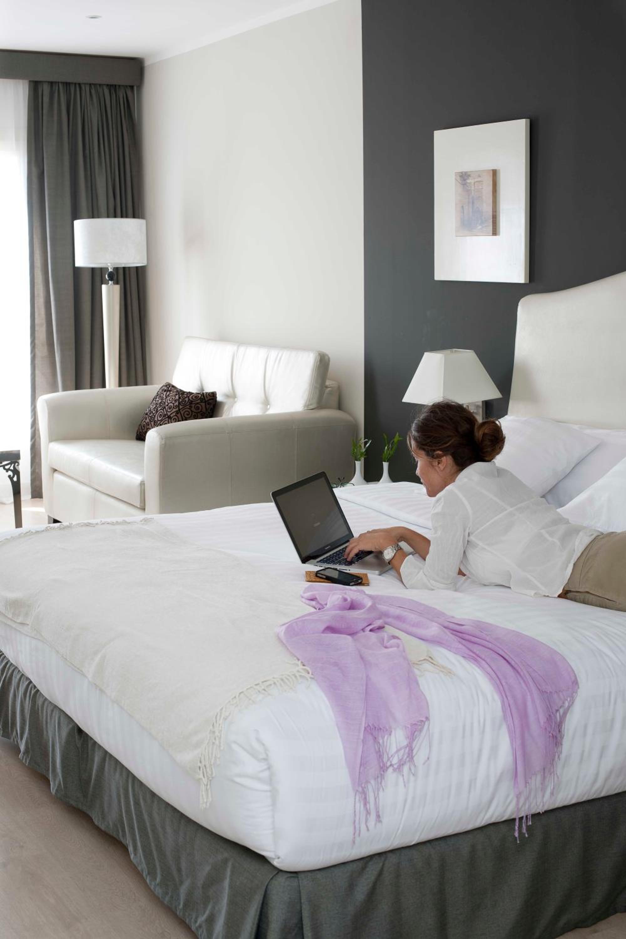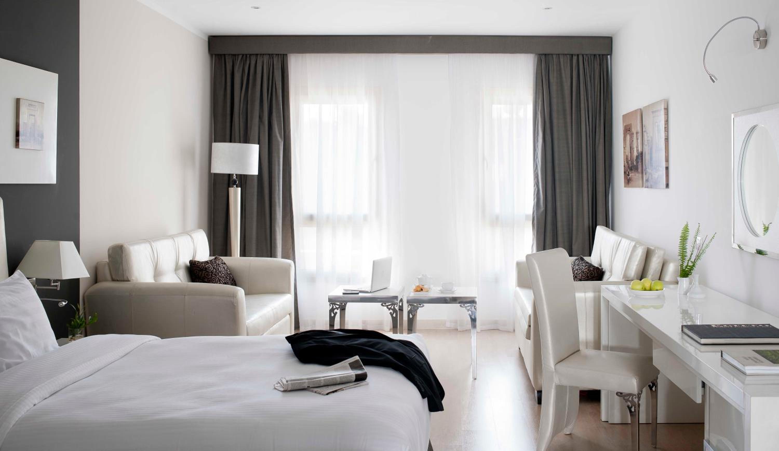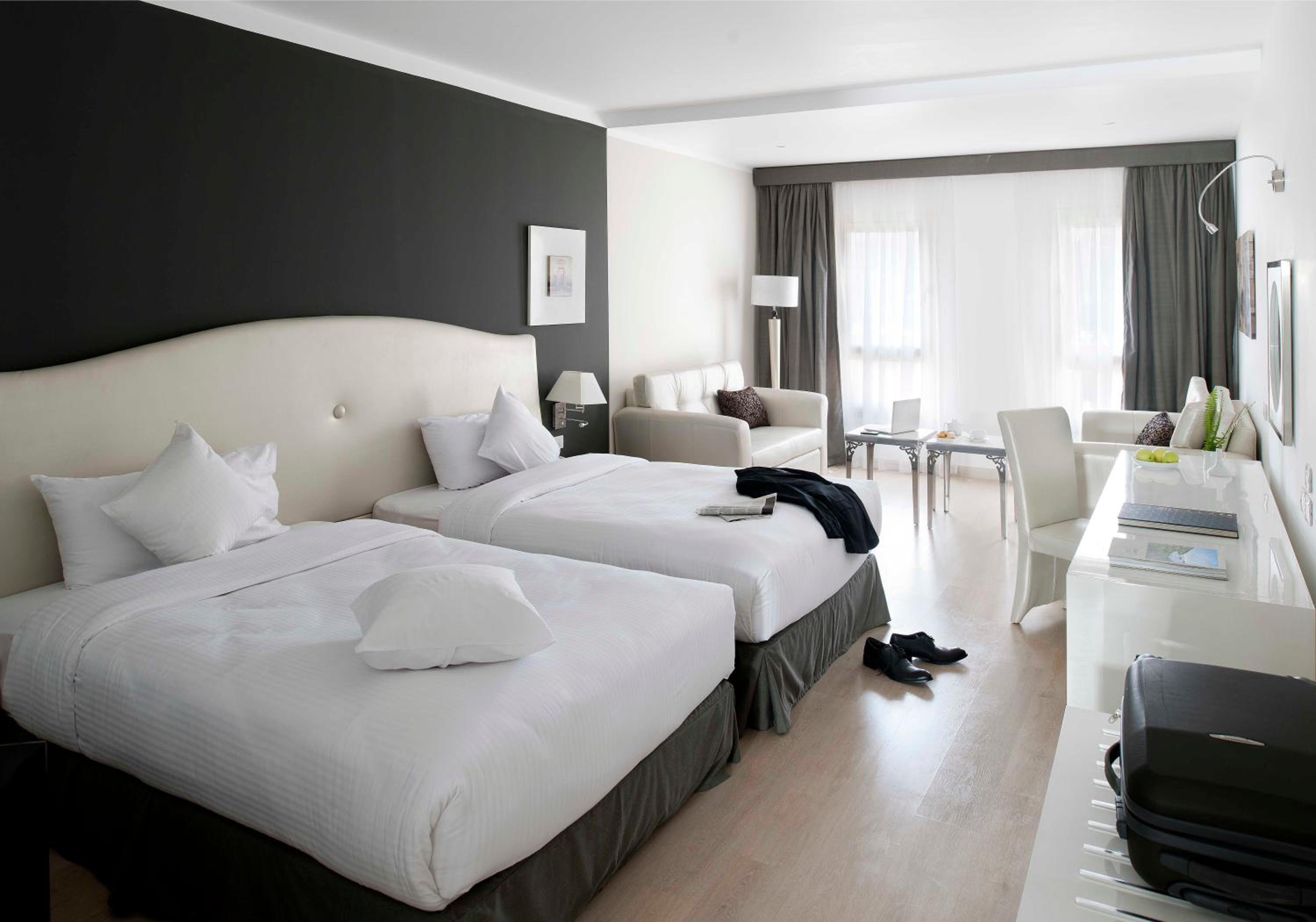 Indulge in spacious and contemporary rooms, fully air-conditioned with modern art prints and stylish bathrooms at Barcelo Cairo Pyramids Hotel.