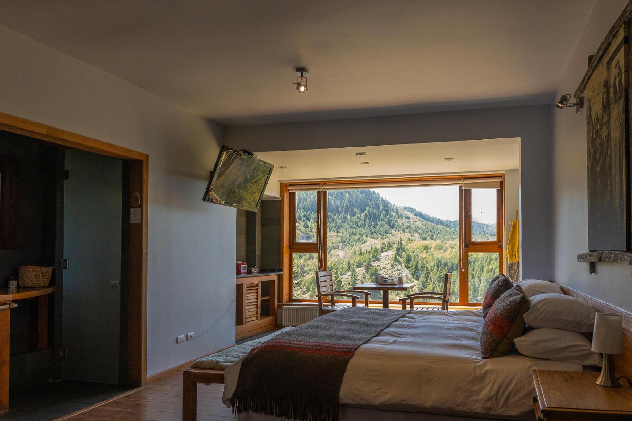 La habitación era amplia tenía una vista increíble a una ladera en altura todo verde , lindisimo. El mobiliario nuevo con buen gusto. El desayuno muy bueno con varias opciones sin gluten