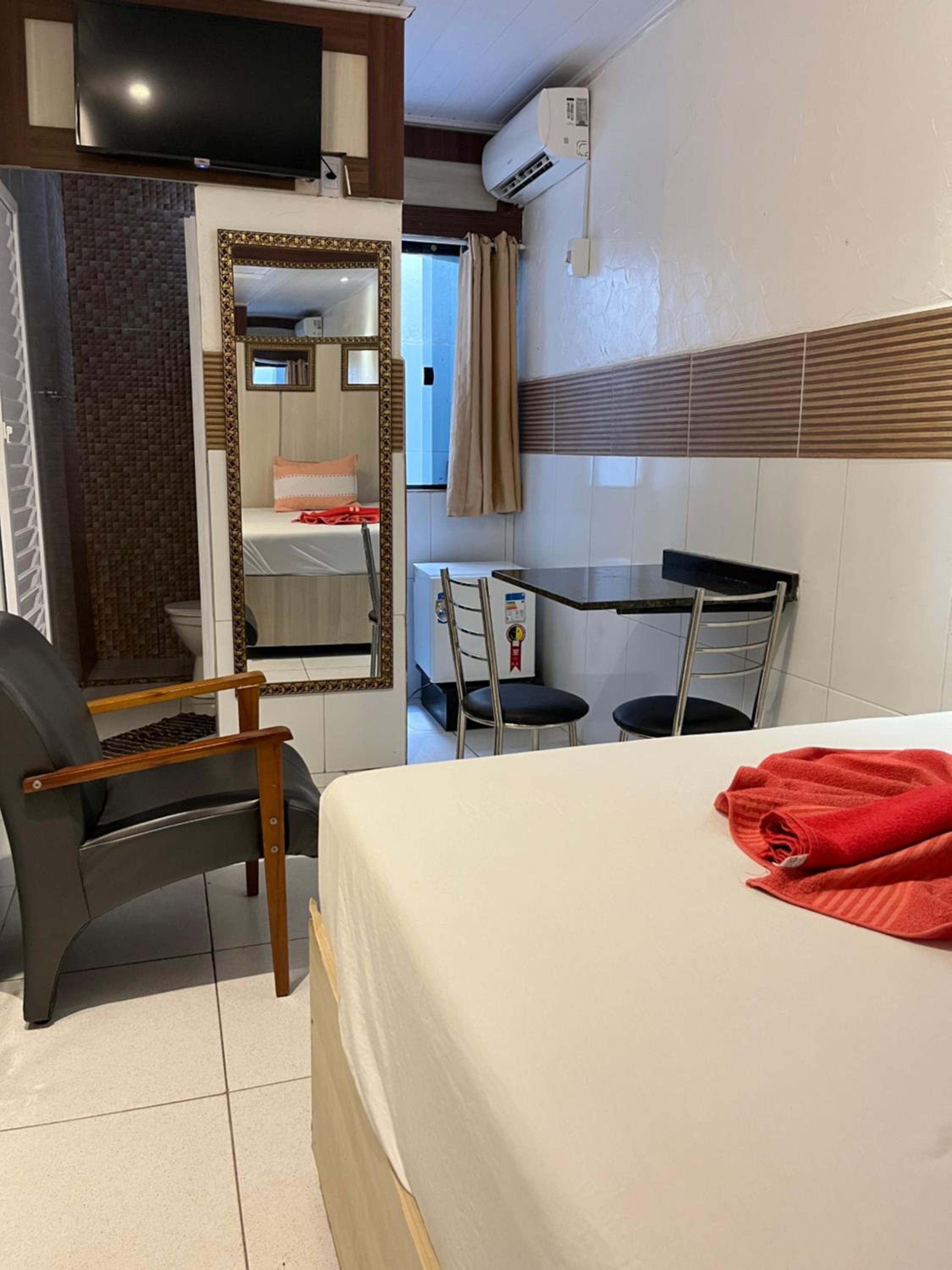 Cheguei à recepção e não havia nenhum atendente. Fiquei aguardando por um tempo, mesmo havendo outras pessoas esperando atendimento também. Depois de alguns minutos (coloca minutos) apareceu um recepcionista disse que quanto tinha apenas ventilador — diferente do que parecia nas fotos do anúncio.