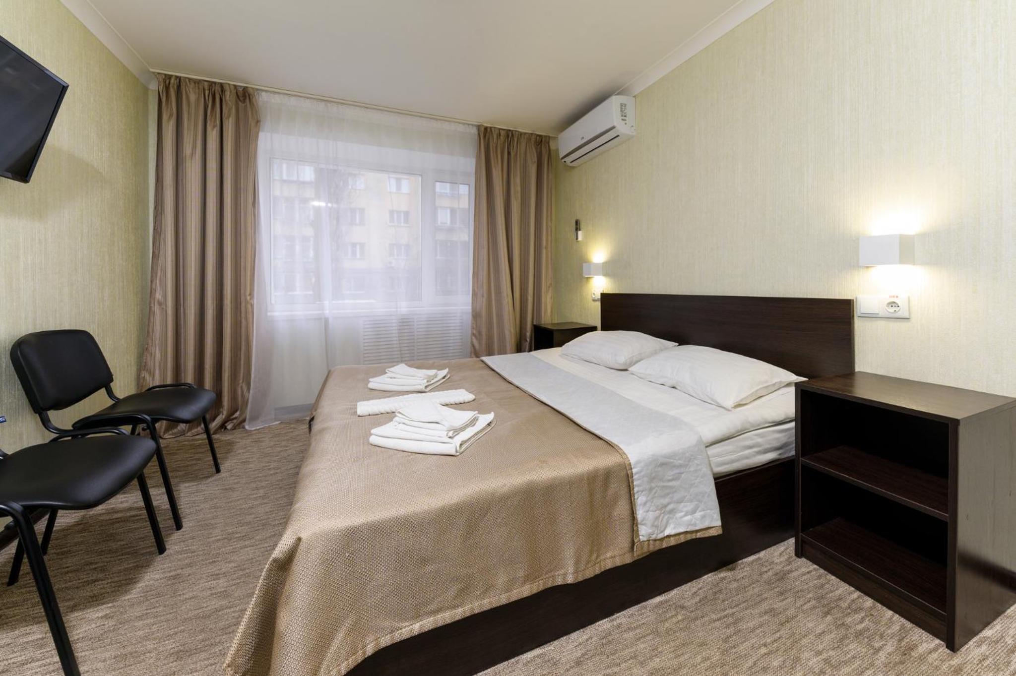 Choose from a variety of rooms at Nivki Hotel, including economy, standard, and comfort options. Enjoy modern amenities like cable TV, free Wi-Fi, and in-room coffee and tea facilities for a relaxing stay.