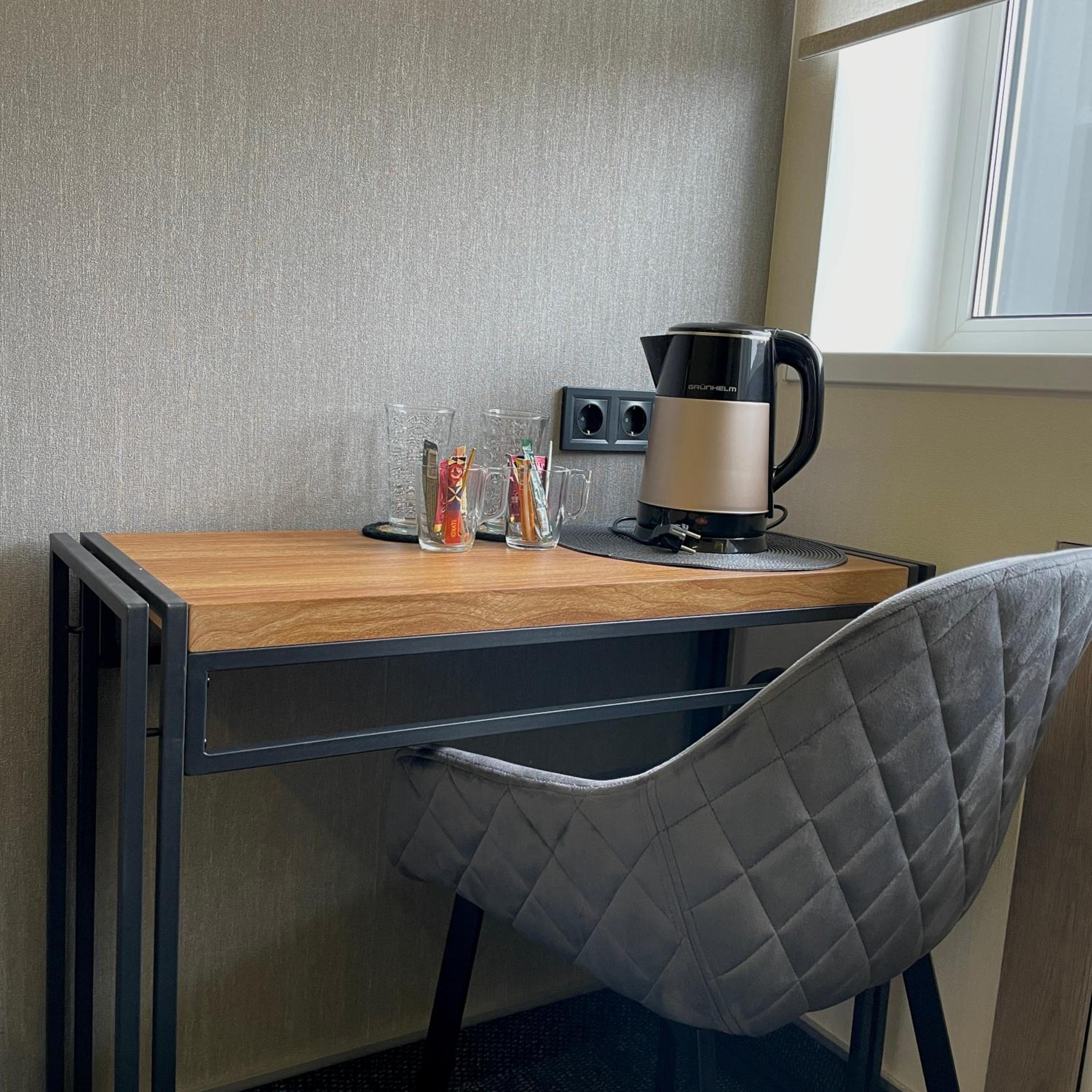 В номері немає мікрохвильовки , також не в усіх напівлюксах є бойлер , в тому якому ми проживали не було , на рецепції також немає гарячої води і мікрохвильової, тобто якщо при видключені світла захочете розігріти поїсти , то не вийде . Є поруч ресторан , але обслуговування ресторана тобто доставка їжі в номер не привітна . На рецепції також не дуже привітно зустрічають , єдине з персоналу ті хто гарно виконує роботу це покоївки , дуже привітні .