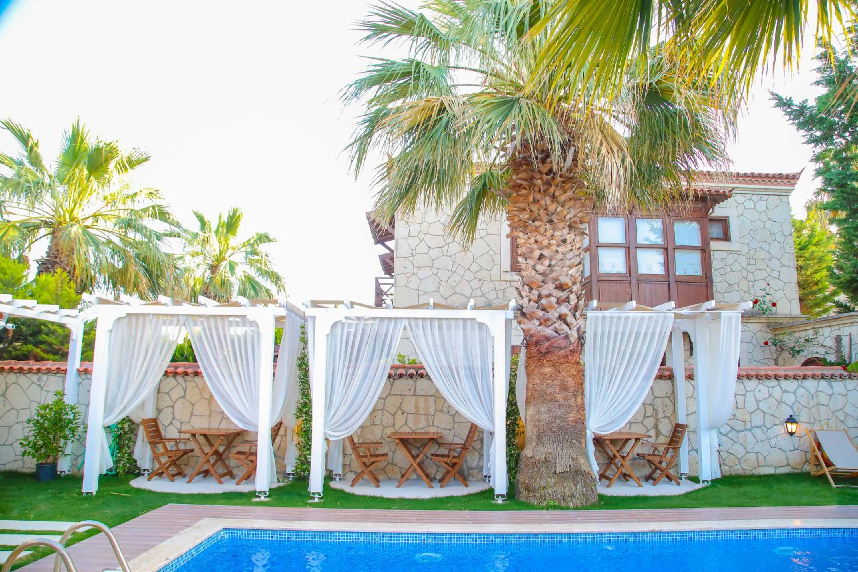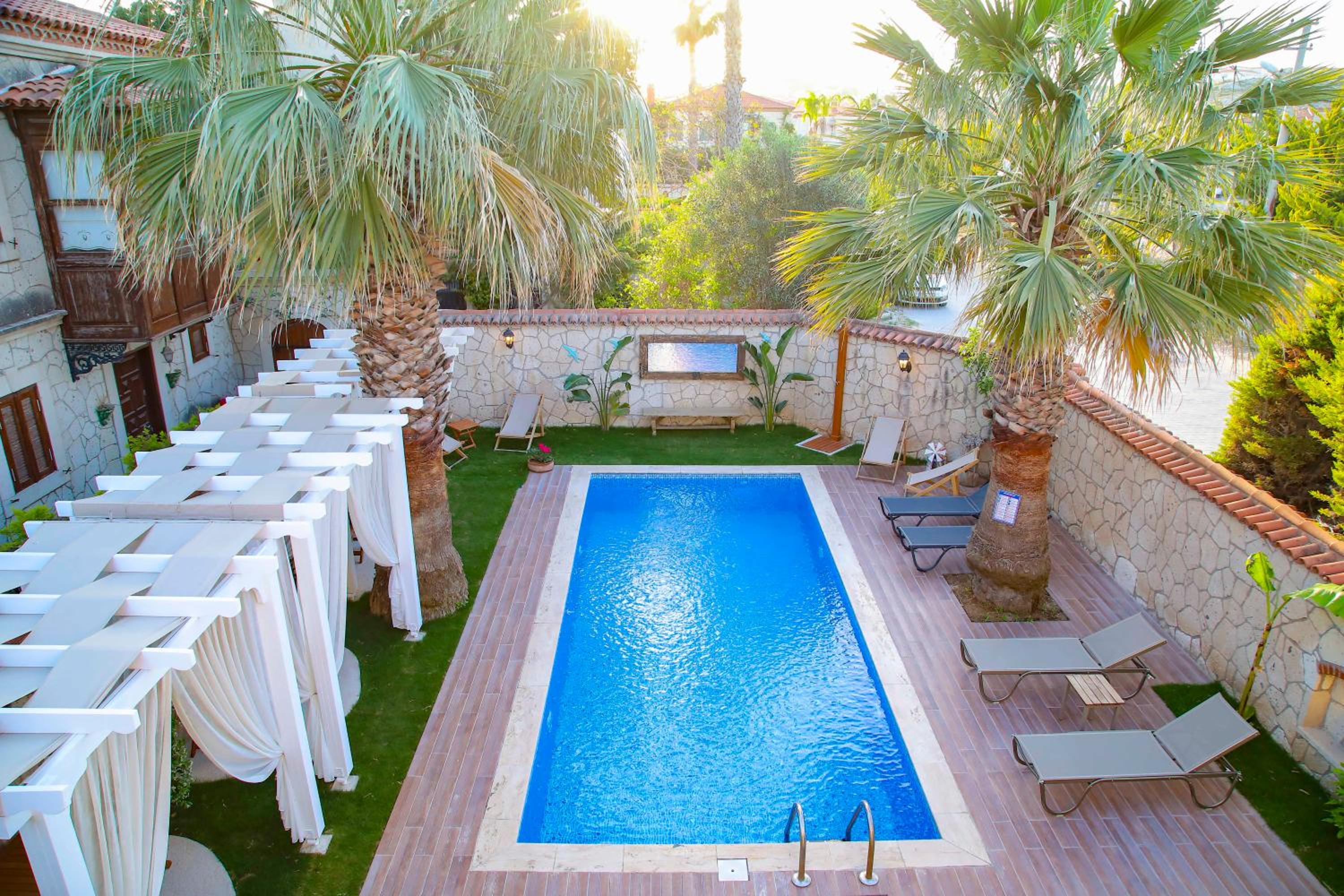 Our stay at this hotel was outstanding, with all expectations met. The room was beautifully appointed, breakfast was delicious each morning, and the desserts and tea served in the afternoon were delightful. The pool area was lovely, and parking was convenient. The hotel's location, about 8 minites walk to downtown (çarşı), was ideal. The service provided by Bedirhan and Emanuel, two exceptional young staff members, was outstanding. Their daily smiles created a warm and welcoming atmosphere. We also appreciated the opportunity to meet the chef and the hotel's owners, who were so nice and welcomingad well. We highly recommend this hotel and would be pleased to return. Thank you for a wonderful stay!!