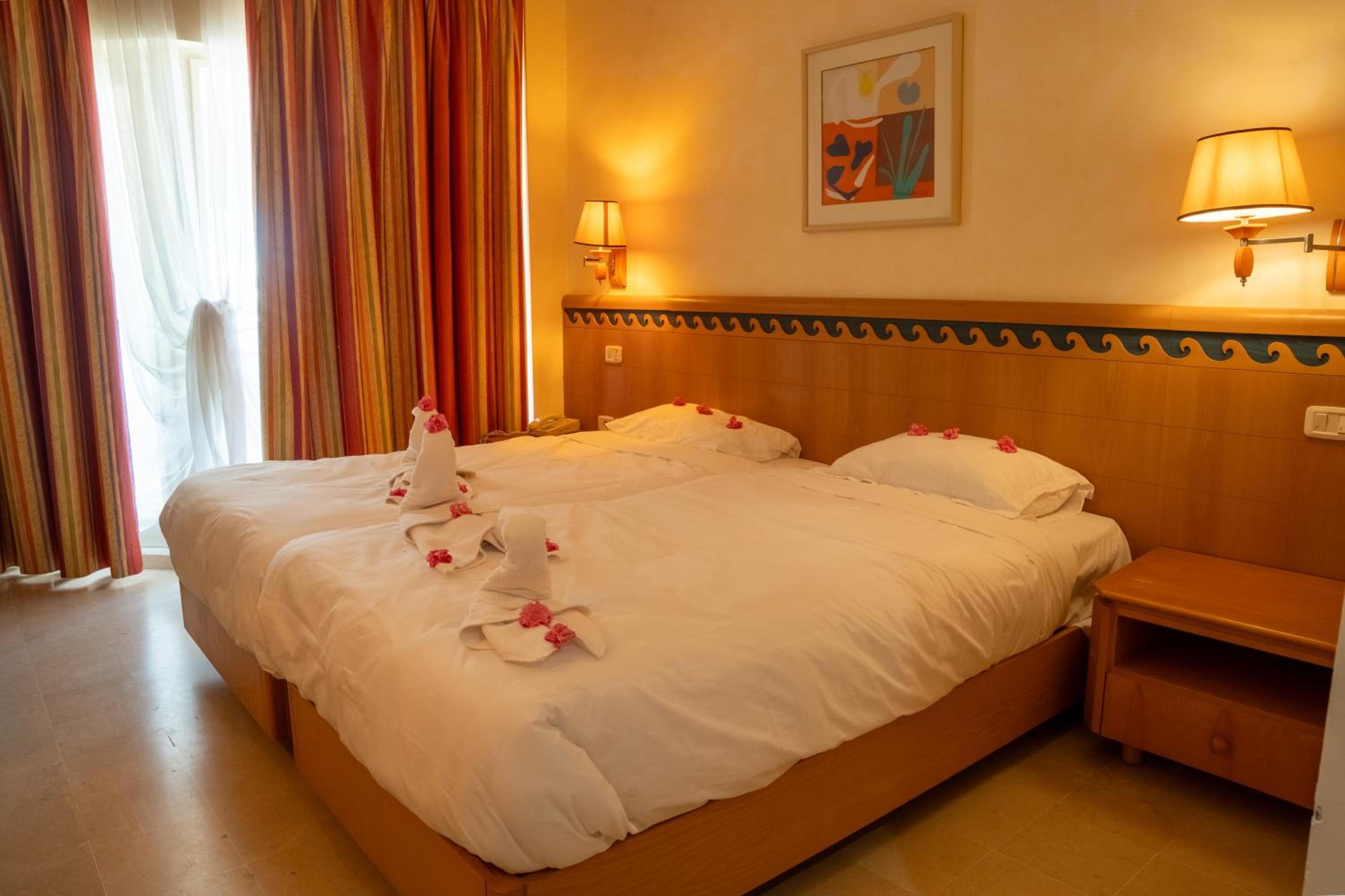 Красивые ,но нереальные фотографии.Когда -то в прошлом столетии отель был отличный. Но, по-видимому,бывший владелец выжал из него всё,что возможно,и продал. А новый владелец снова открыл отель не сделав ремонт. Работает только главный корпус Всё остальное ,как после апокалипсиса.В каждом номере жильцы жаловались на поломки. Персонал улыбается,но еле шевелится). Еду и воду будто бы выпрашиваете. Положат вам один блин и откровенно удивляются,если ещё попросите . В начале октября бассейны очень холодные. Никто не купался( даже в крытом). Ну и невыносимое колличество мух в местах питания. Когда на вас сядет одновременно штук 10,не реагировать невозможно. Пища очень тяжёлая. Много фастфуда, острых блюд. Десерты красивые,но от крема очень болел желудок. Отдых спасло море и песок !!!