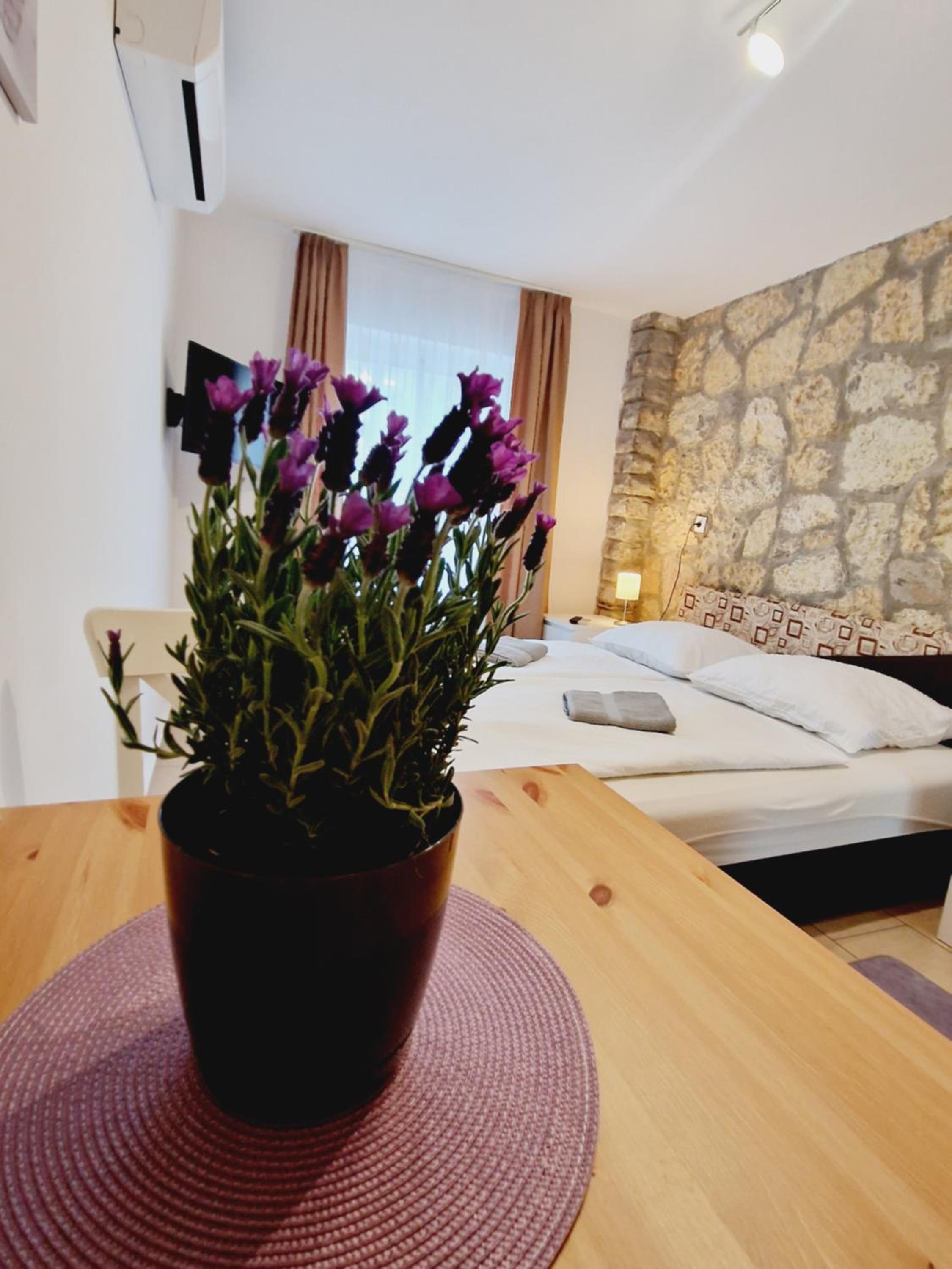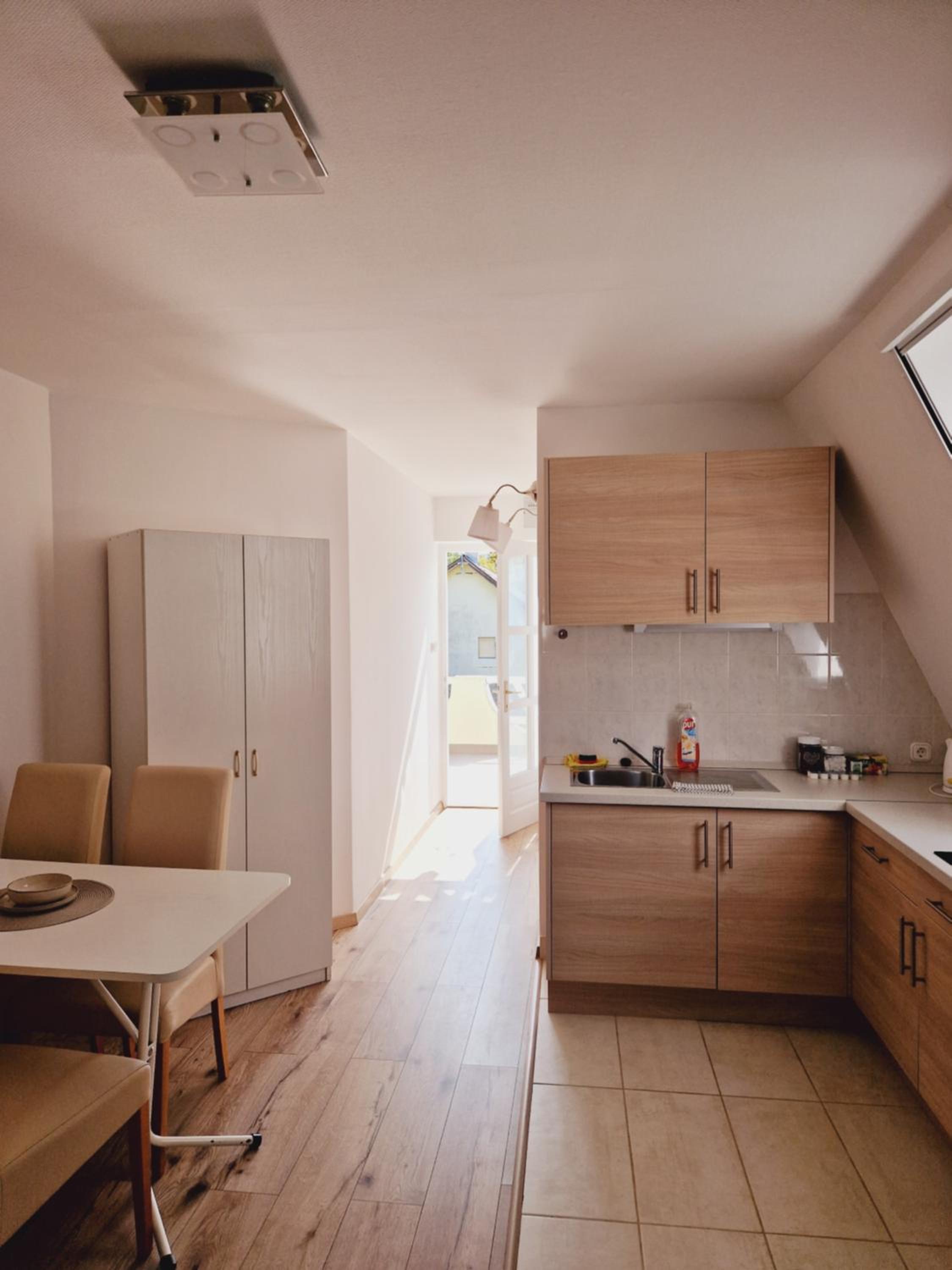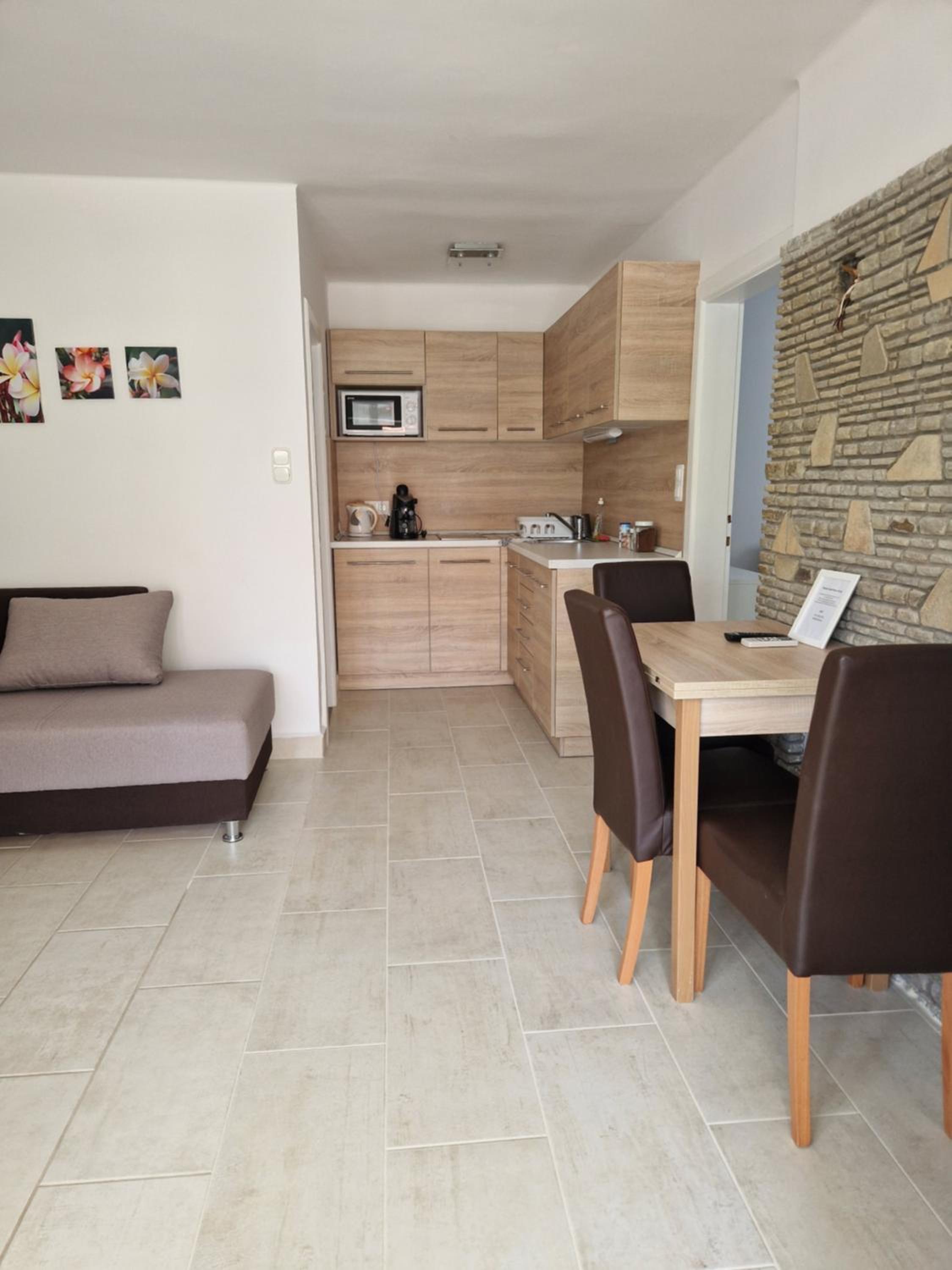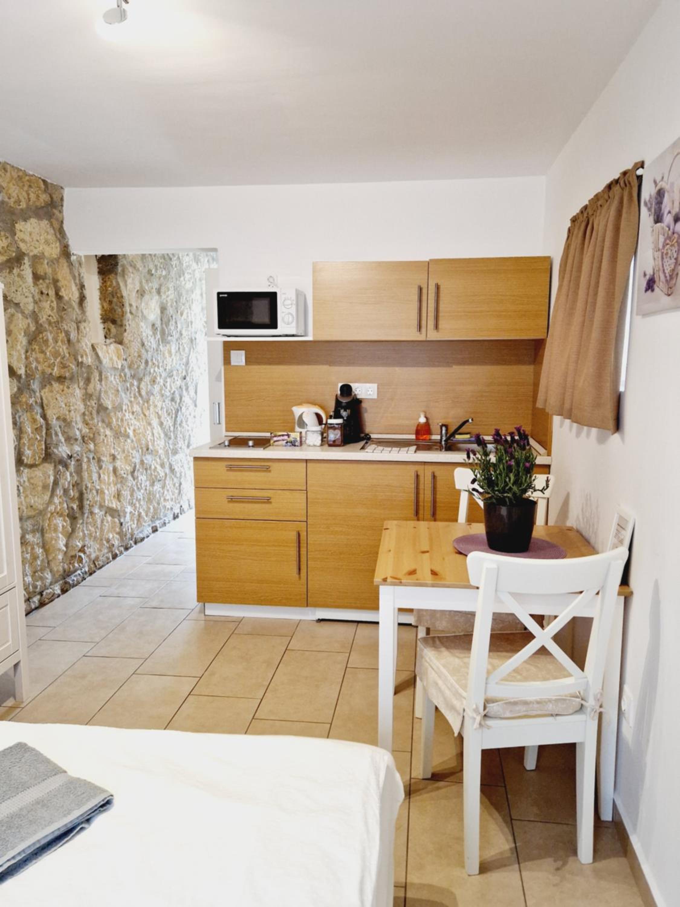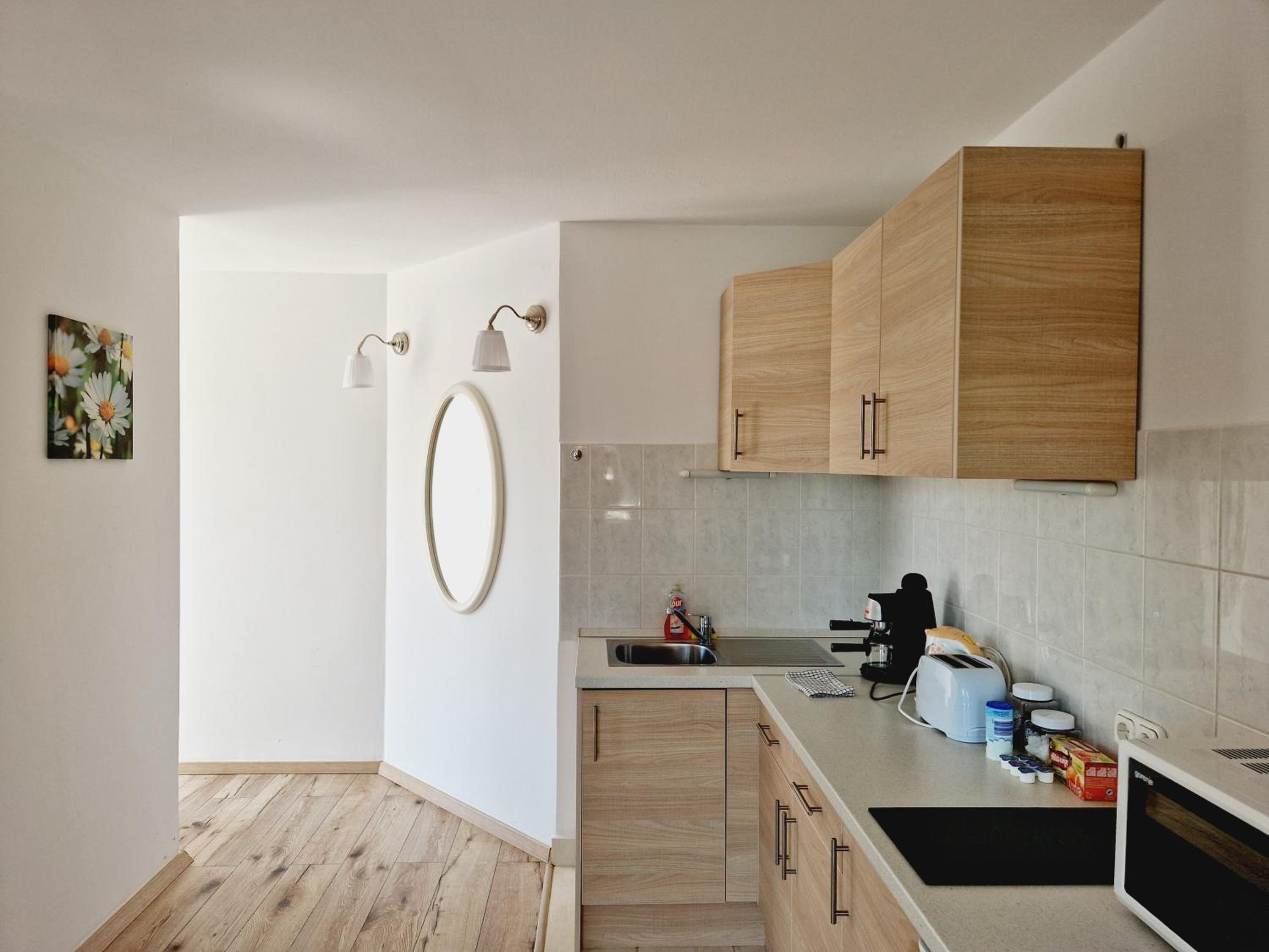 Although the studio is great, it has a few minor shortcomings that the hosts could easily fix. There are reading lights available, but unfortunately they don’t serve their purpose—one of them didn’t even work. There was only one large shallow plate, and just one small towel for hands and face (even though there were two of us). There are no towel hooks or racks, so towels have to be hung on chairs or other improvised spots. There was a sewage smell coming from the shower, which was quite unpleasant. The bathroom window doesn’t have a mosquito screen, so it can’t really be opened for ventilation. Although the kitchen is well equipped, it’s missing at least a ladle. The apartment is quite small, but that didn’t bother us. From the photos, it’s not entirely clear what you’re getting, as there are four apartments in the house and the images are mixed together. Despite all this, the stay was very pleasant, and with a few small improvements, I would have rated it a 10.