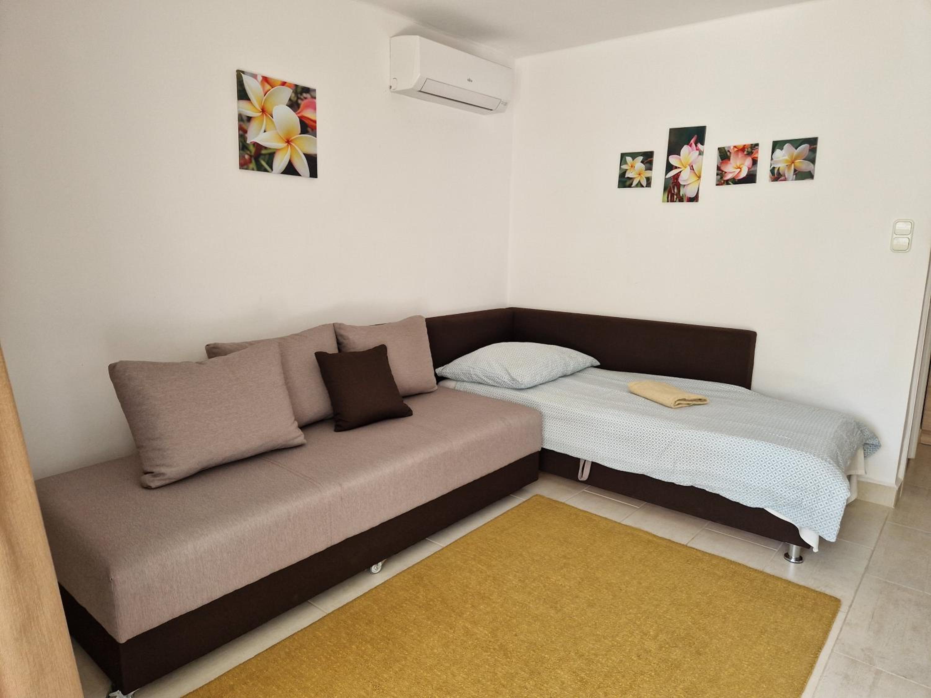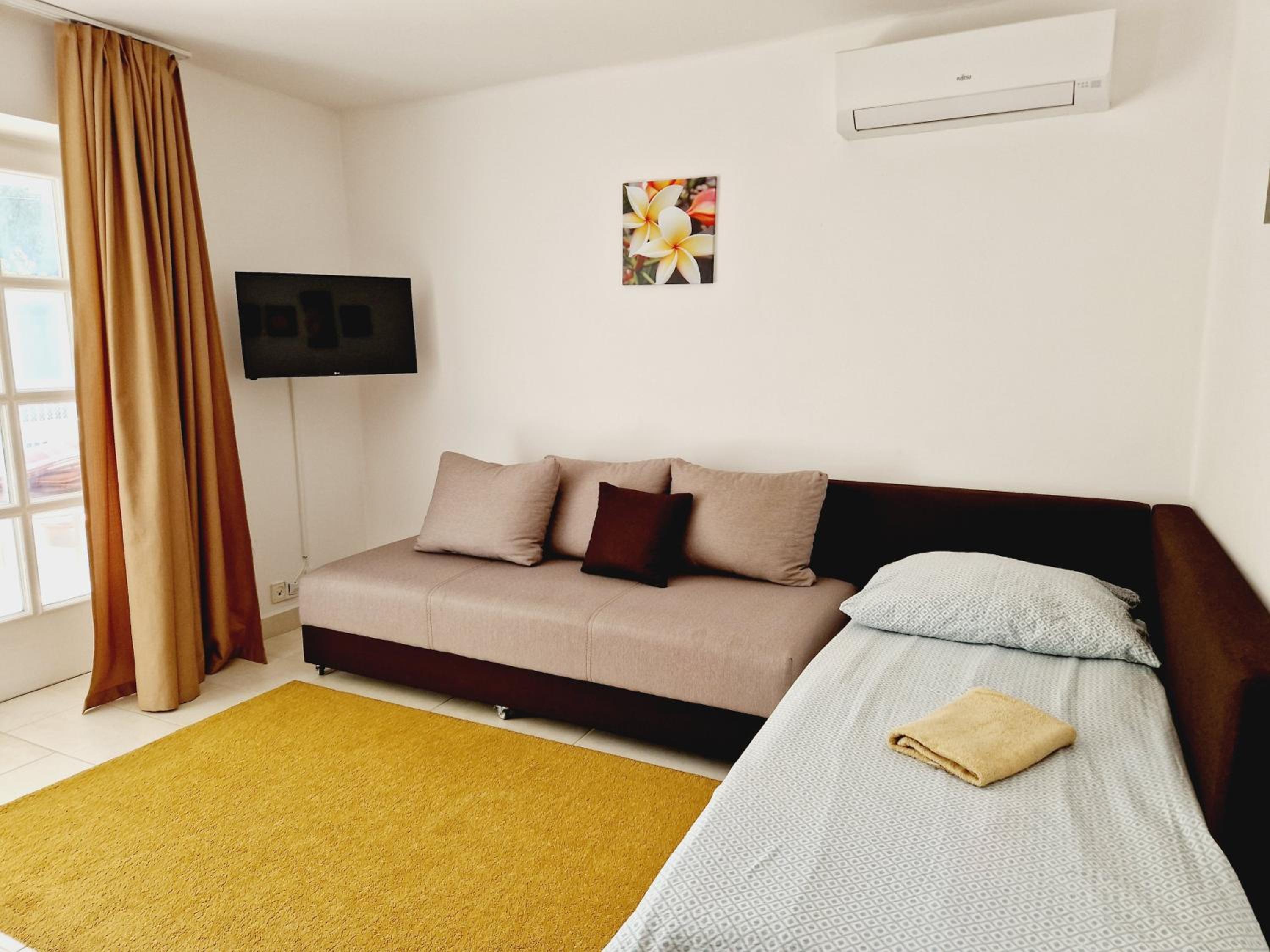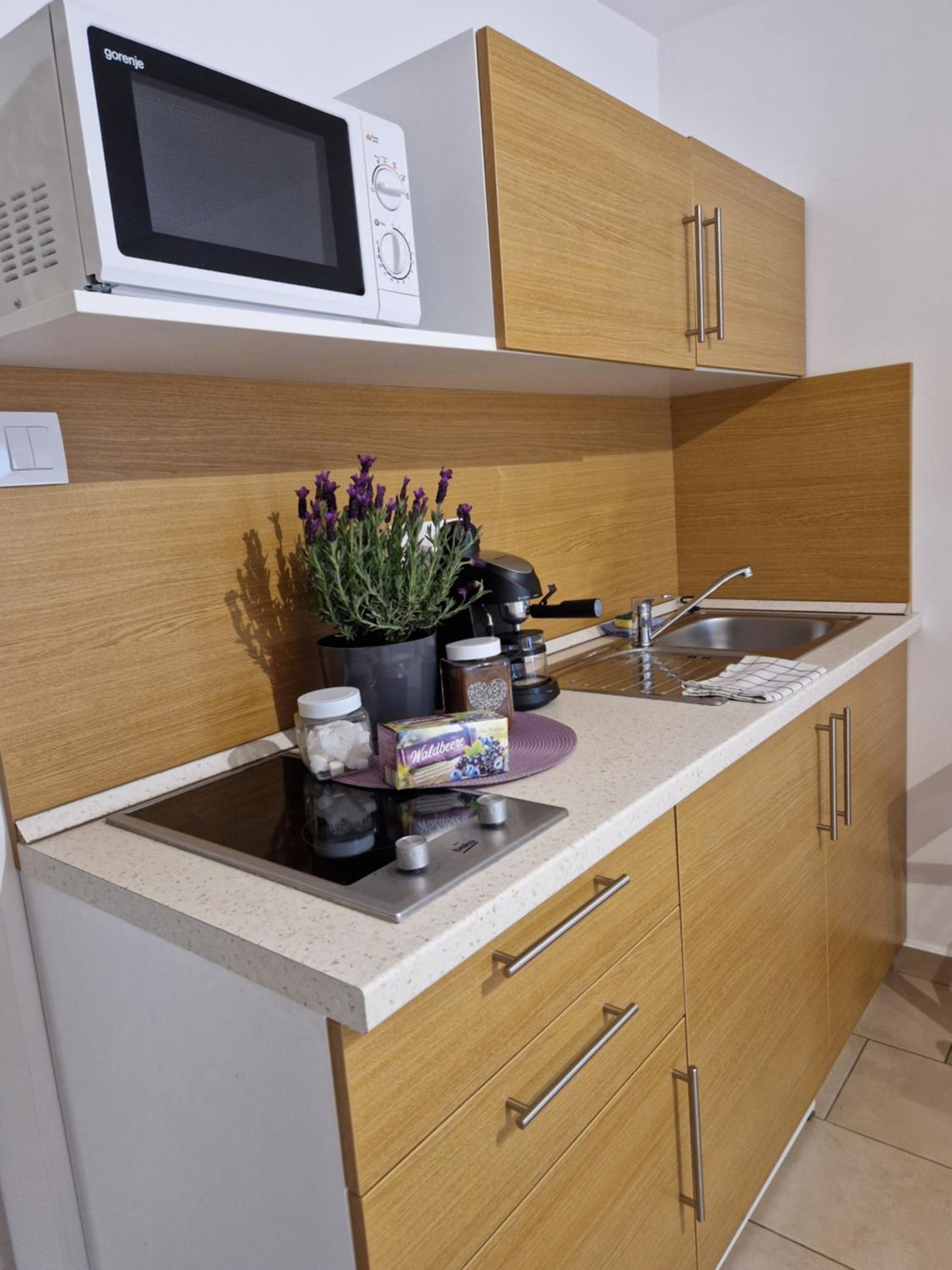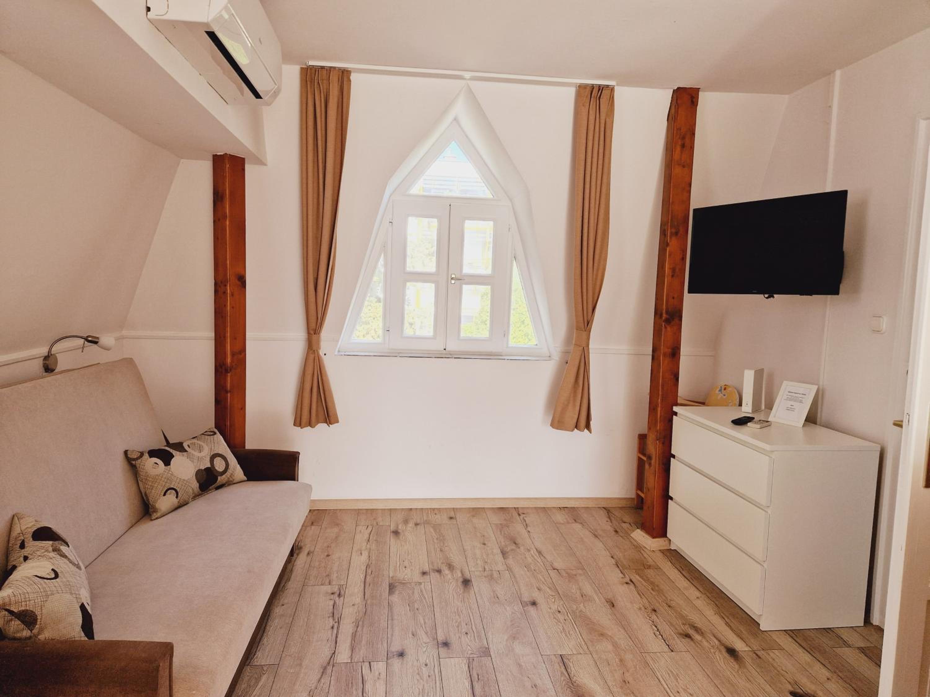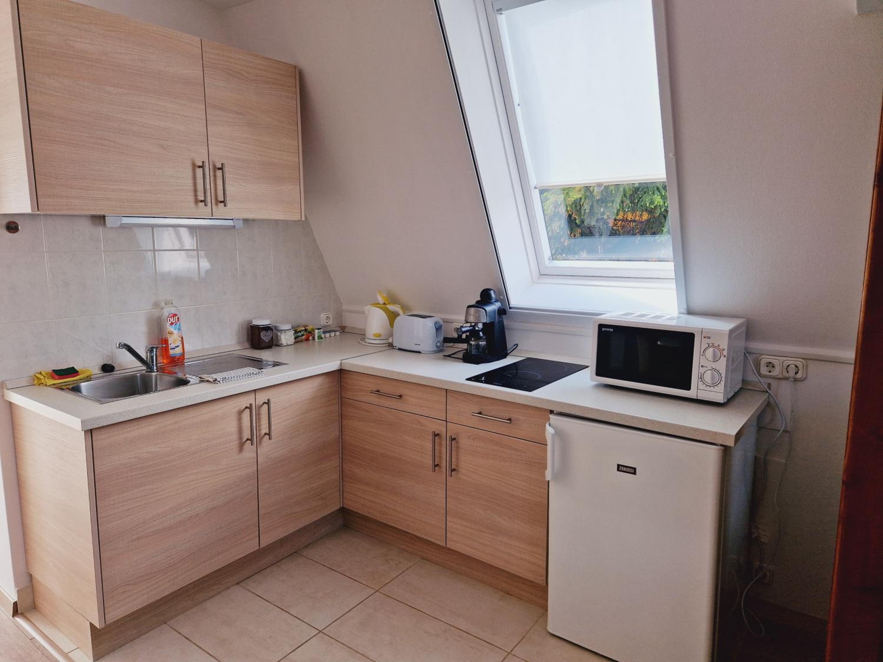 Although the studio is great, it has a few minor shortcomings that the hosts could easily fix. There are reading lights available, but unfortunately they don’t serve their purpose—one of them didn’t even work. There was only one large shallow plate, and just one small towel for hands and face (even though there were two of us). There are no towel hooks or racks, so towels have to be hung on chairs or other improvised spots. There was a sewage smell coming from the shower, which was quite unpleasant. The bathroom window doesn’t have a mosquito screen, so it can’t really be opened for ventilation. Although the kitchen is well equipped, it’s missing at least a ladle. The apartment is quite small, but that didn’t bother us. From the photos, it’s not entirely clear what you’re getting, as there are four apartments in the house and the images are mixed together. Despite all this, the stay was very pleasant, and with a few small improvements, I would have rated it a 10.