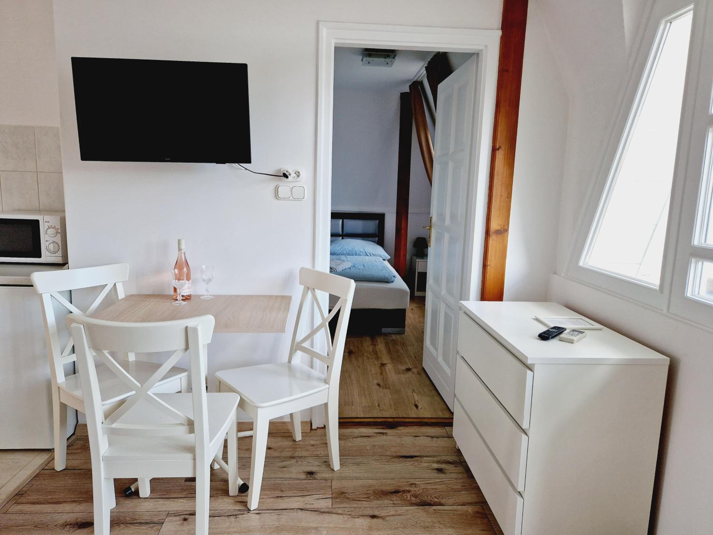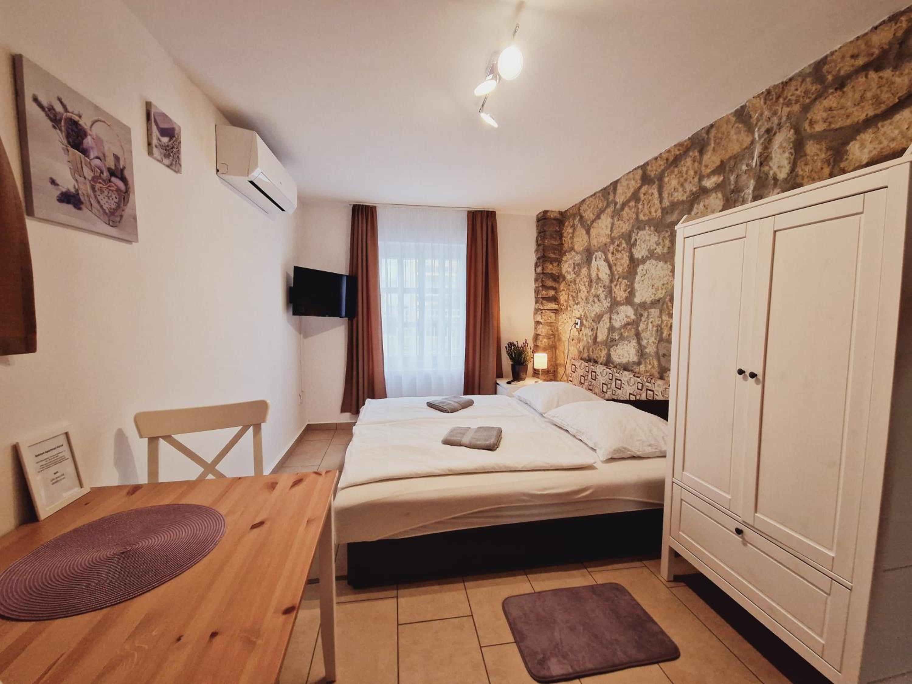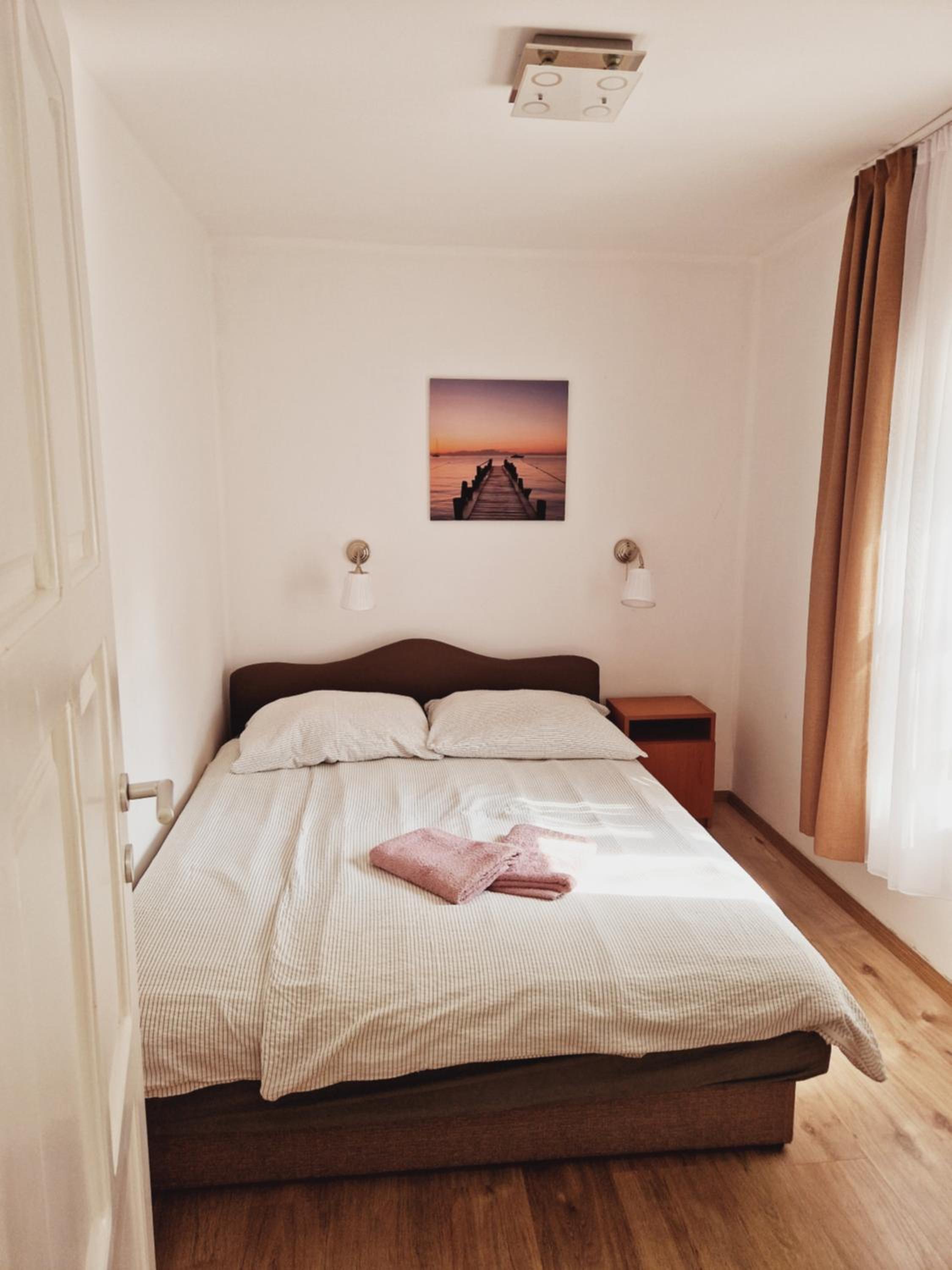 Budući da u smještaju nema grijanja, vlasnica apartmana predložila nam je da odemo u drugi apartman, Balaton Panzió Füred, na što smo pristali. Smještaj je bio čist, posteljina mirisna, u kuhinji je bila dostupna kava i čaj za korištenje. Apartman je dobro opremljen, soba je imala kupaonicu i bila odvojena od kuhinje. Grijanje je na klima uređaj i radi odlično. Bilo je tople vode u tuš kabini. Također, apartman ima i televizor i sušilo za kosu. Zaista lijepa gesta od vlasnice je bila i da nam je dozvolila da budemo u smještaju dokad želimo, bez točno određenog vremena checkout-a što također iznimno cijenimo. Svaka pohvala za interijer, dvorište i ljubaznost same vlasnice, vjerujem da se vraćamo ponovno!