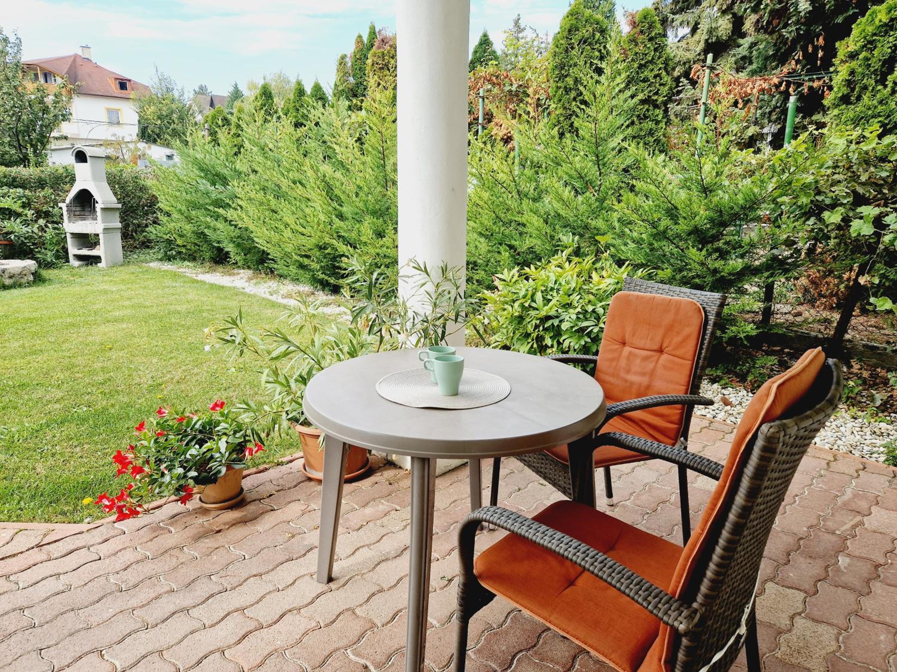We stayed in a studio apartment. The hosts were very friendly and helpful with their advices. The bed was very comfortable. The location was peaceful and pleasant. In front of the house, there is a nice green lawn with the possibility of barbecuing. Soap, shampoo, dishwashing detergent, and a kitchen towel were provided. The internet worked without any problems. The windows have mosquito screens. The kitchen was nice and clean. The studio is bright enough. A TV is available and works, although we didn’t use it. In front of the apartment, there is a plastic table and chairs for enjoying time outside. There is private parking space available inside the fence.