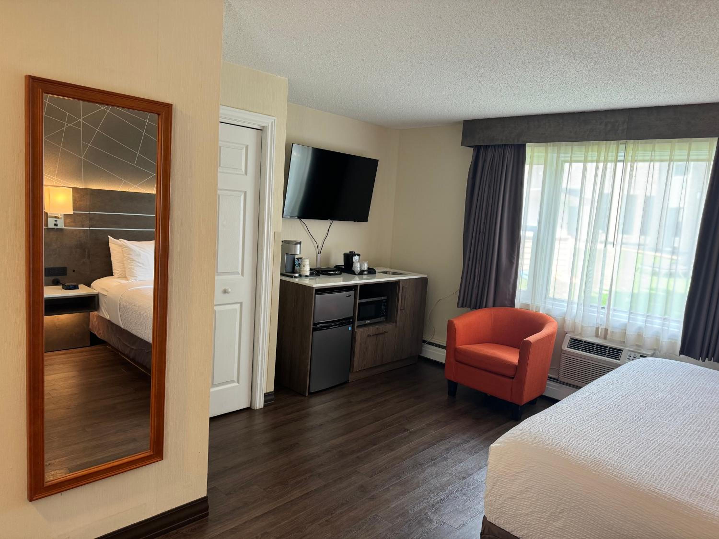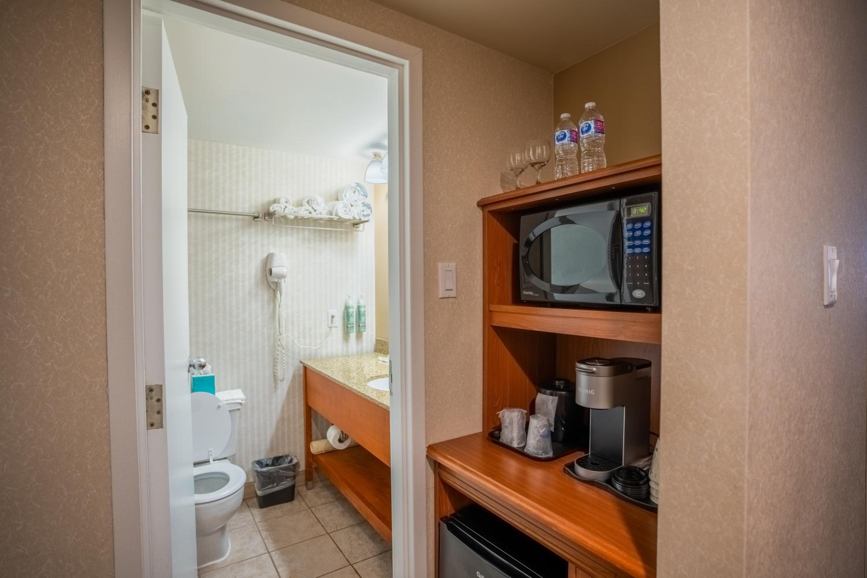 Each room at the hotel is equipped with modern conveniences such as a 42-inch flat-screen TV, microwave, fridge, and coffee maker. Whether you're here for business or leisure, rest assured that your needs are met with an iron, work desk, and free Wi-Fi.