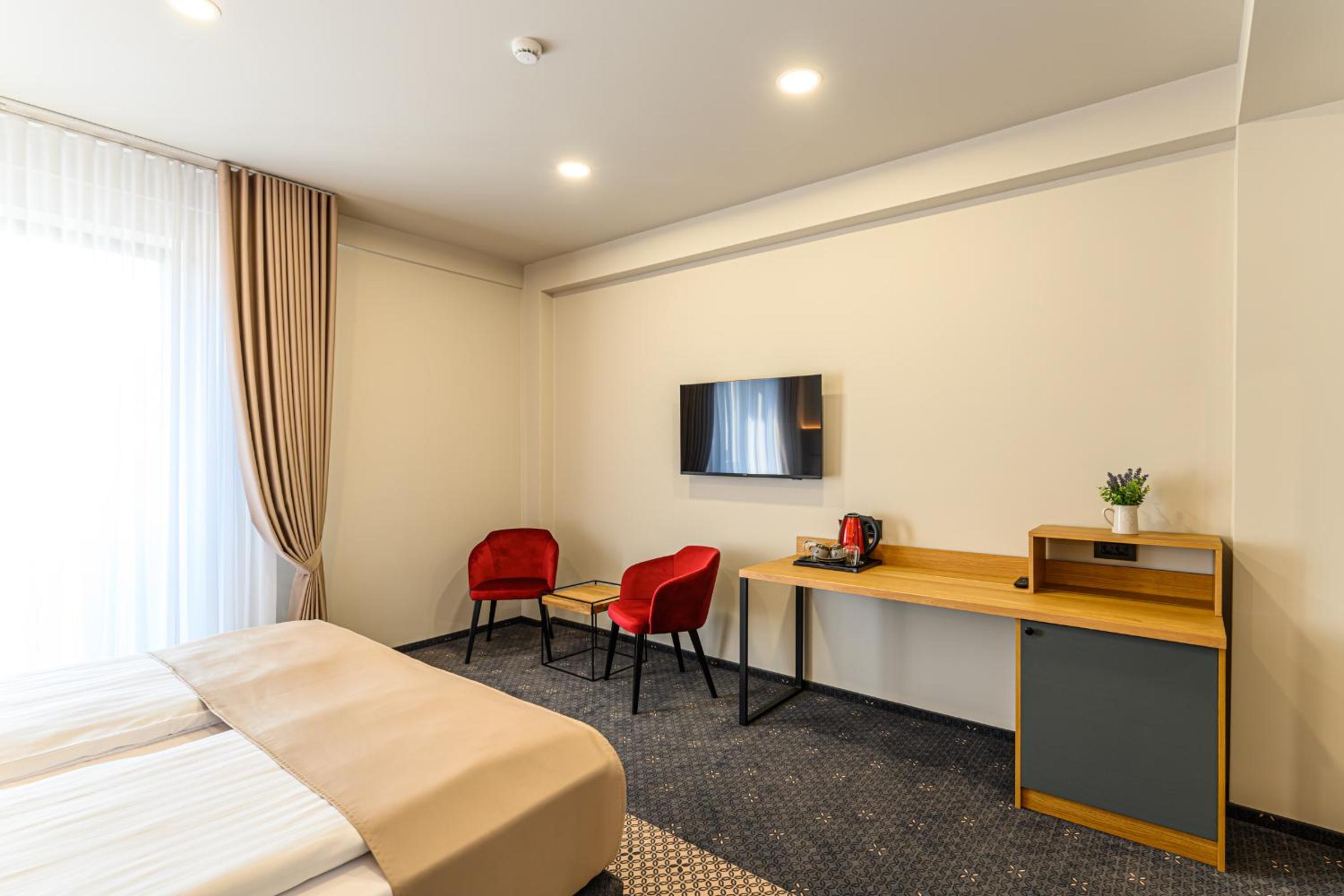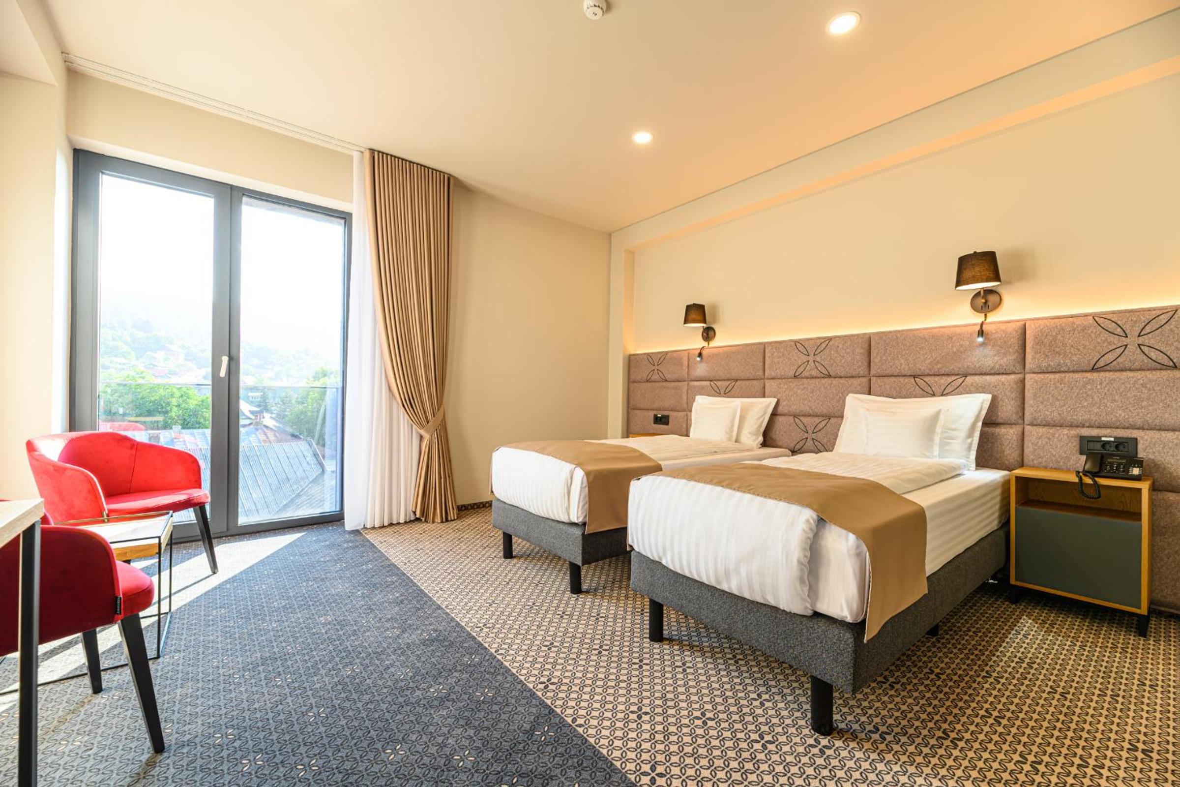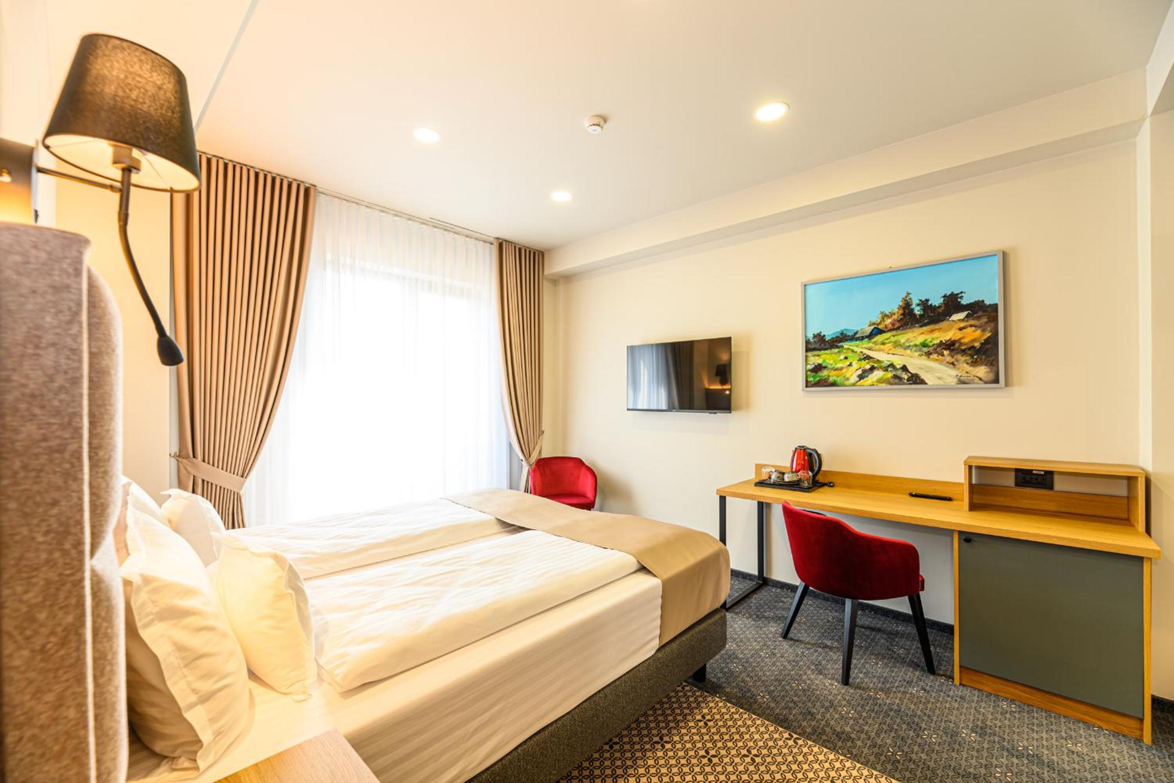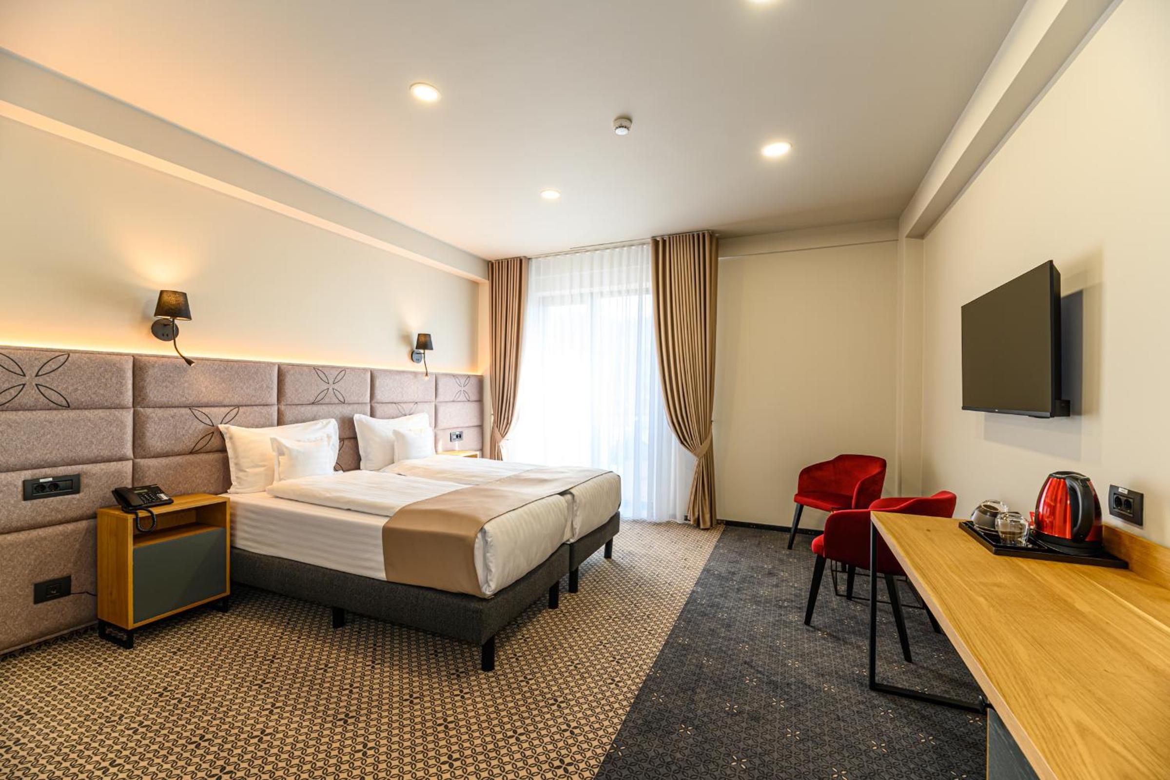 Hotel DUKAT in Gura Humorului offers 4-star accommodation just 6.1 km from Voronet Monastery. The air-conditioned rooms are elegantly furnished with modern amenities including a flat-screen TV and a private bathroom.