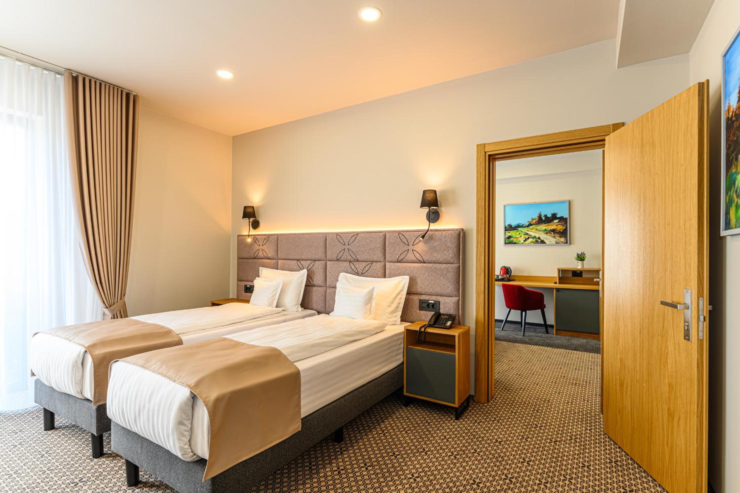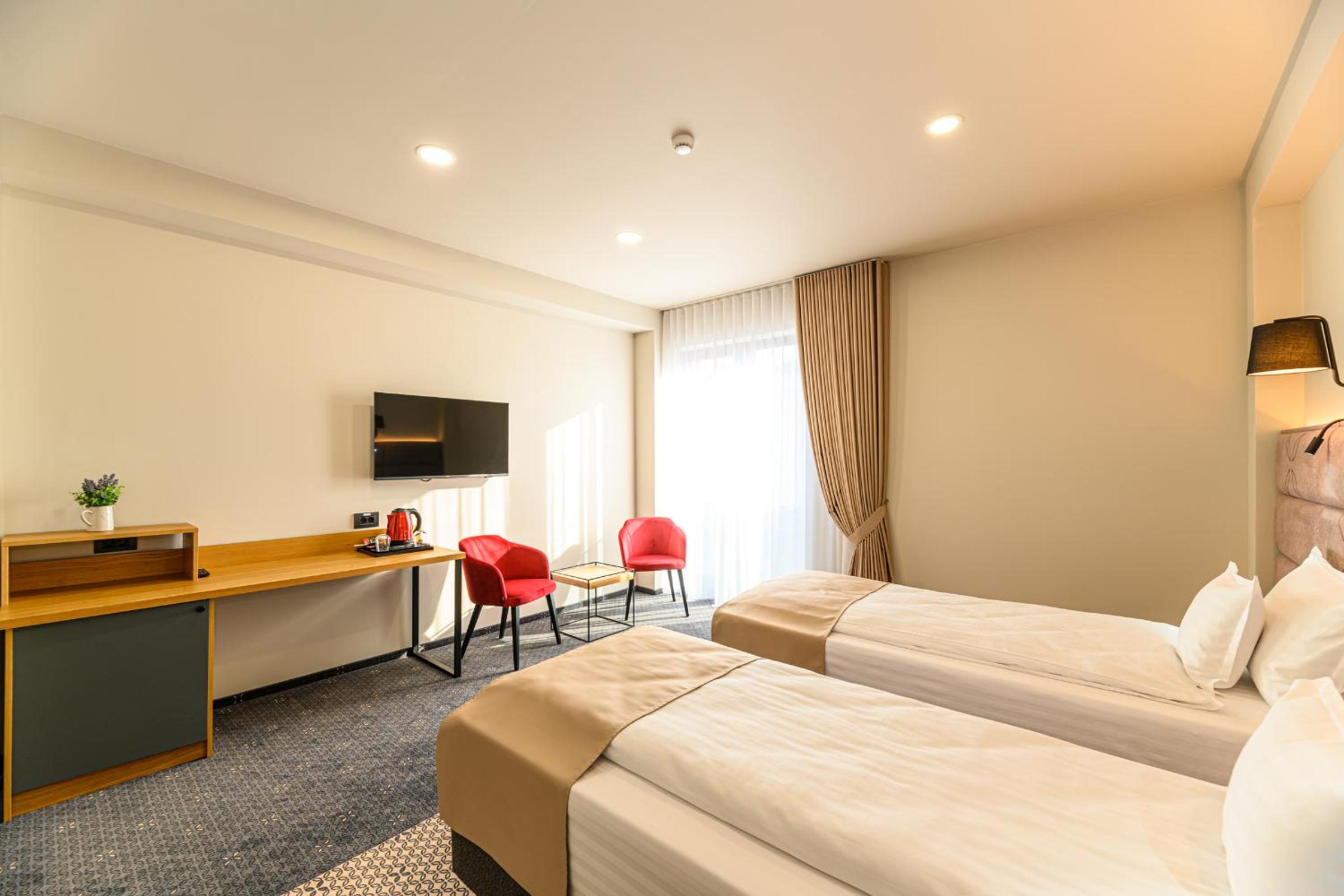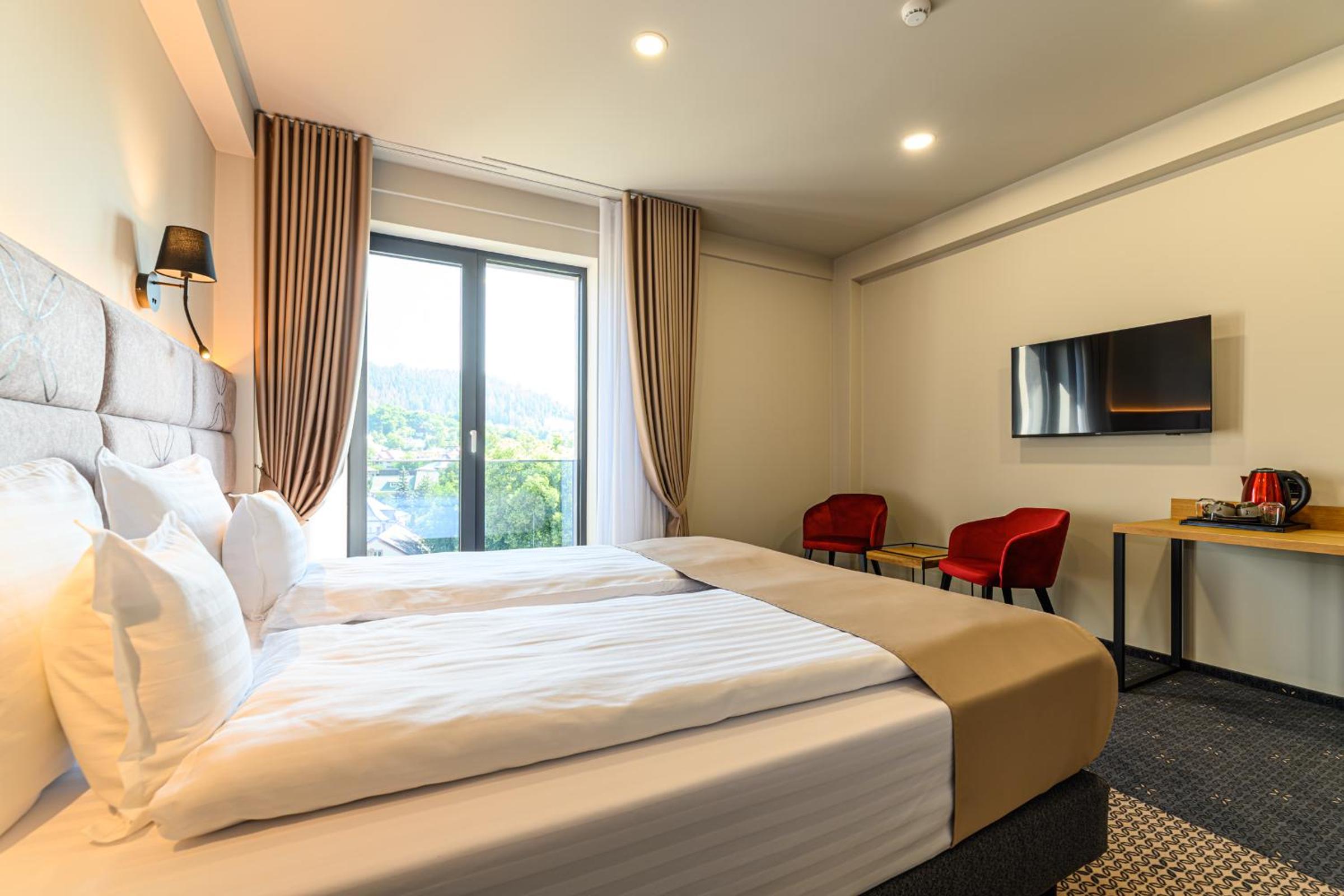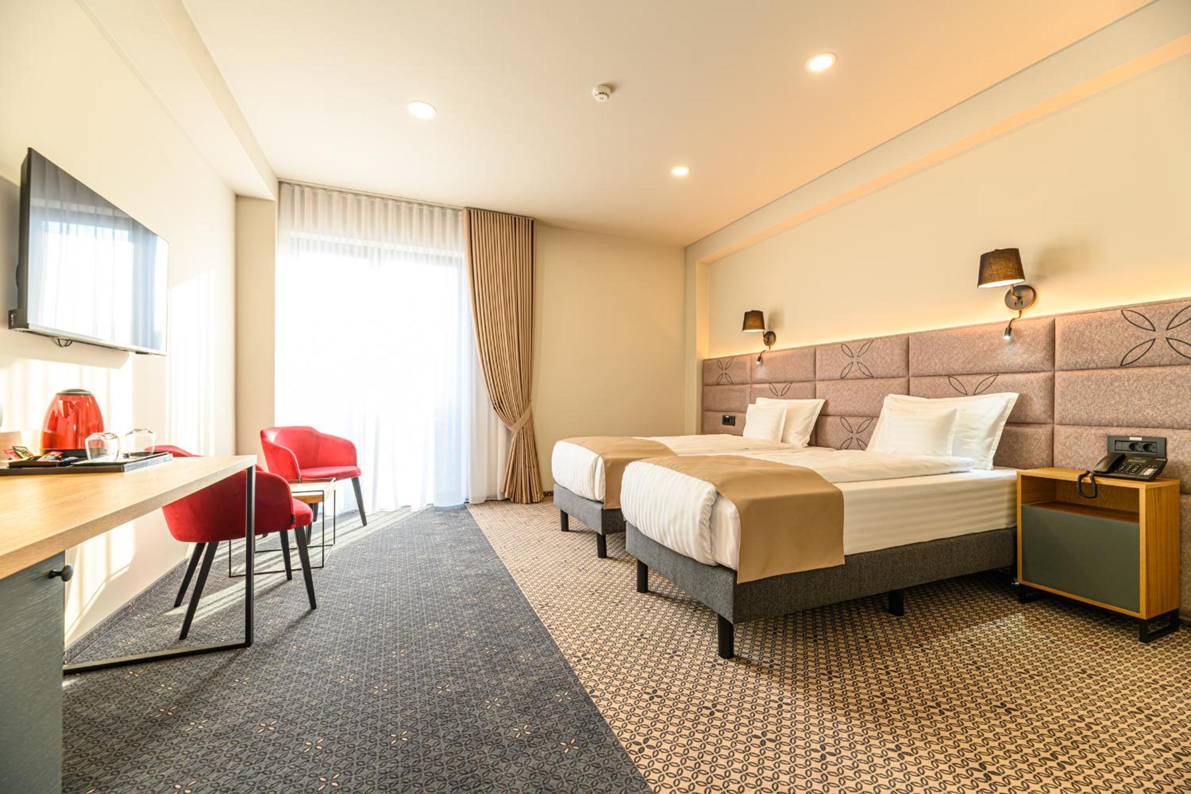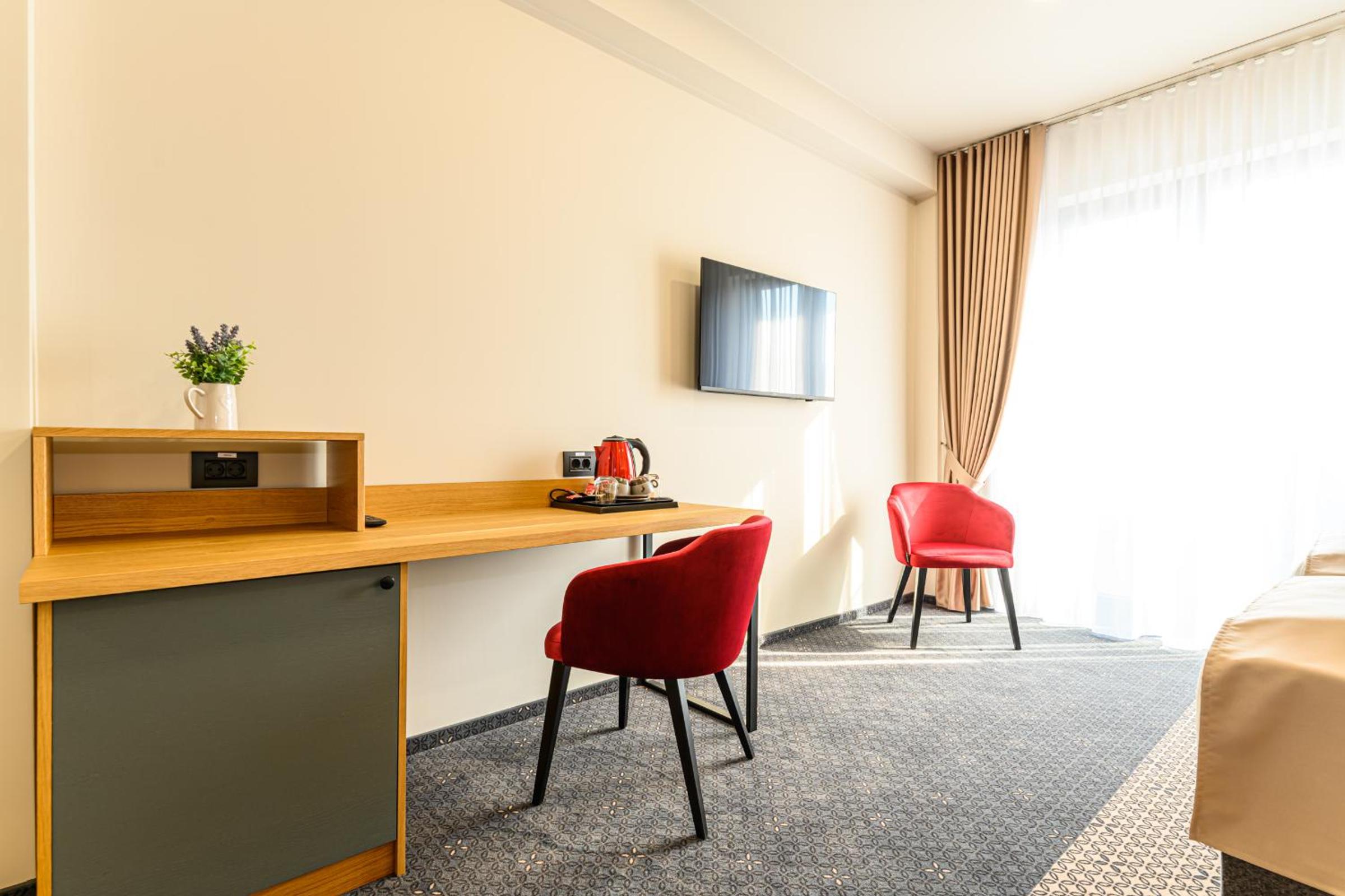 Hotel DUKAT in Gura Humorului offers 4-star accommodation just 6.1 km from Voronet Monastery. The air-conditioned rooms are elegantly furnished with modern amenities including a flat-screen TV and a private bathroom.