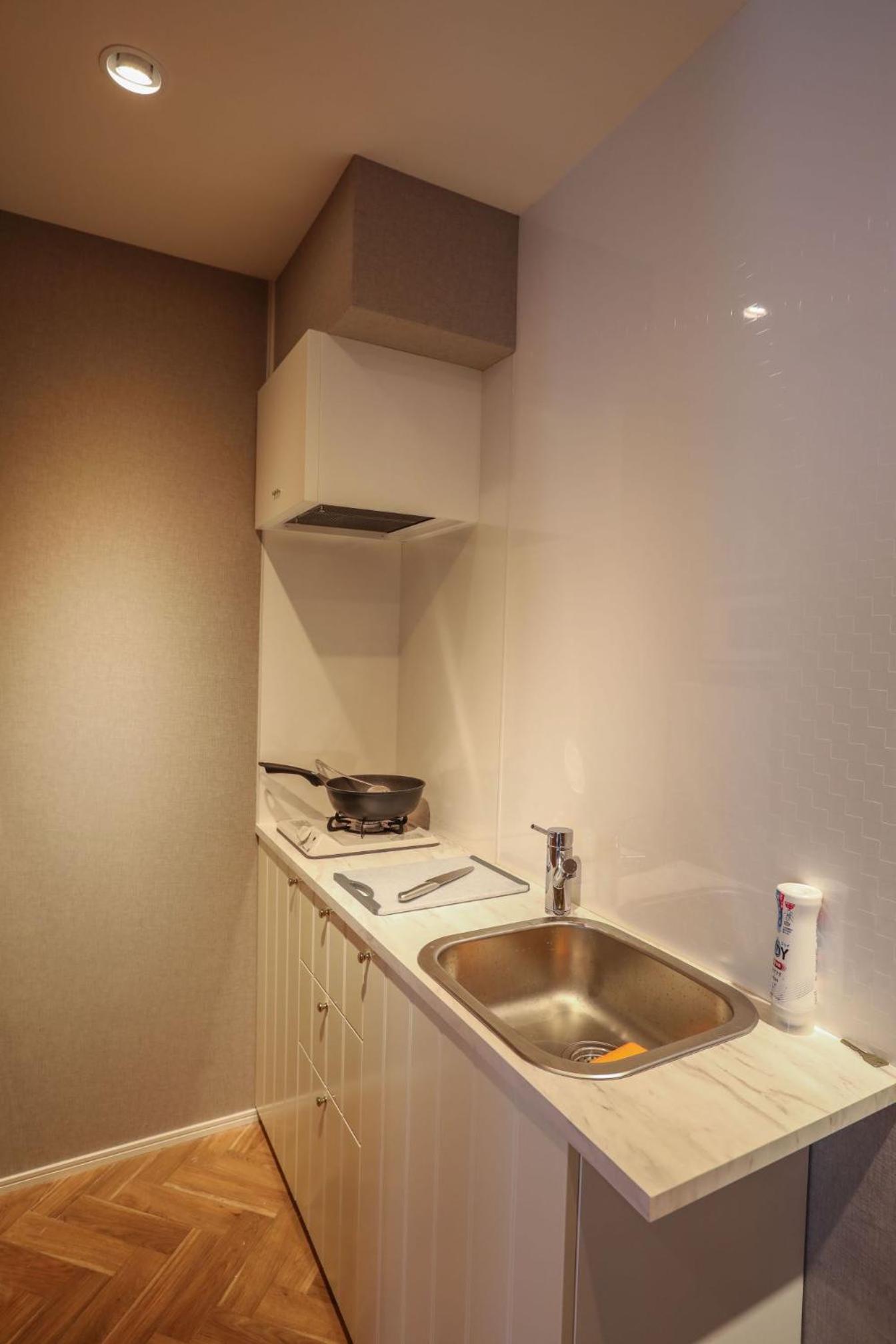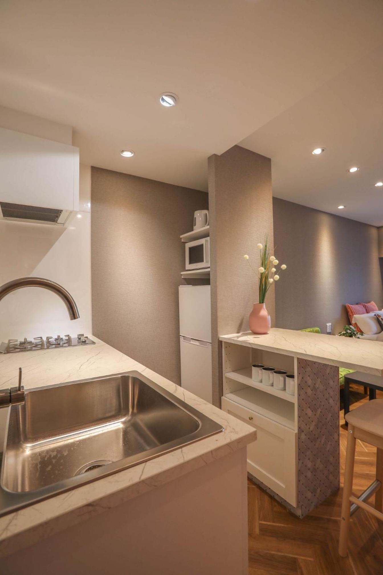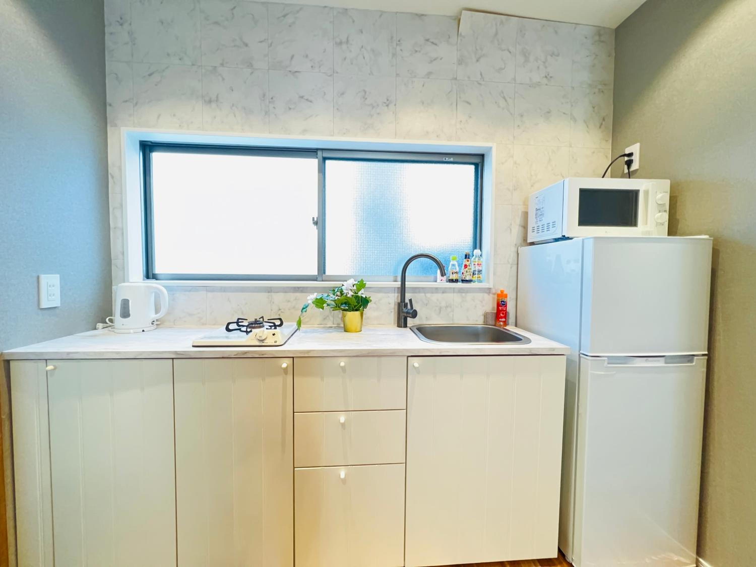 清潔でキッチン用具なども揃っており、冷蔵庫や冷凍庫、フライパンや炊飯器、食器なども揃っていたので料理するのに申し分ありませんでした。 夜は静かでよく眠れました。