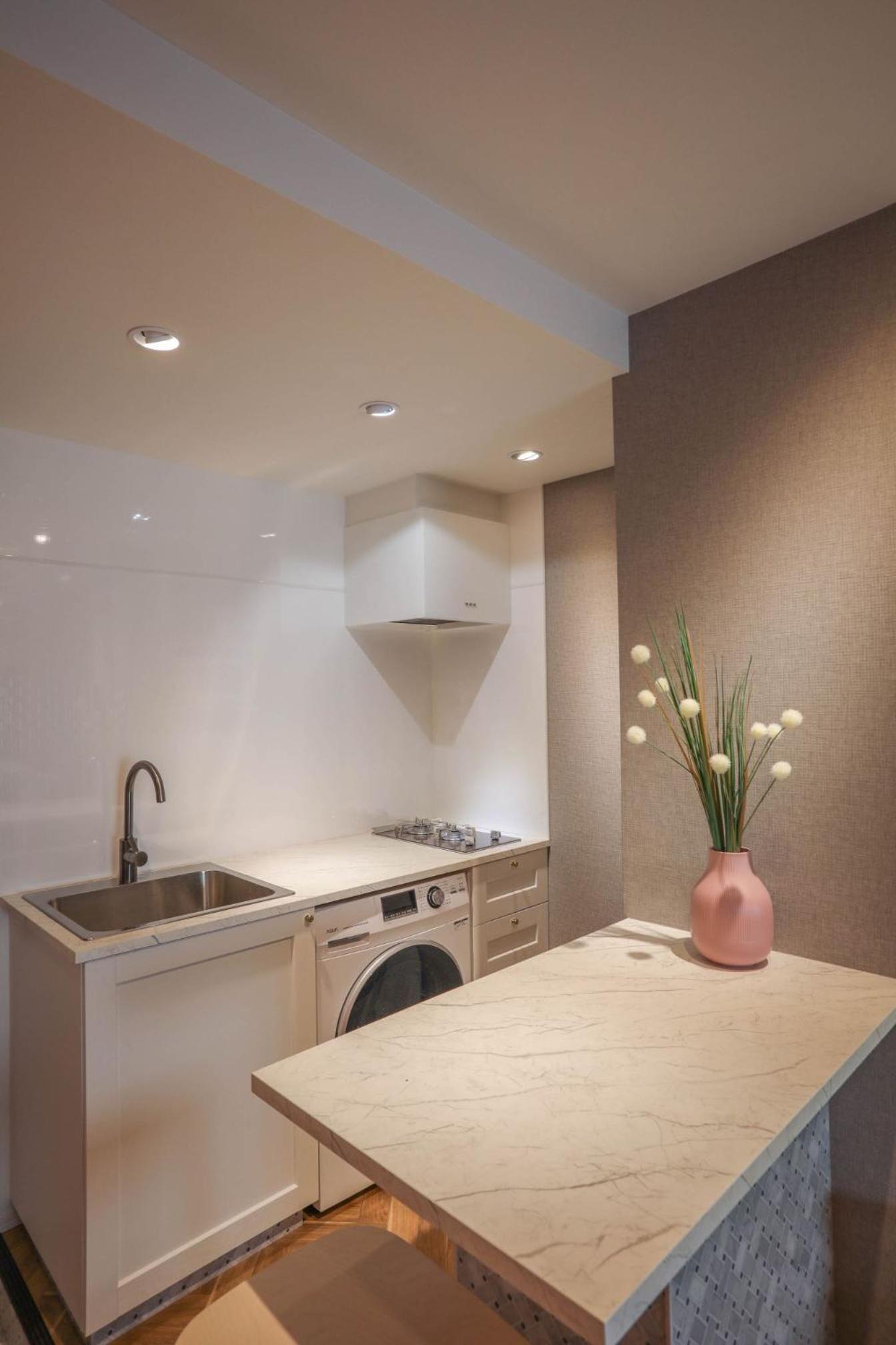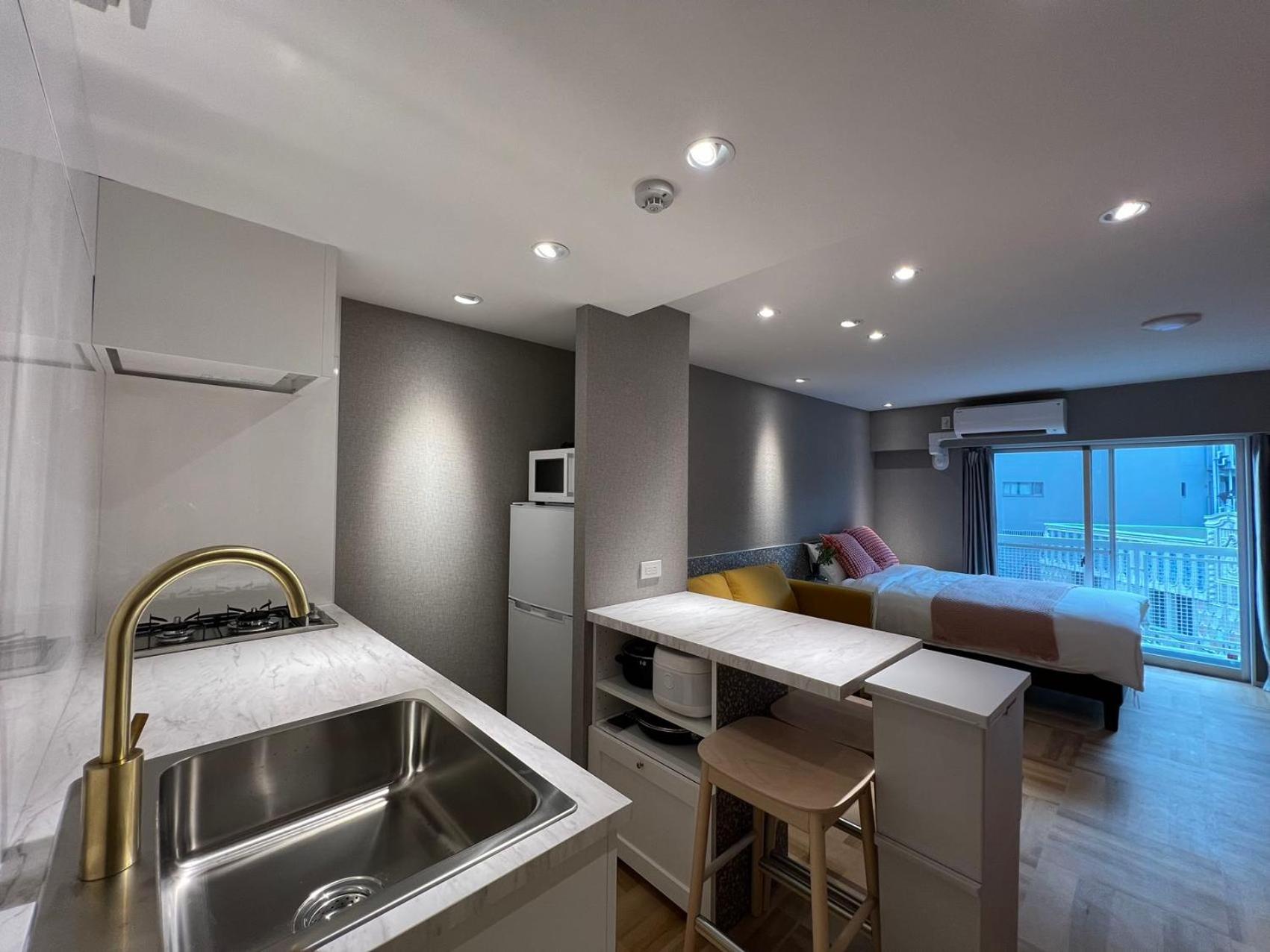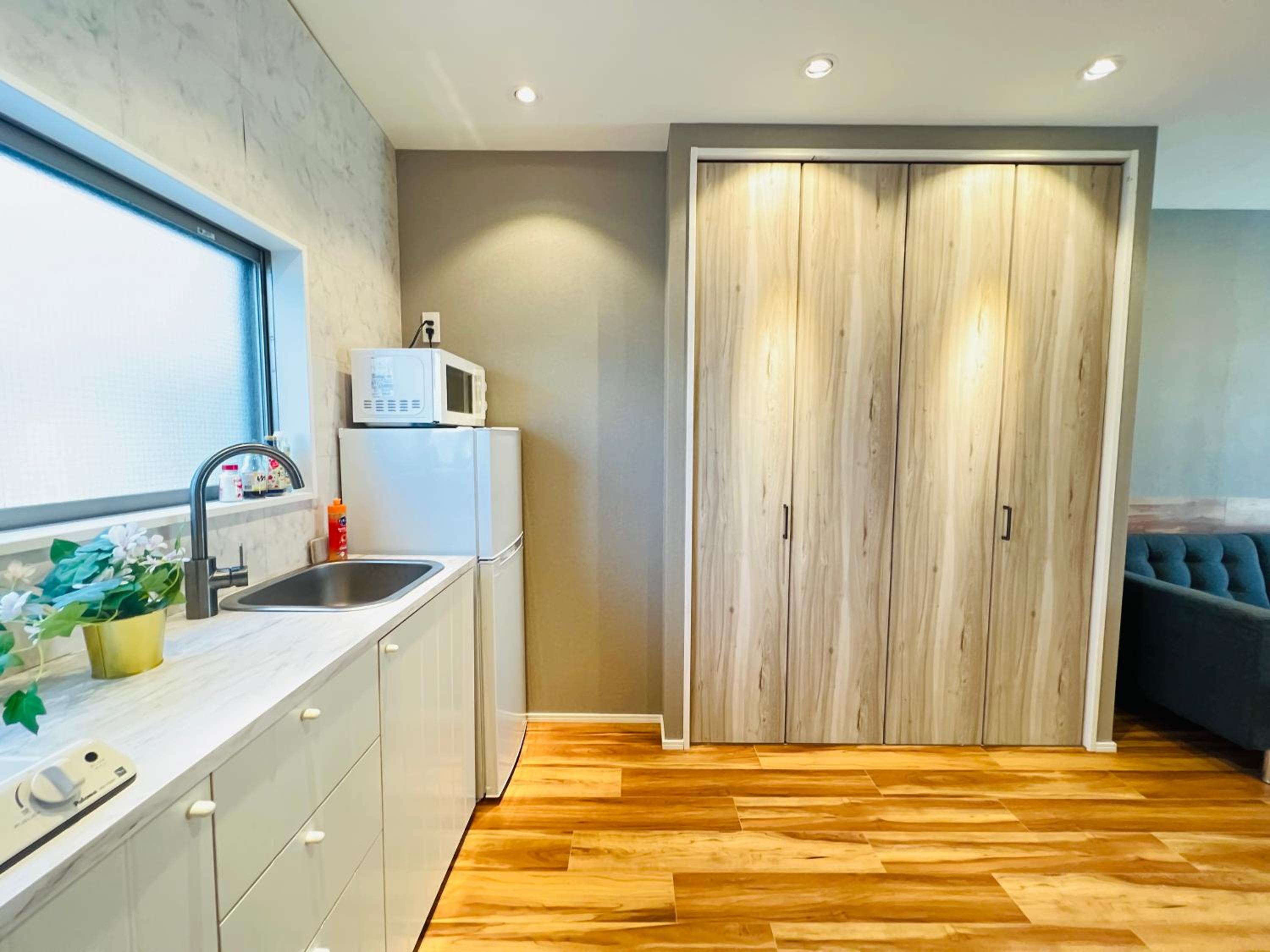 清潔でキッチン用具なども揃っており、冷蔵庫や冷凍庫、フライパンや炊飯器、食器なども揃っていたので料理するのに申し分ありませんでした。 夜は静かでよく眠れました。