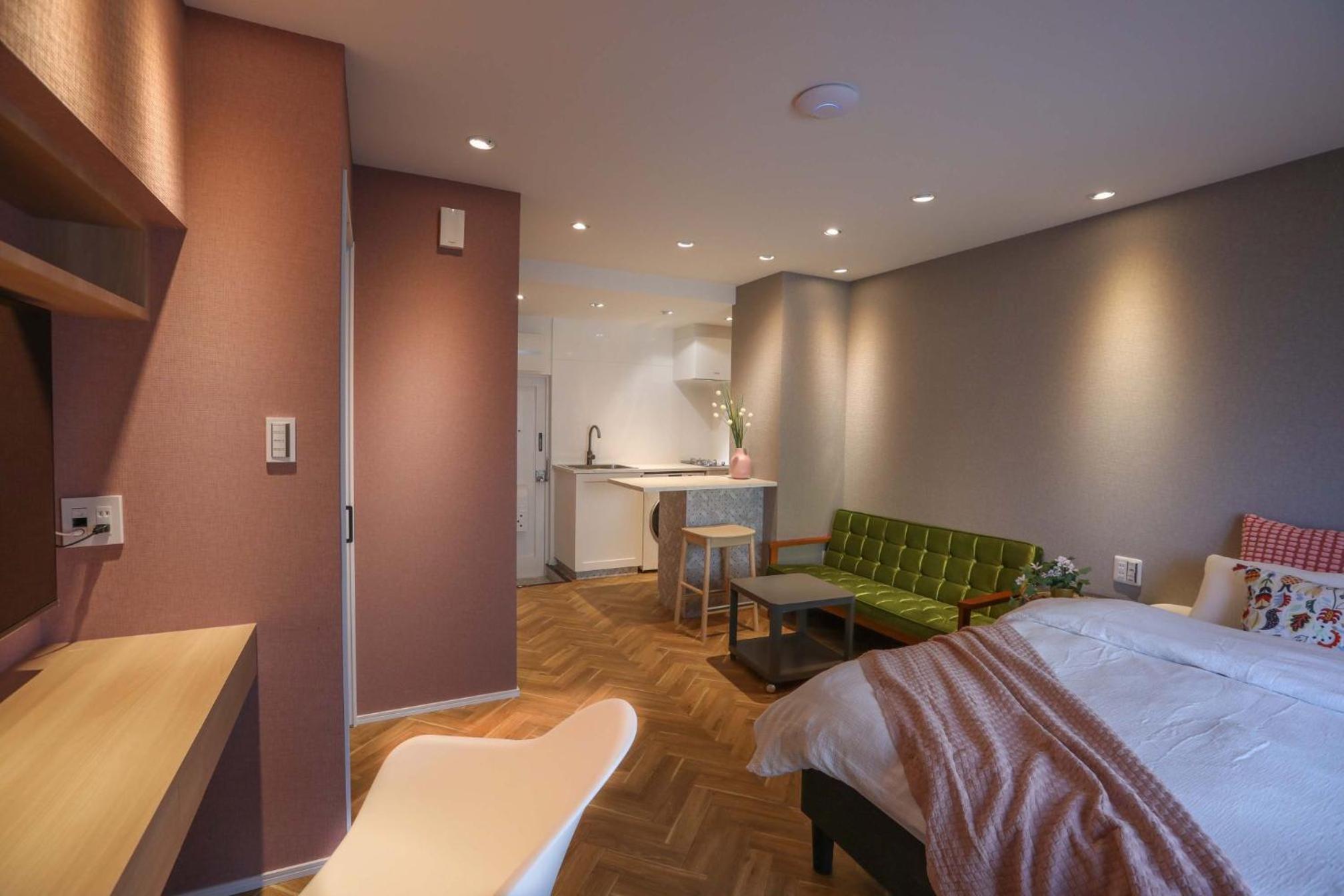 Easy self check in. The room is clean. The bed is good. Peaceful place. Near public transport (subway station, bus stop). There are some provisional shops like 7-Eleven and Family Mart nearby. Bonus, there is a post office just next door, easy for traveler to deliver luggage to the next destination.