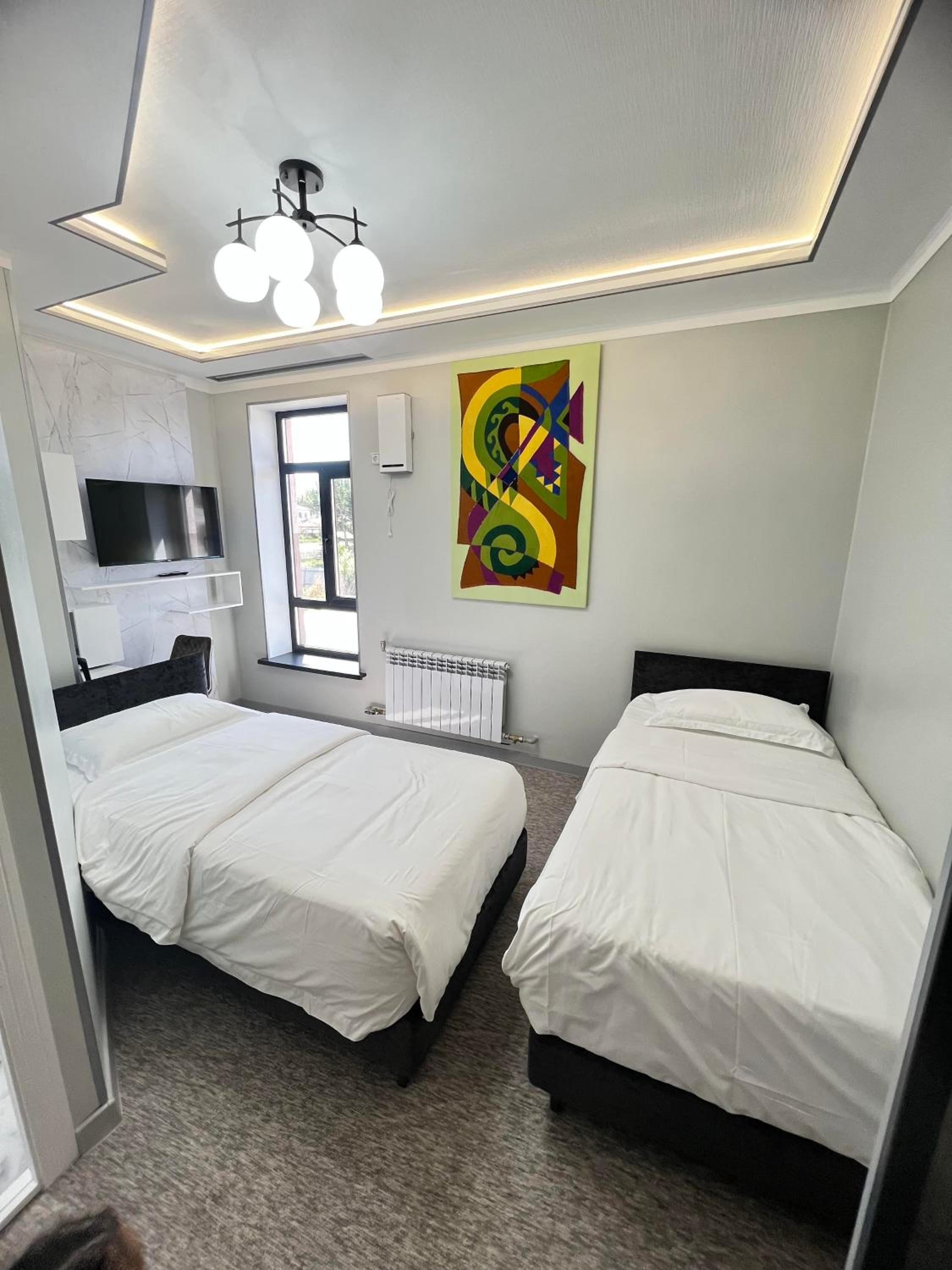 Mongu Hotel in Karakol offers modern rooms equipped with top-notch amenities such as a fridge, dishwasher, and a coffee machine. Enjoy stunning mountain views from your private terrace and unwind in a cozy atmosphere with a flat-screen TV in every room.