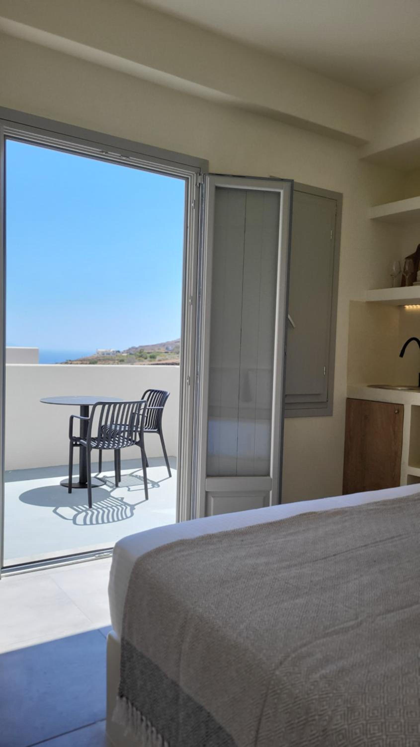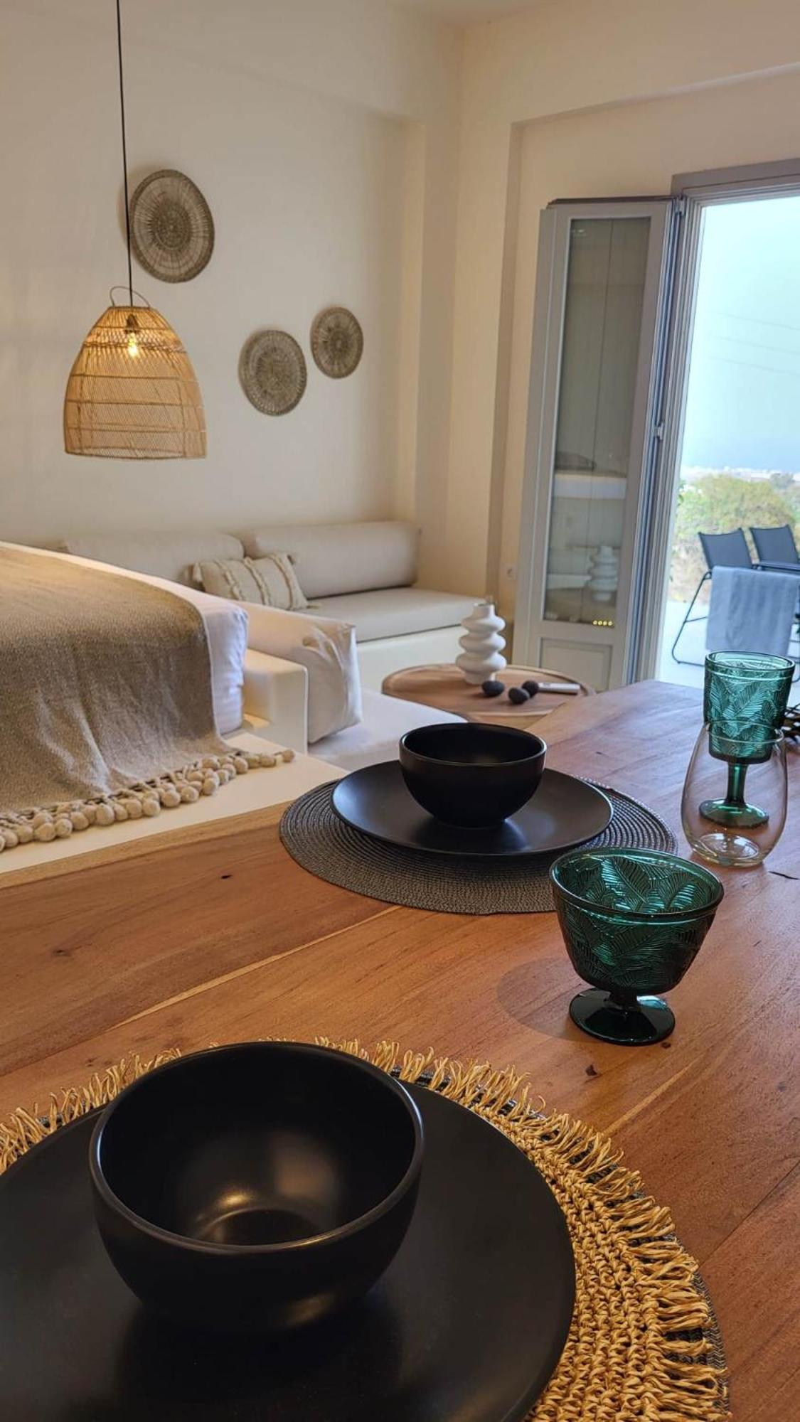 Très bel appartement tout équipé à la décoration soignée. Localisation très proche de Kamari et Pyrgos. Situé au calme (au pied d’une montagne et au milieu des vignes), ce logement est idéal pour profiter de la douceur de vivre grecque. Prestations de qualité avec ménage fait quotidiennement, délicates attentions (café, chaussons) sans oublier les précieux conseils et la disponibilité de Marialena pour vous faire passer un merveilleux séjour.