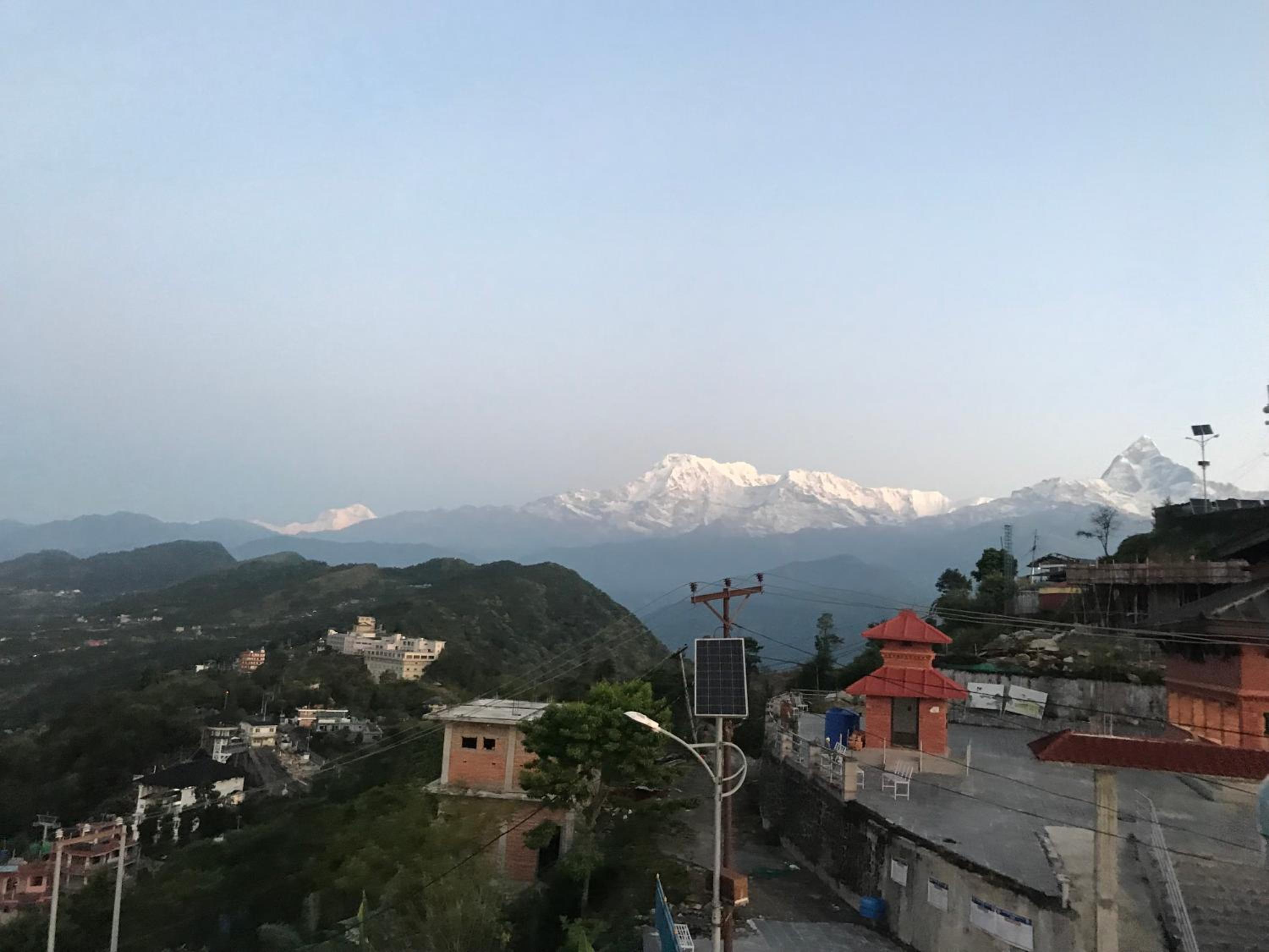 The room was spotlessly clean, the bed was super comfy and the little things like a kettle and tea made it really welcoming. The bathroom was also really clean and had hot water. Outside of the room is a large terrace overlooking Pokhara and the lake. Above the hotel is the restaurant with stunning views from the terrace and serving delicious food, reasonably priced. The property is right next to the view tower so no need to walk up a huge hill first thing on a morning for sunrise. Even though the property is in a remote location, it feels very safe and secure. The property is owned by a really friendly family who make you feel very welcome, they also provide a delicious breakfast. I would certainly recommend a stay here