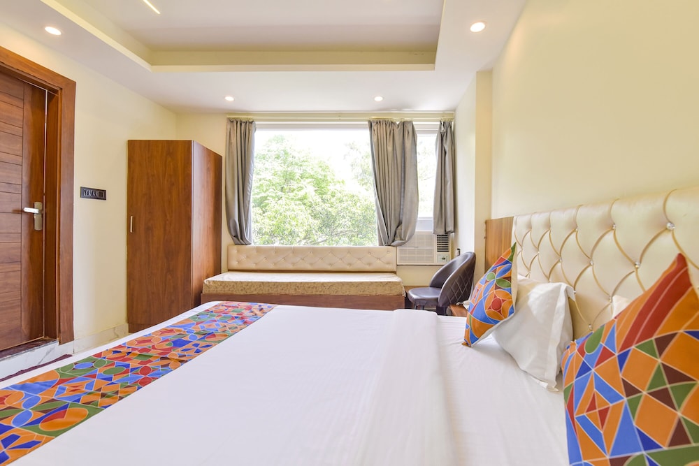 Distances are displayed to the nearest attractions: Lakshman Temple, Lakshman Jhula Bridge, Ram Jhula, and more. For a comfortable stay near Parmarth Niketan, book your room at Fabhotel Uv in Narendranagar.