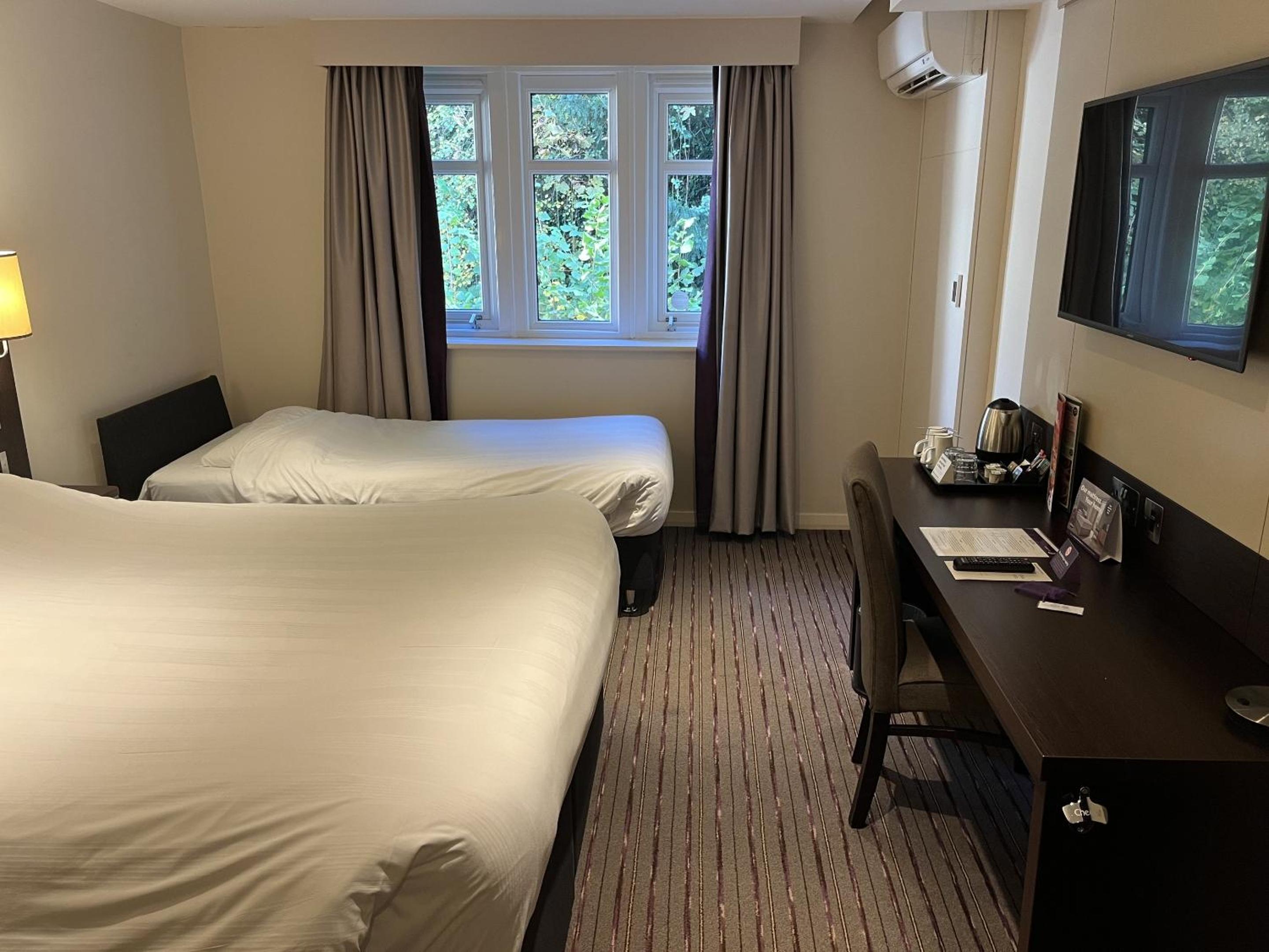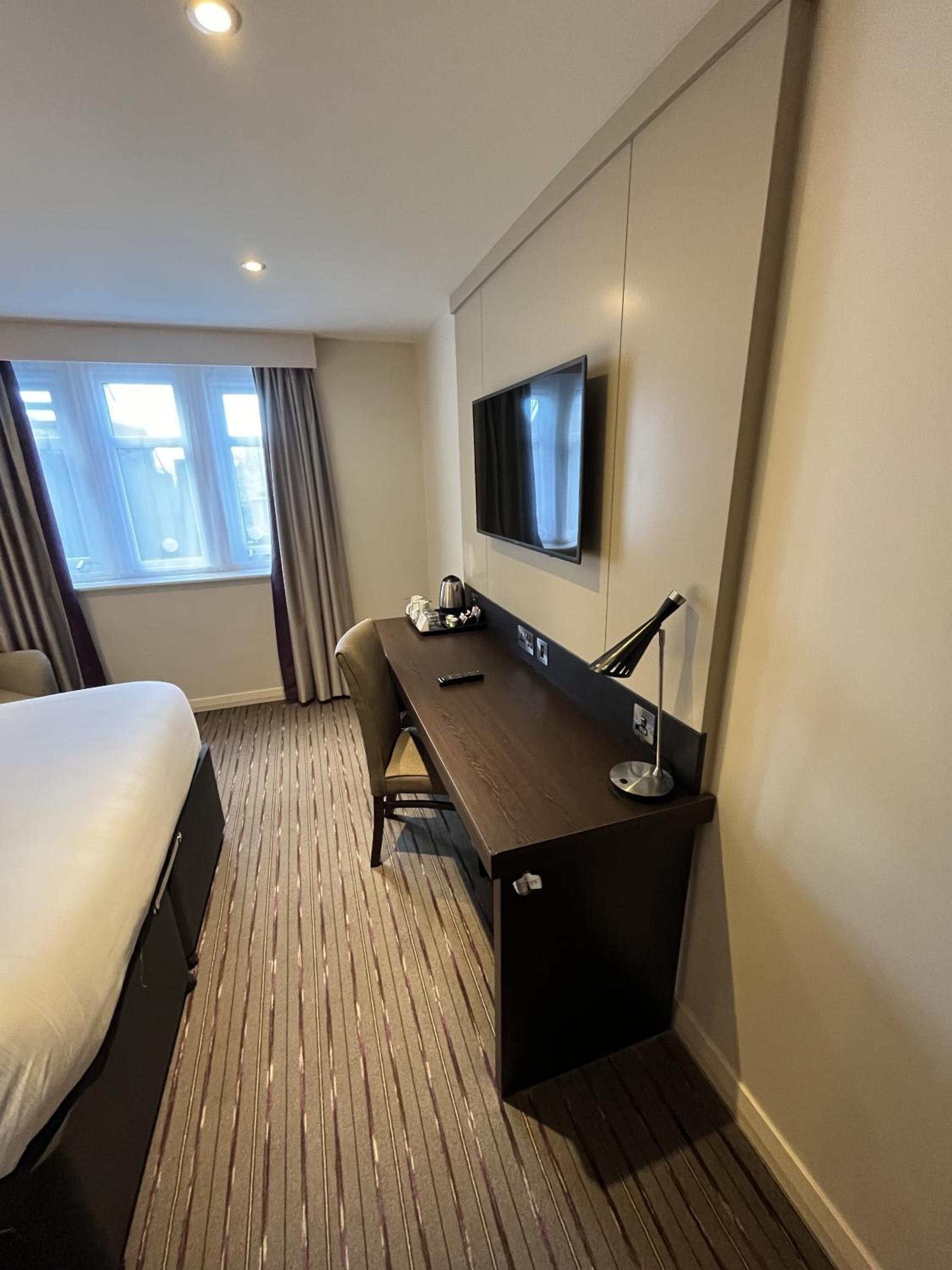 Newly redecorated. Exceptional friendly staff and although we were using it for a pre holiday airport stopover so didn’t eat there, the menu and food going out looked very nice. We did have a couple of drinks and spoke with 3 staff members who were all great. Would definitely stay again and recommend.