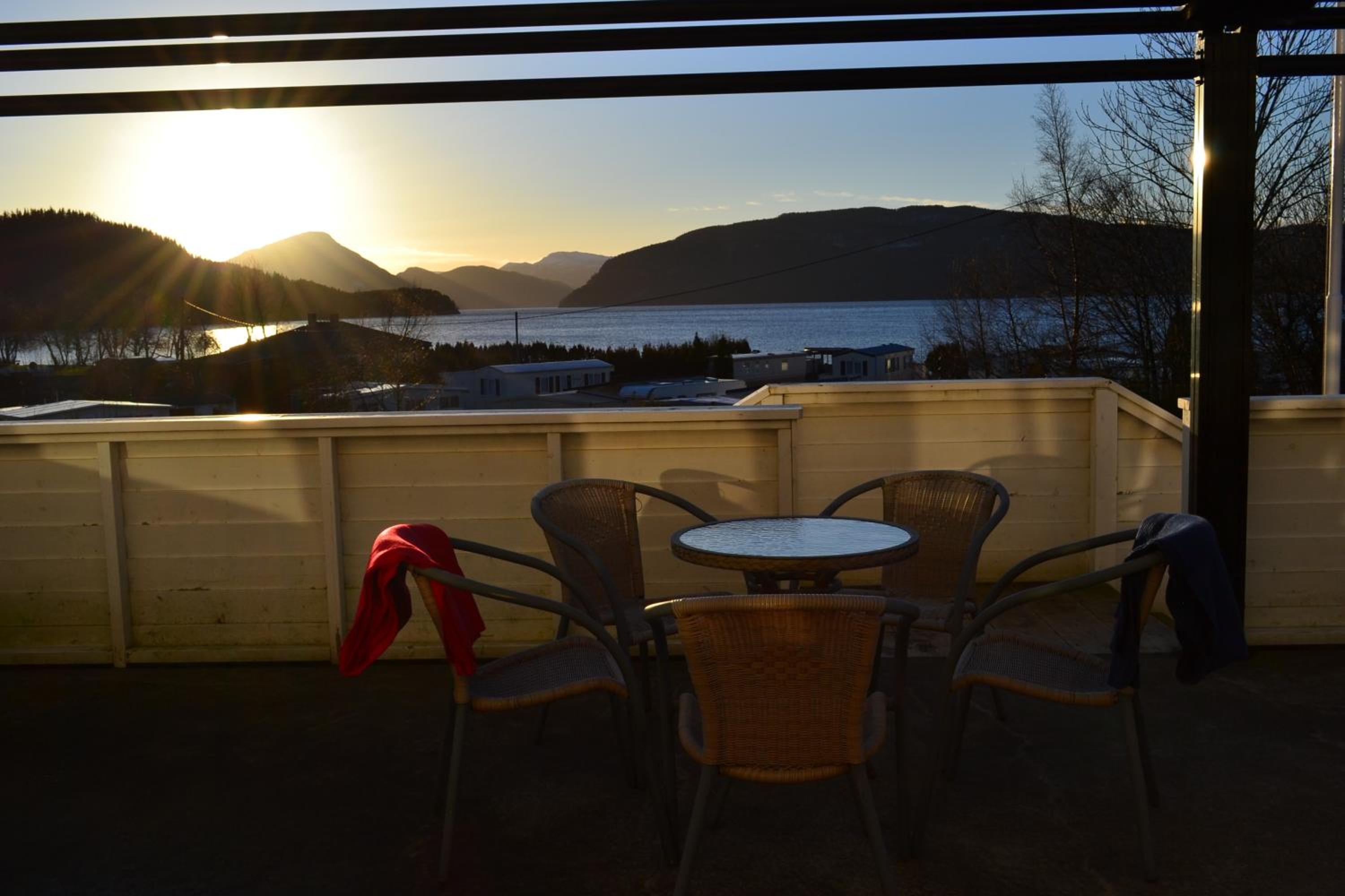 Spurte om frokost og selv om jeg ikke hadde bestilt frokost sto det et brett med mat, juice og yoghurt i kjøleskapet med mitt navn på:) Nydelig utsikt.