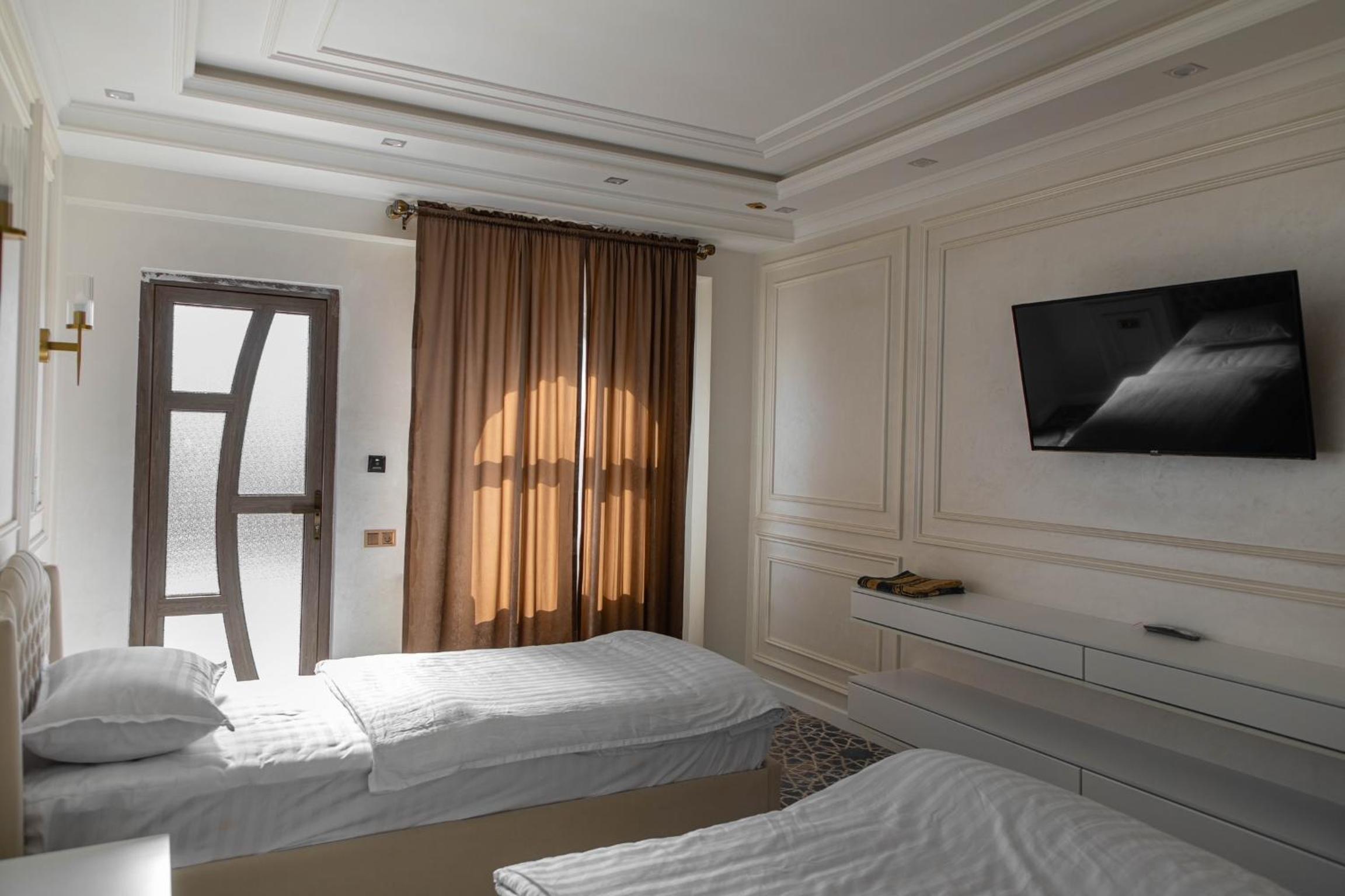 The staff was absolutely perfect! Very kind guys, always ready and willing to help. The location is within walking distance from Registan (15 min on foot); despite being placed on a busy street, you don't hear anything from the inside. It was a perfect stay!