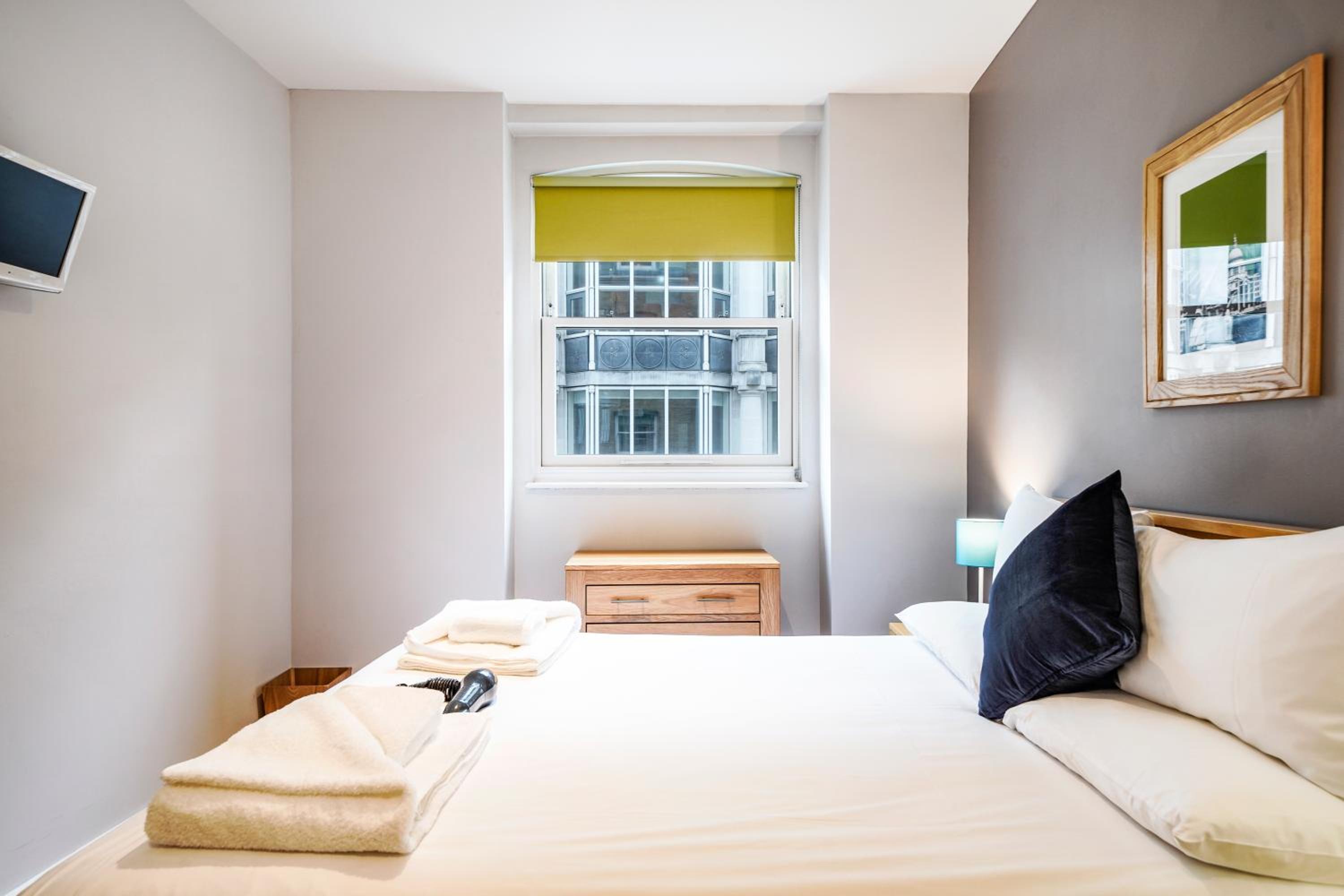 Simple and easy check in. Complimentary toiletries, cereals and selection of teas. Clean and comfortable, very quiet despite central location and nearby Tube station (I stopped somewhere nearby previously and the whole building shook when a Tube train passed underneath). Just a half hour walk to the main tourist part of London taking you down fleet street and passed St Paul's but there are multiple Tube stations nearby if you don't fancy the walk.