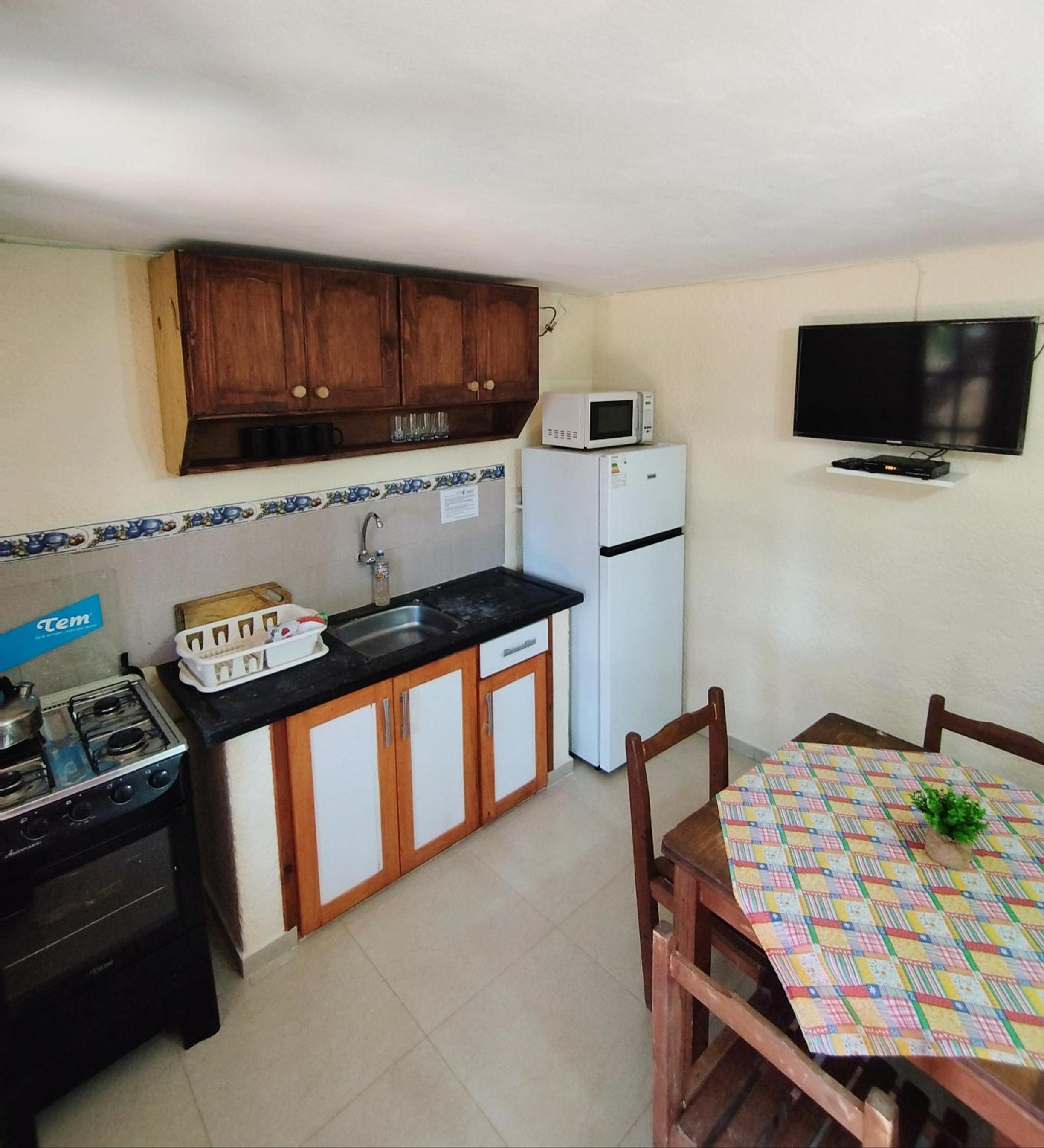 El departamento cuenta con lo necesario para un hospedaje cómodo. Cuenta con ropa de cama, toallas y utensilios de cocina. Muy completo.