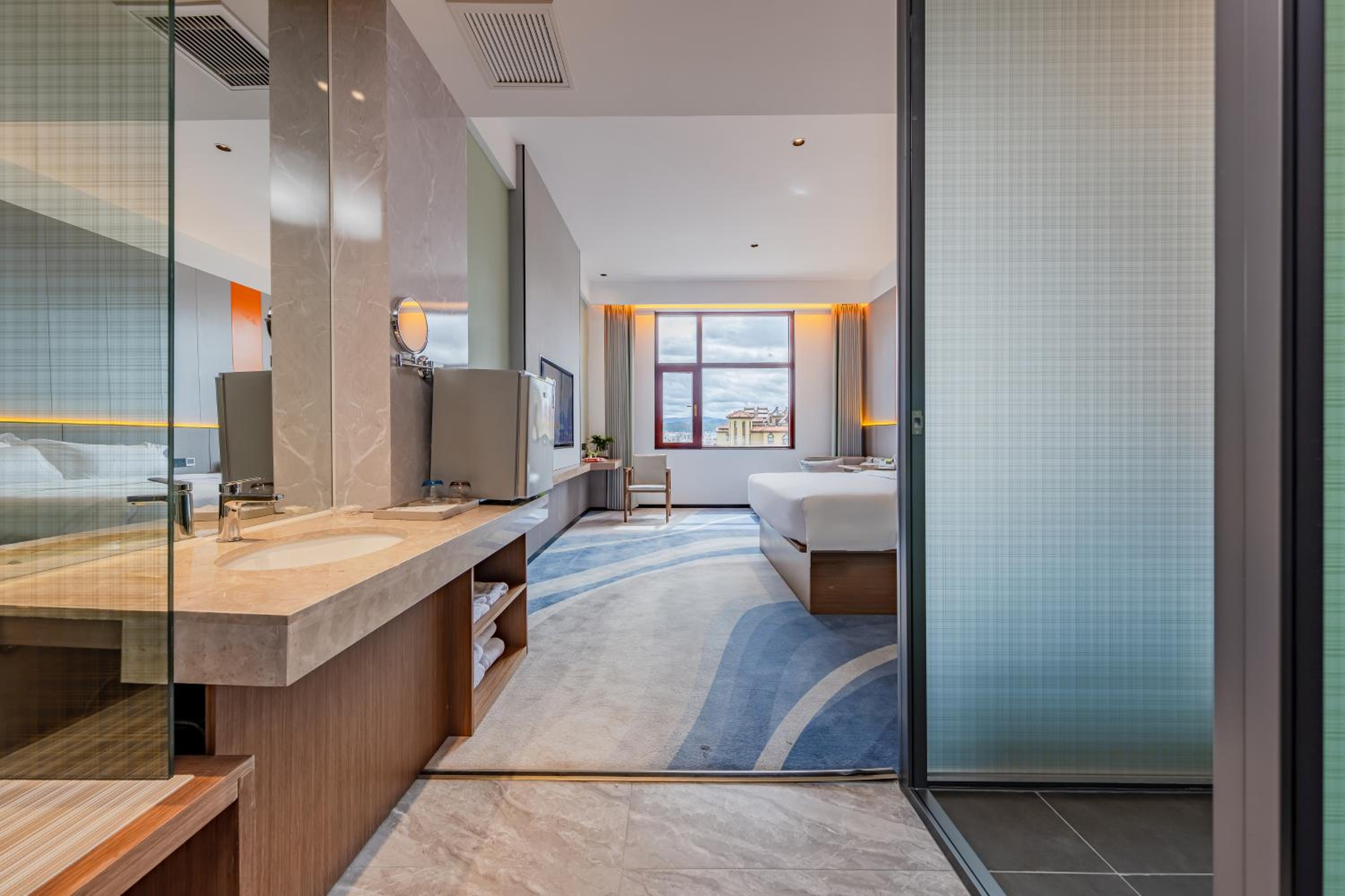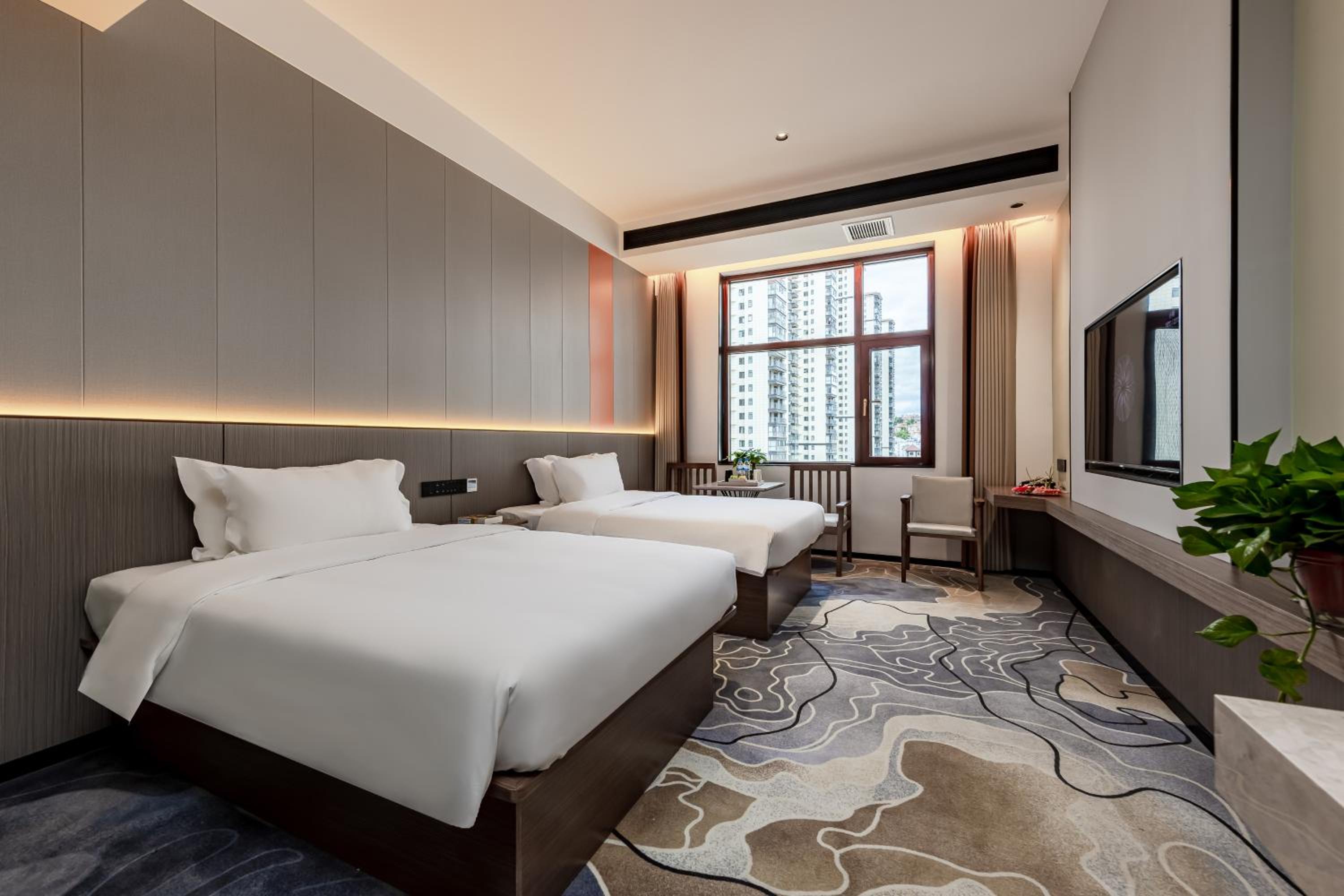 Chuxiong Lanchen Hotel offers rooms equipped with modern amenities including a desk, flat-screen TV, and plush bedding for a comfortable stay.