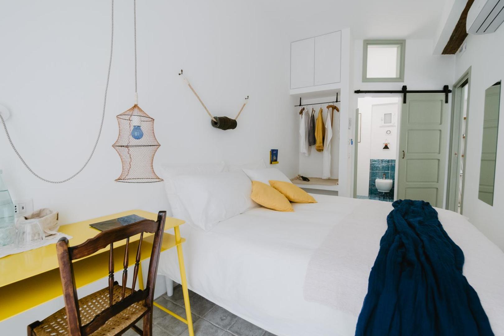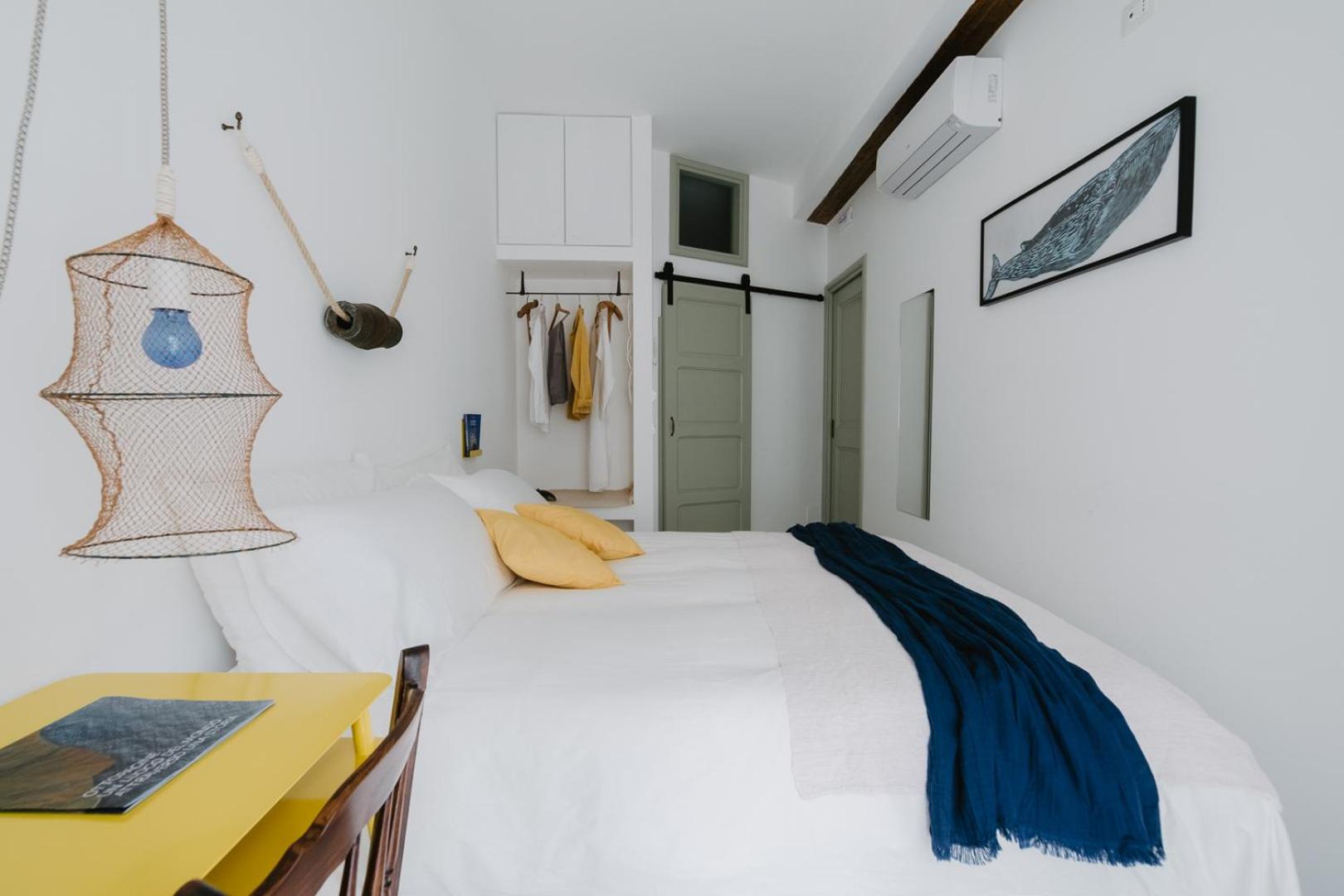 La camera da letto un po' troppo piccola, poco spazio per muoversi, ottima cosa il climatizzatore perché la camera é completamente esposta al sole e in estate in sicilia il caldo si fa sentire, senza climatizzatore non sarebbe stato possibile riposare senza schiumare di caldo.