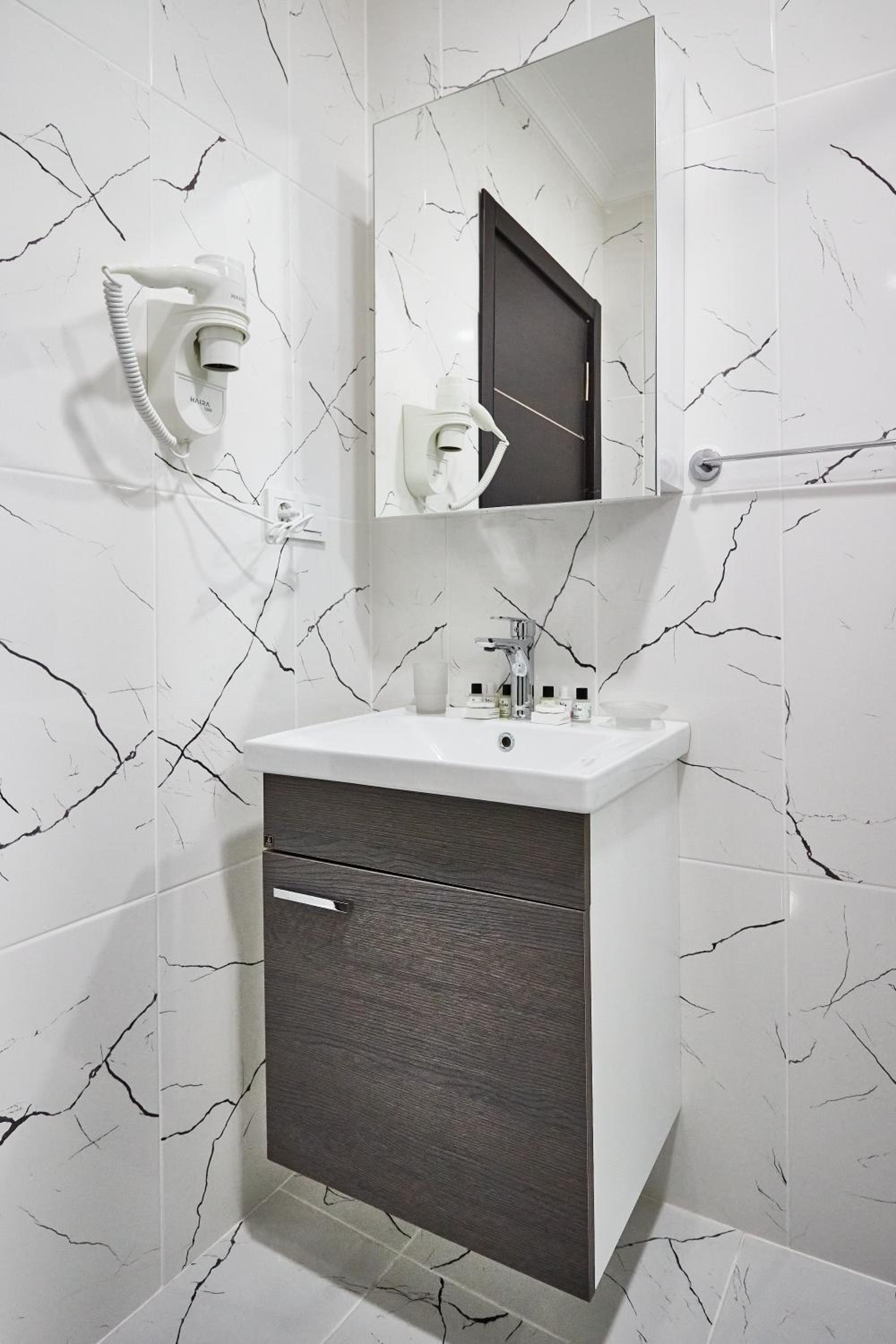 Маленький номер. В ванной комнате было бы хорошо сделать ремонт.