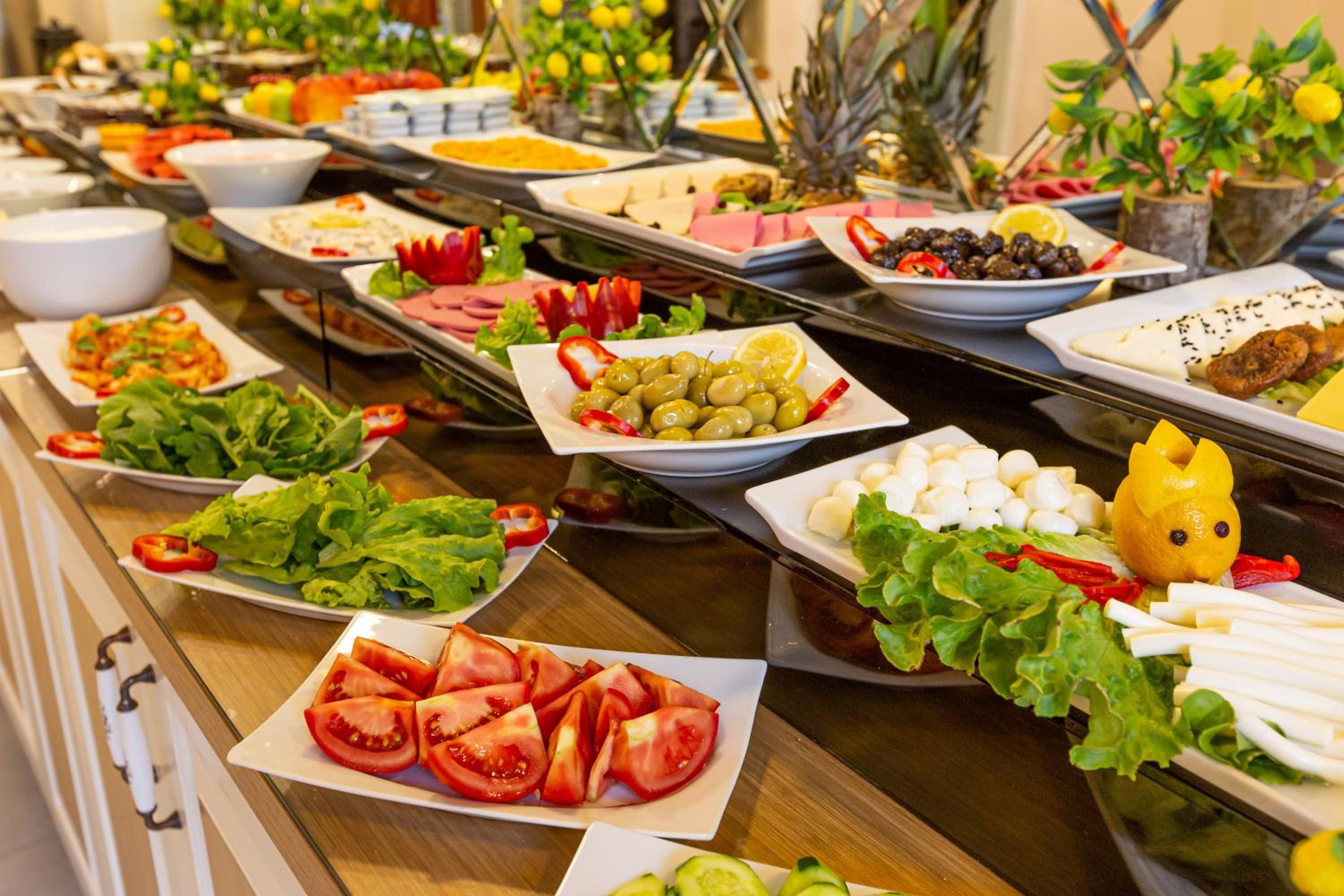 На завтраки большой ассортимент блюд. Сыры, колбасы, овощи, фрукты, десерты. Была удивлена, обнаружив, что кофейные чашки марок Roberto Cavalli и Hermes, и выглядели они, действительно, очень симпатично.