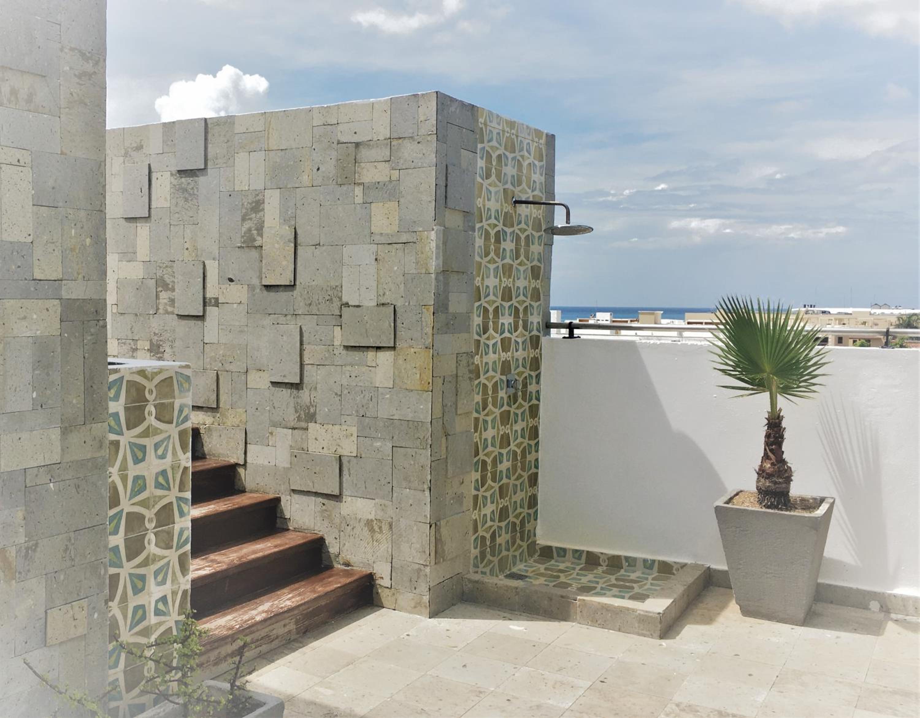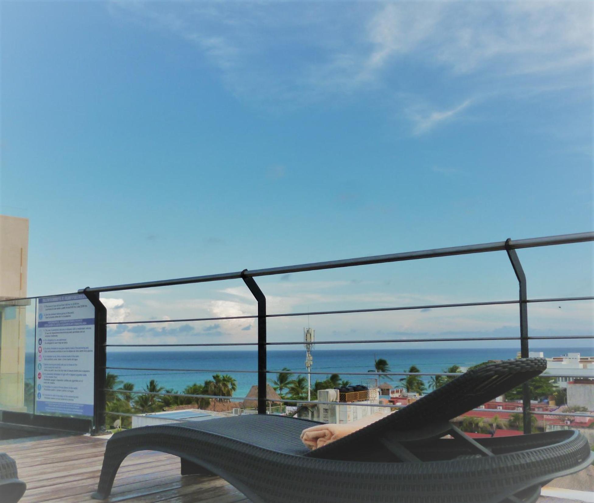 Enjoy a refreshing dip in the rooftop pool at Sole Suites, offering stunning views of Playa del Carmen. Unwind and soak up the sun in this serene setting.