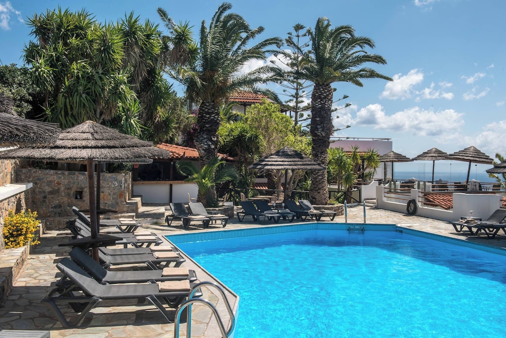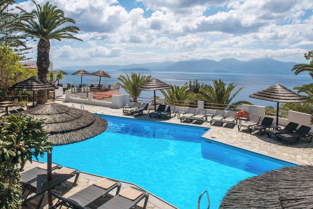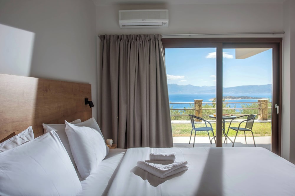 Splendido hotel raggiungibile facilmente dalla strada statale che porta ad elounda. Parcheggio interno. Camere con vista sul mare da favola. Ottimo servizio di colazione. Hotel si trova su un crostone montagnoso ricco di verde che affaccia sul golfo, non ha la spiaggia vicino ma la piscina interna. Il balcone con veduta sul mare ripaga di tutto. Addormentarsi con la brezza marina che rinfresca la camera e una vista di millle luci sulla costa è una esperienza da provare. Camere rinnovate con mobilio moderno ed essenziale.