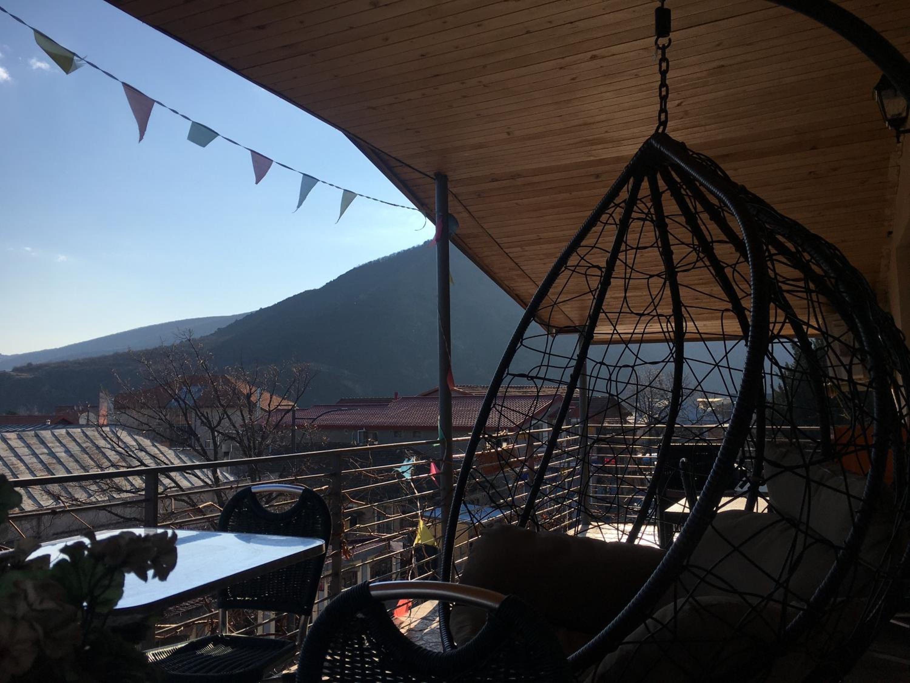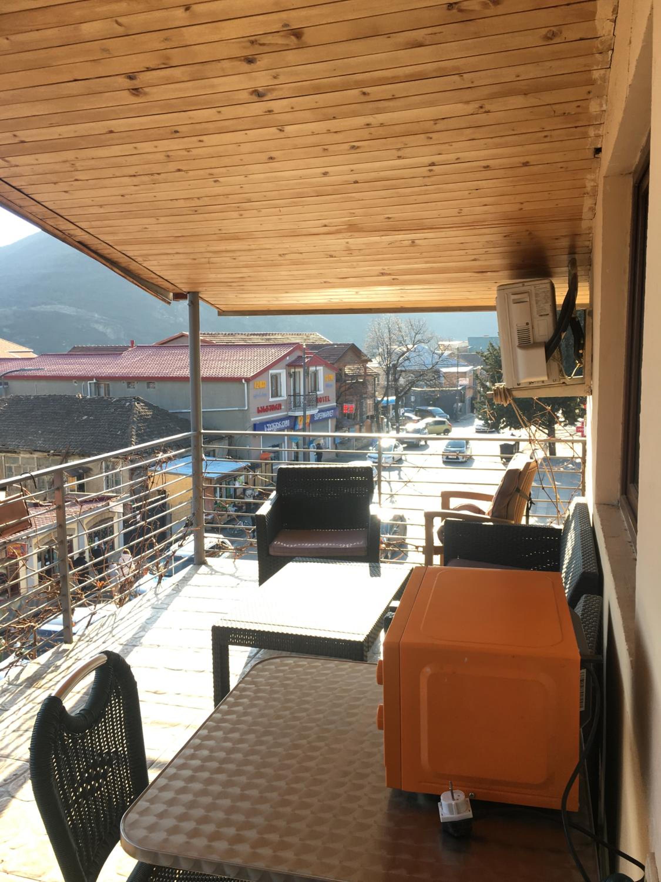 Мне было очень грустно в этом доме и неуютно. Очень как то пыльно, пол грязный, на веранде слой пыли на столе был, хорошо я вожу с собой тряпочки. Унитаз надо было каждый раз открывать, чтобы водой наполнялся. Простынь нам дали с мужем оооочень узкую, под которой только один поместится. Холодильник можно было бы мыть, тоже грязный. Розеток мало. Комнатка темная, лампы не все работали. Не знаю, но ощущение, что хозяевам как то все равно как чувствуют постояльцы, сегодня одни, завтра другие. Сдачи не дали, конечно, может немного, но это не очень красиво, как бы забыли. Всю Грузию проехали - прекрасная гостеприимная страна, и даже в скромном жилье было как то заботливо, но не здесь, впечатление осталось плохое. Но прекрасный вид и вкусный хлеб в пекарне на первом этаже немного скрасили наш вечер и утро в этом отеле. Завтрак хороший, хозяйка принесла на веранду, здесь все хорошо. Если для, вас важно переночевать , отдохнуть , чтобы двигаться дальше, и если у вас будет с собой бутылочка грузинского саперави, то все и неплохо будет, на одну ночь можно рискнуть.