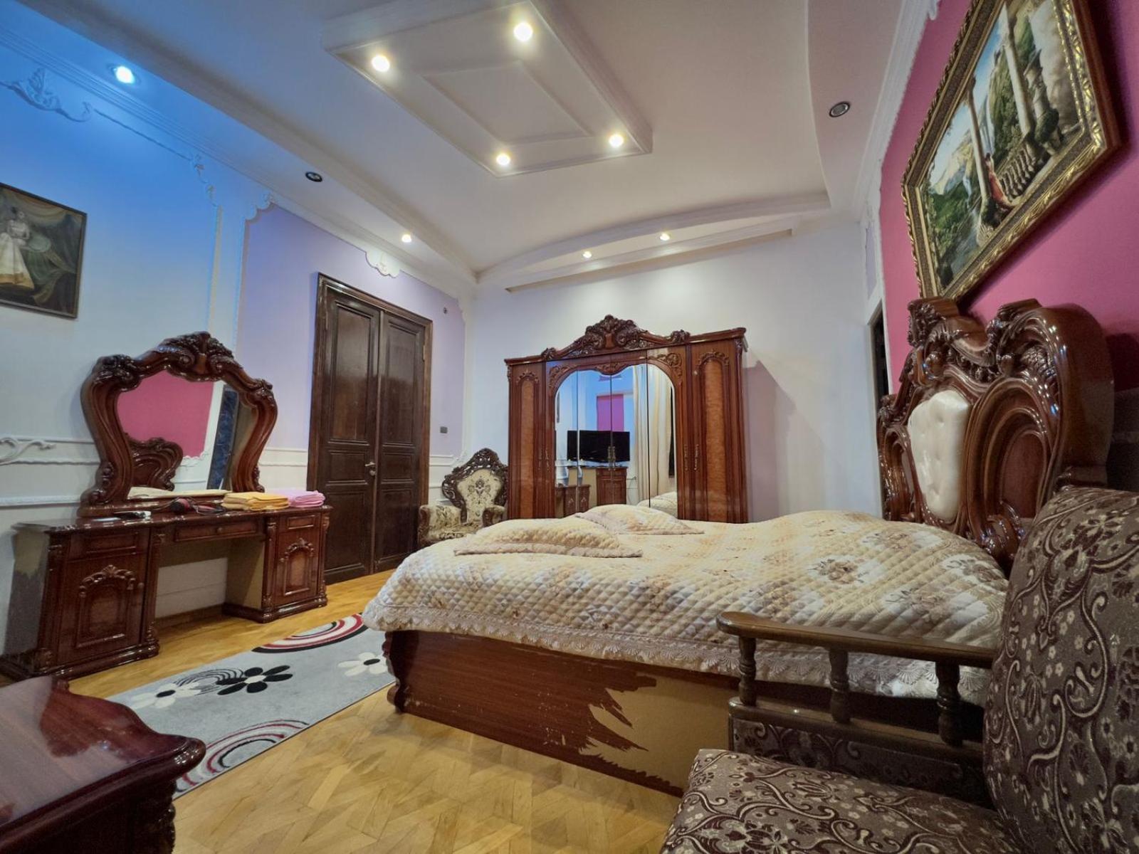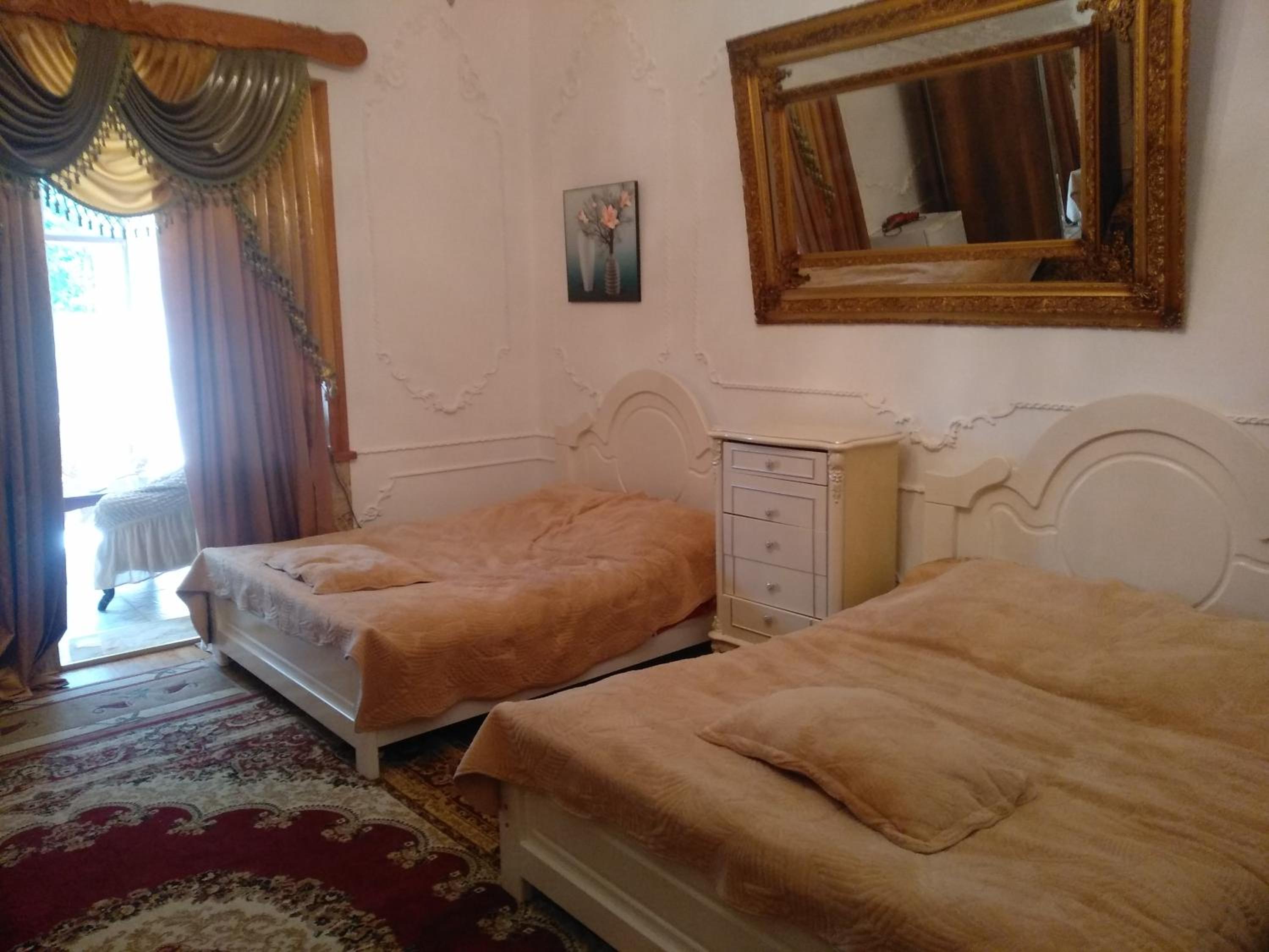 We understand from the incredibly friendly & helpful current owner that what is now a quirky, baroque-style hotel was previously the house of an oligarch who fell on hard times. Our room was large, with comfortable, queen-sized bed, large sofas, big bathroom complete with jacuzzi & a generous balcony (approx 2m x 2.5m) that gave great views over Kutaisi and to the mountains beyond. No problem with parking, either on-street or in the hotel driveway.