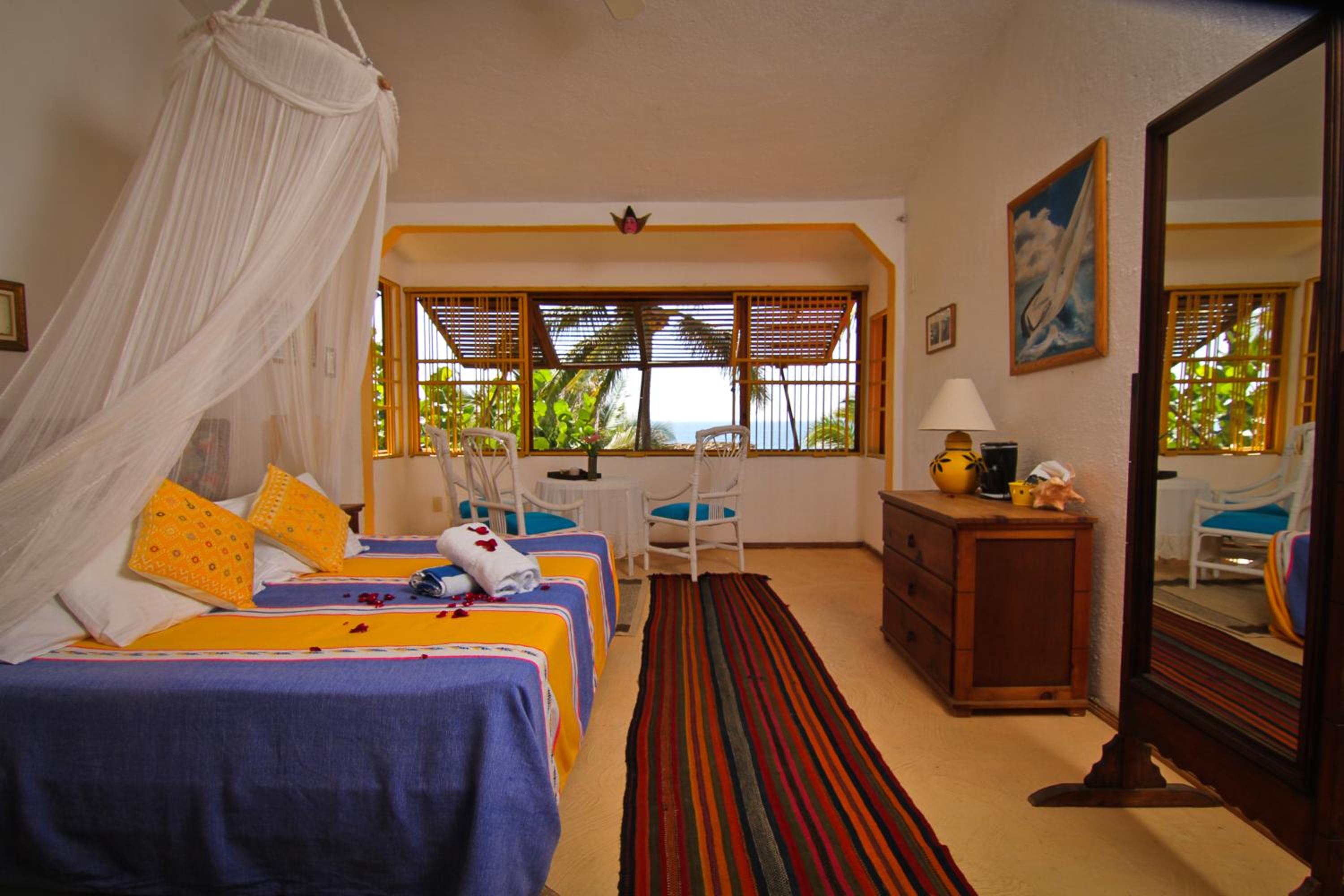 Excursions and Convenience: The hotel organizes tours to Coyuca lagoon and river for birdwatching. A bus to Acapulco stops in front of the hotel, offering easy access to dining, bars, and nightlife.
