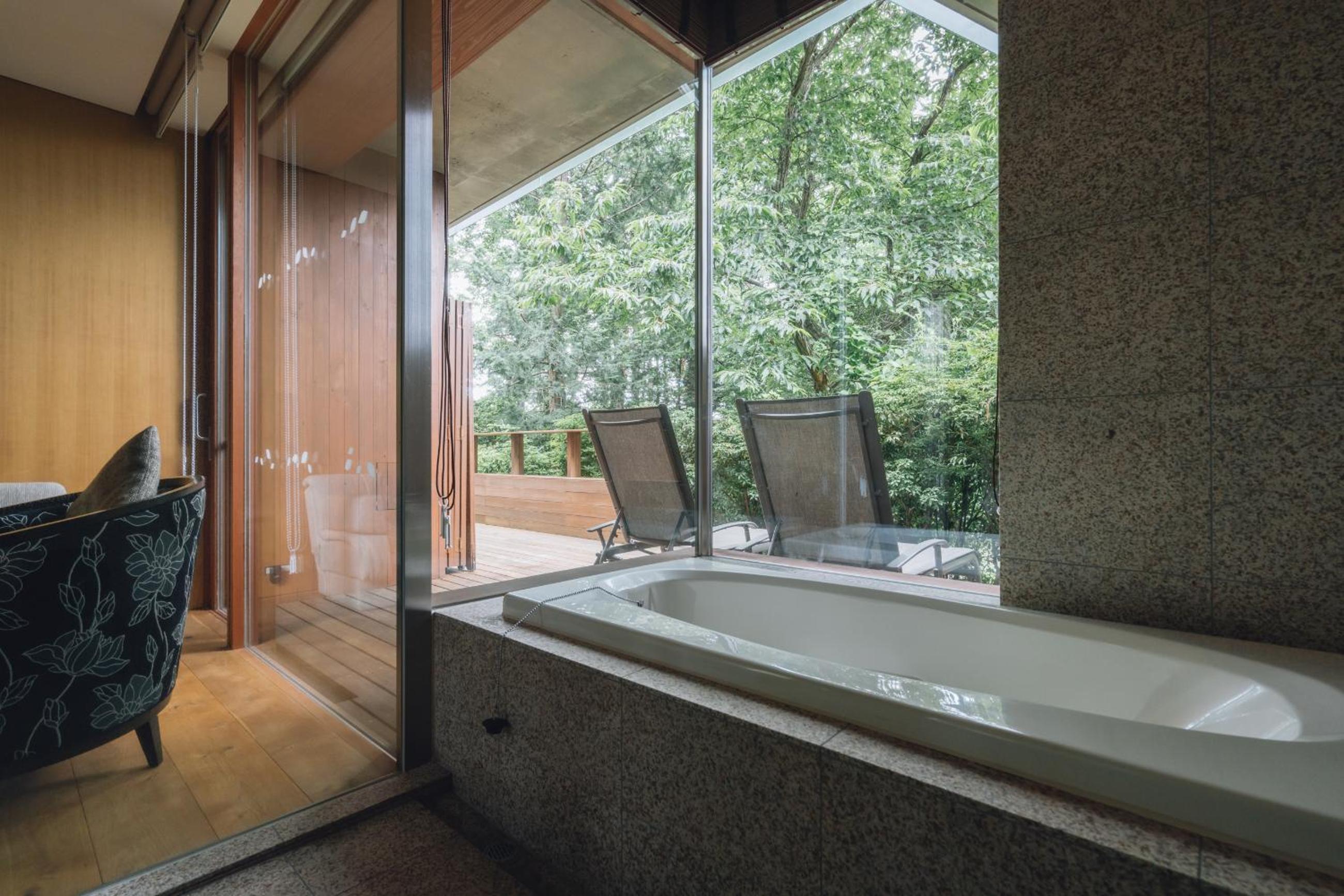 Gorgeous, large rooms, super design forward. Onsen on premises. Cool whiskey bar. Gorgeous view from room and sounds of nature