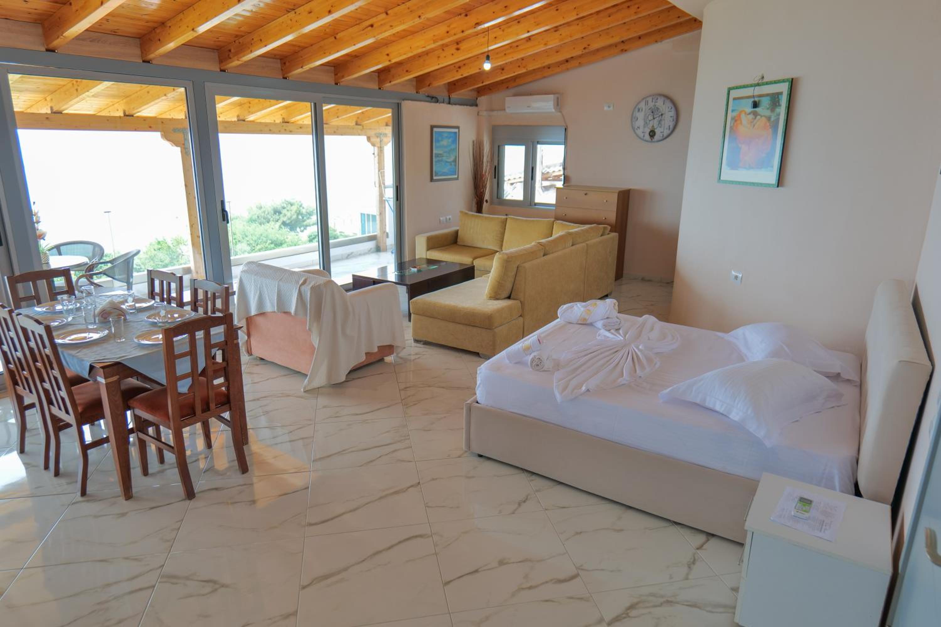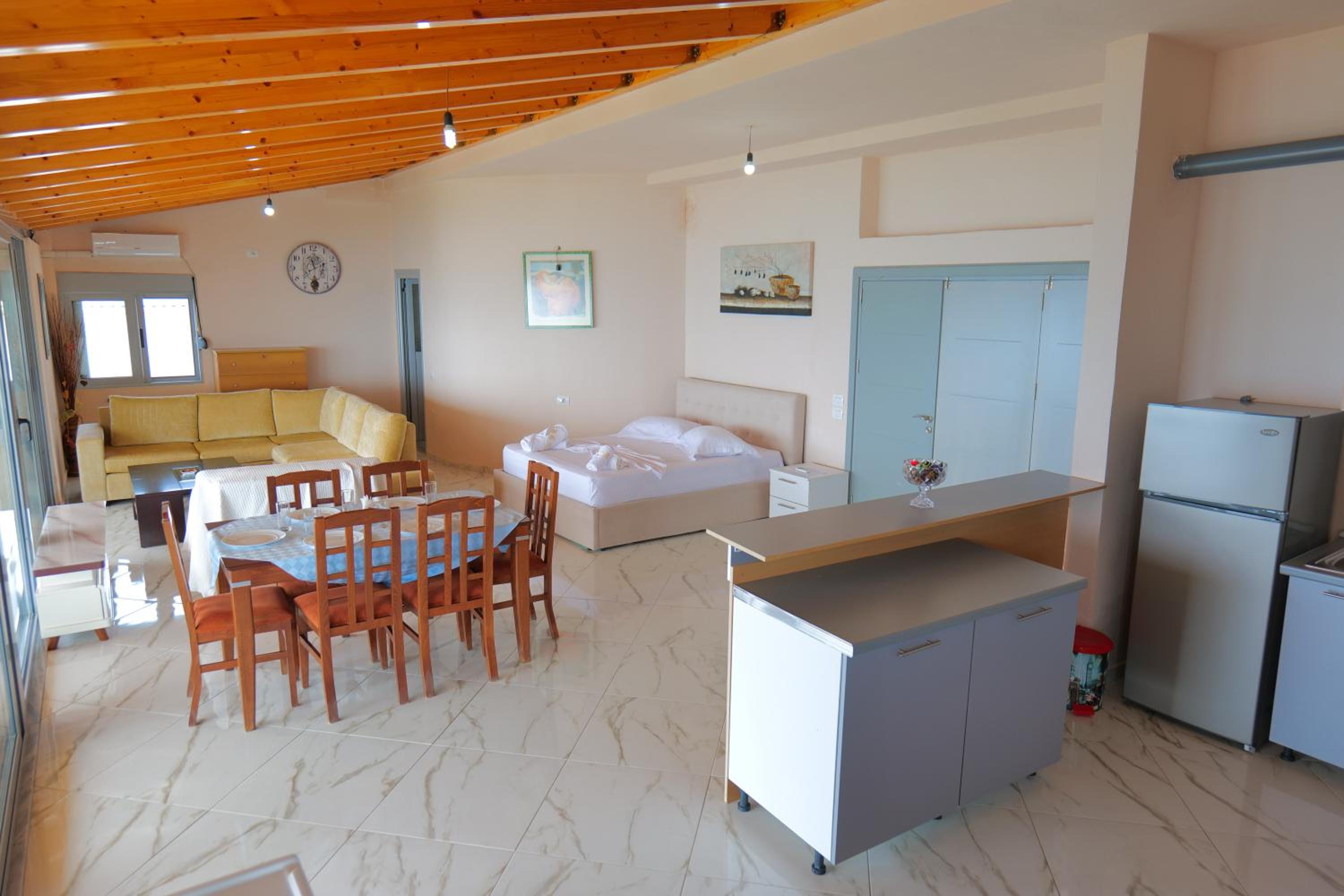 Location near the best beach in Albania. Sea view. Well equipped apartment with a kitchenette. Reasonably priced.