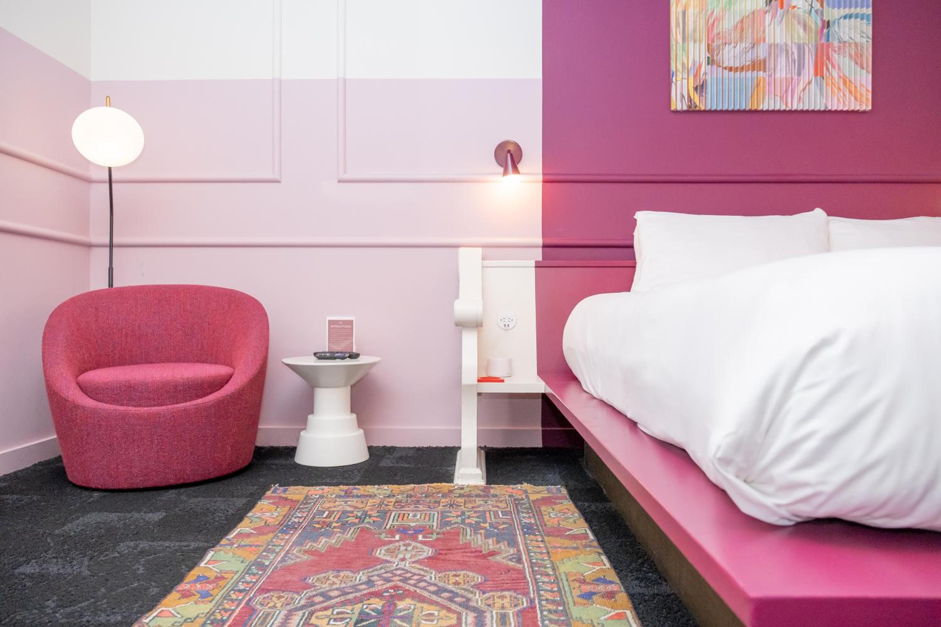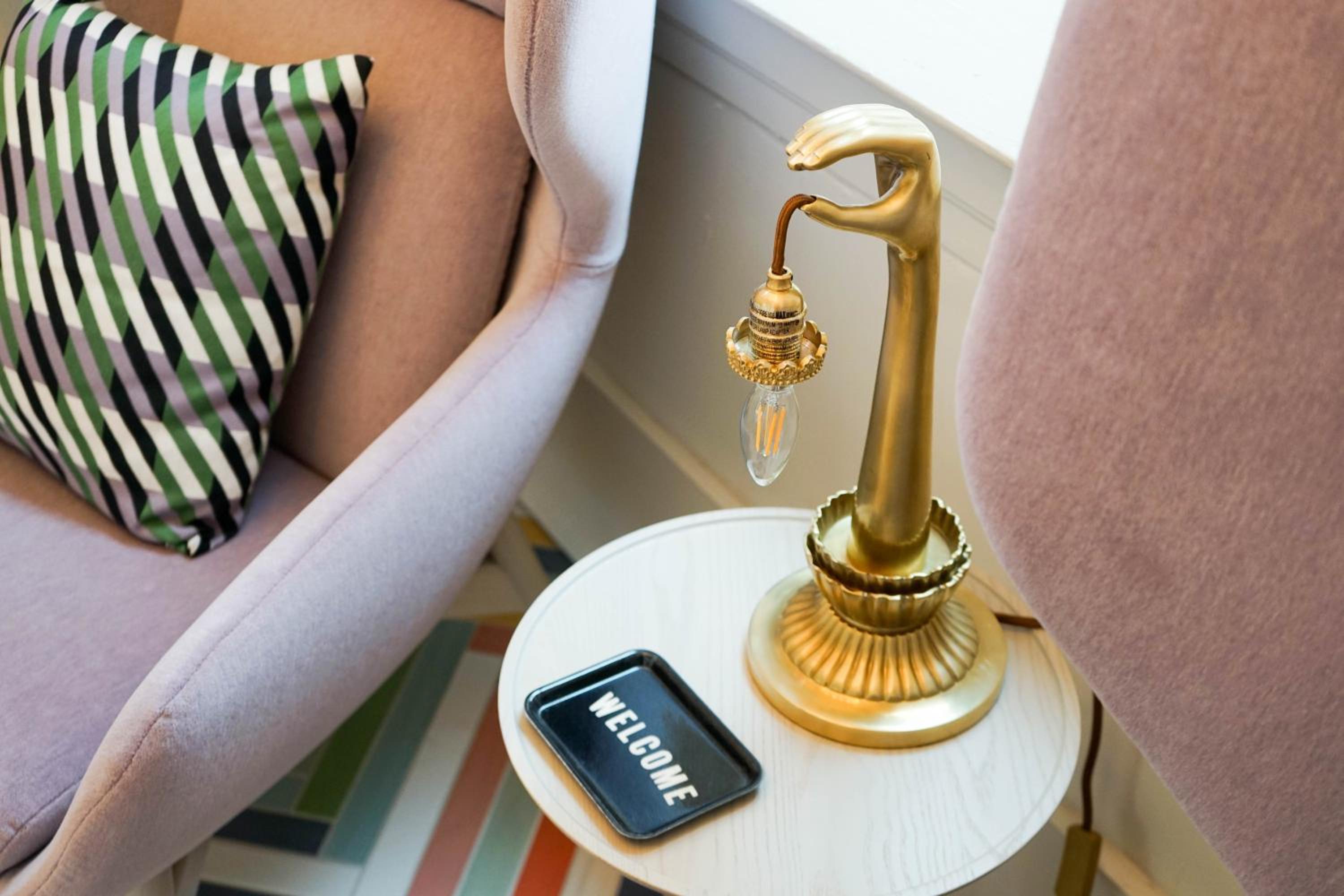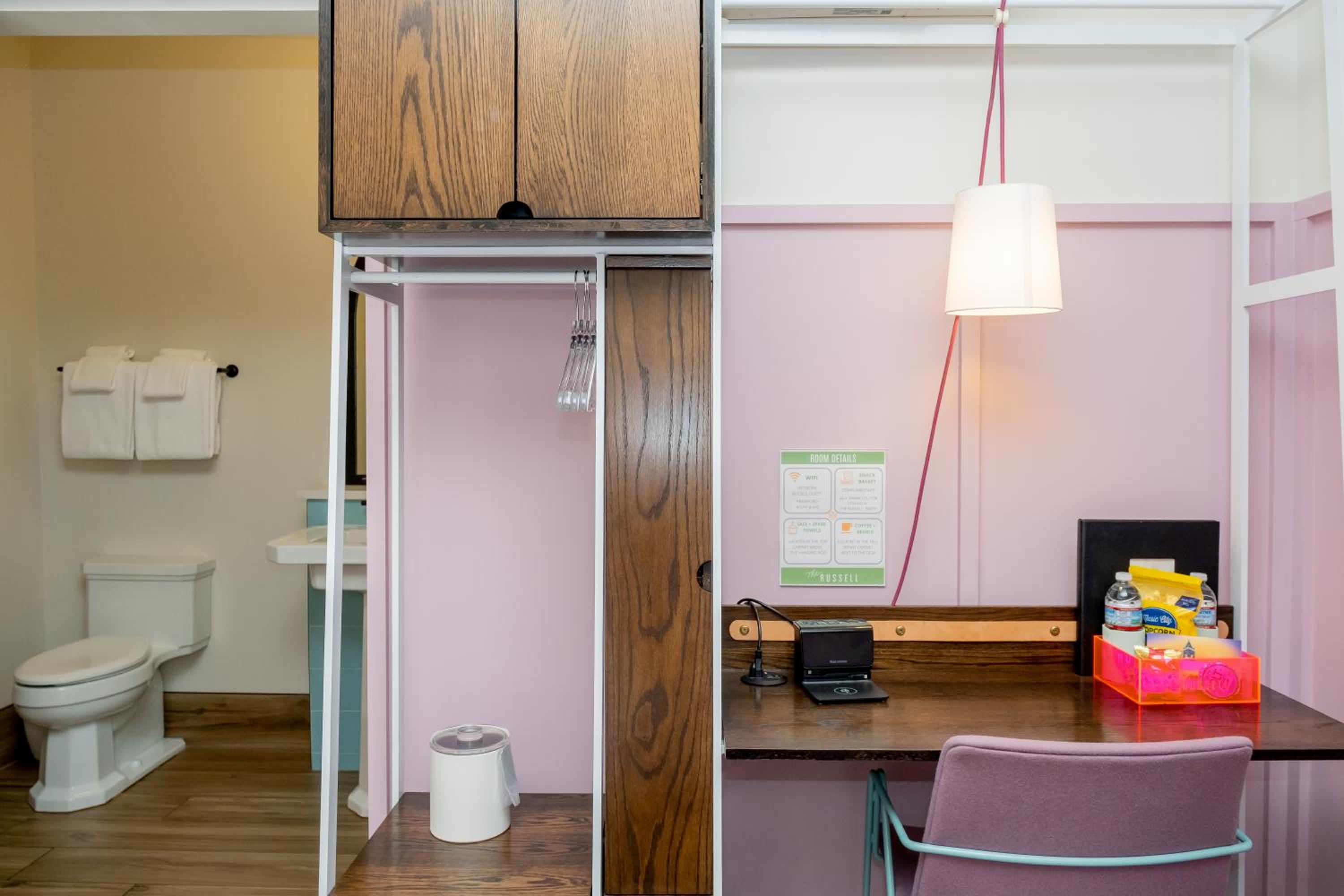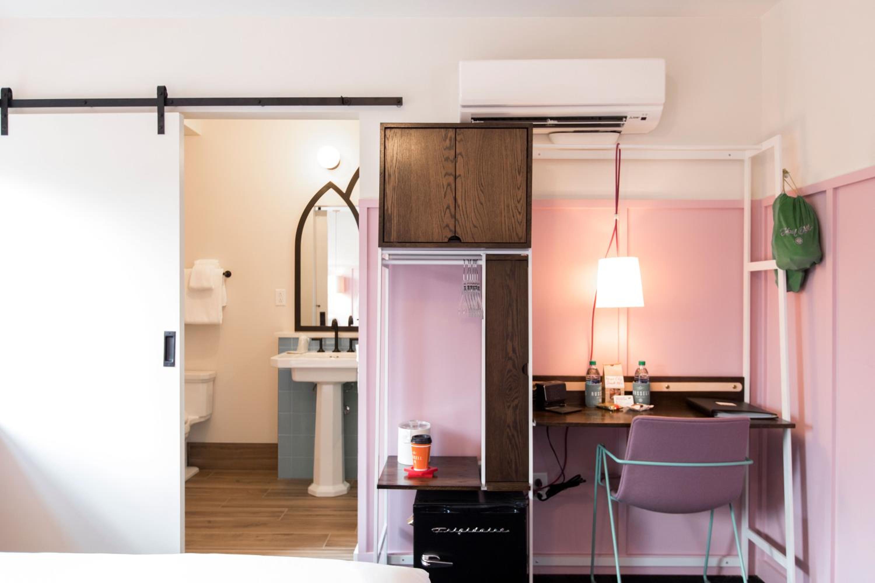 The Russell was such a lovely place to stay. The self check-in was so simple and quick. The lobby area is absolutely stunning and the room was so cute. The welcome basket with snacks, water, and koozies was such a nice touch.